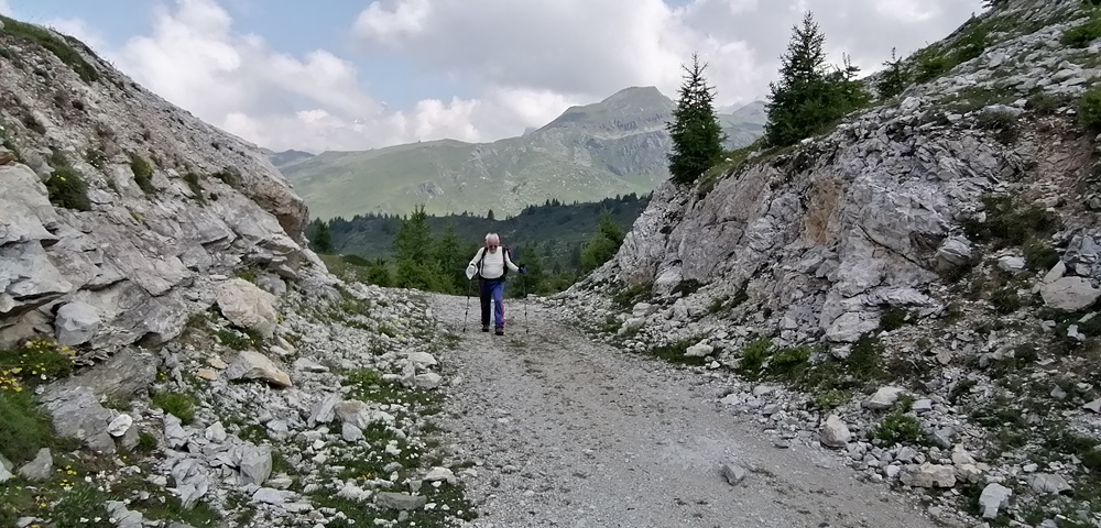 dal tornante a qt1750 (dove parte ciclabile per chamois, che percorreremo al ritorno) proseguire su asfalto fino al lago charey,abbandonarla per il sentiero 2 che sale verso NE ed arriva all’alpeggio champlong ed ai laghi omonimi, proseguire su sterrata verso NE ed al bivio ignorare il ramo in salita e proseguire fino a chamois, scendere alla chiesa e percorrere la sterrata ciclabile che riporta a magdeleine