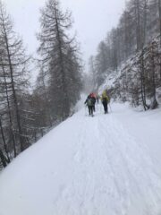 Partiti da Magdalein colle pilaz panchina laghi Champlong pranzo all’ alpeggio prima del colle poi discesa su Chamois e ritorno su ponderale A la Magdalein. Usate ciaspole su traccia pre esisente
