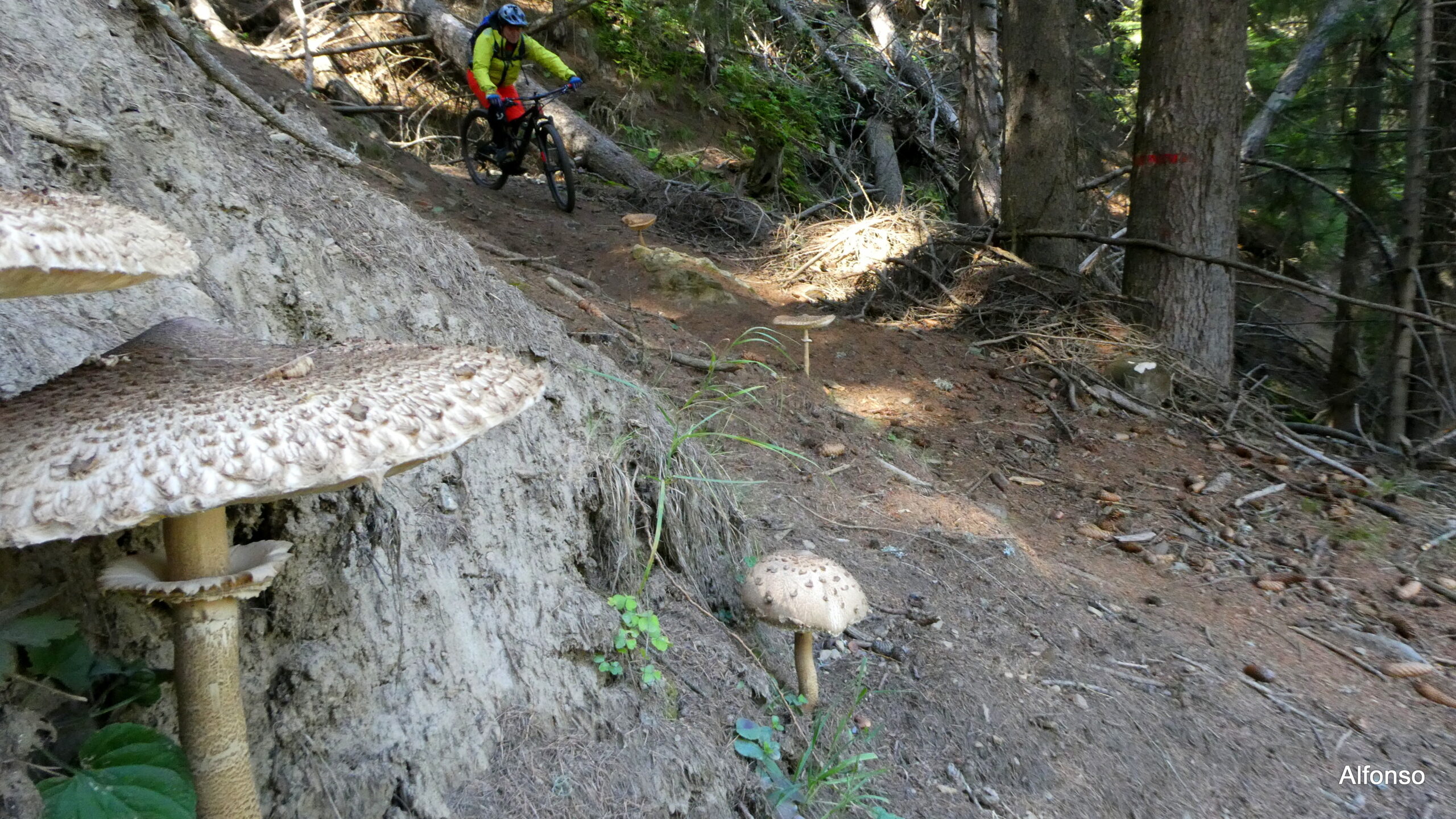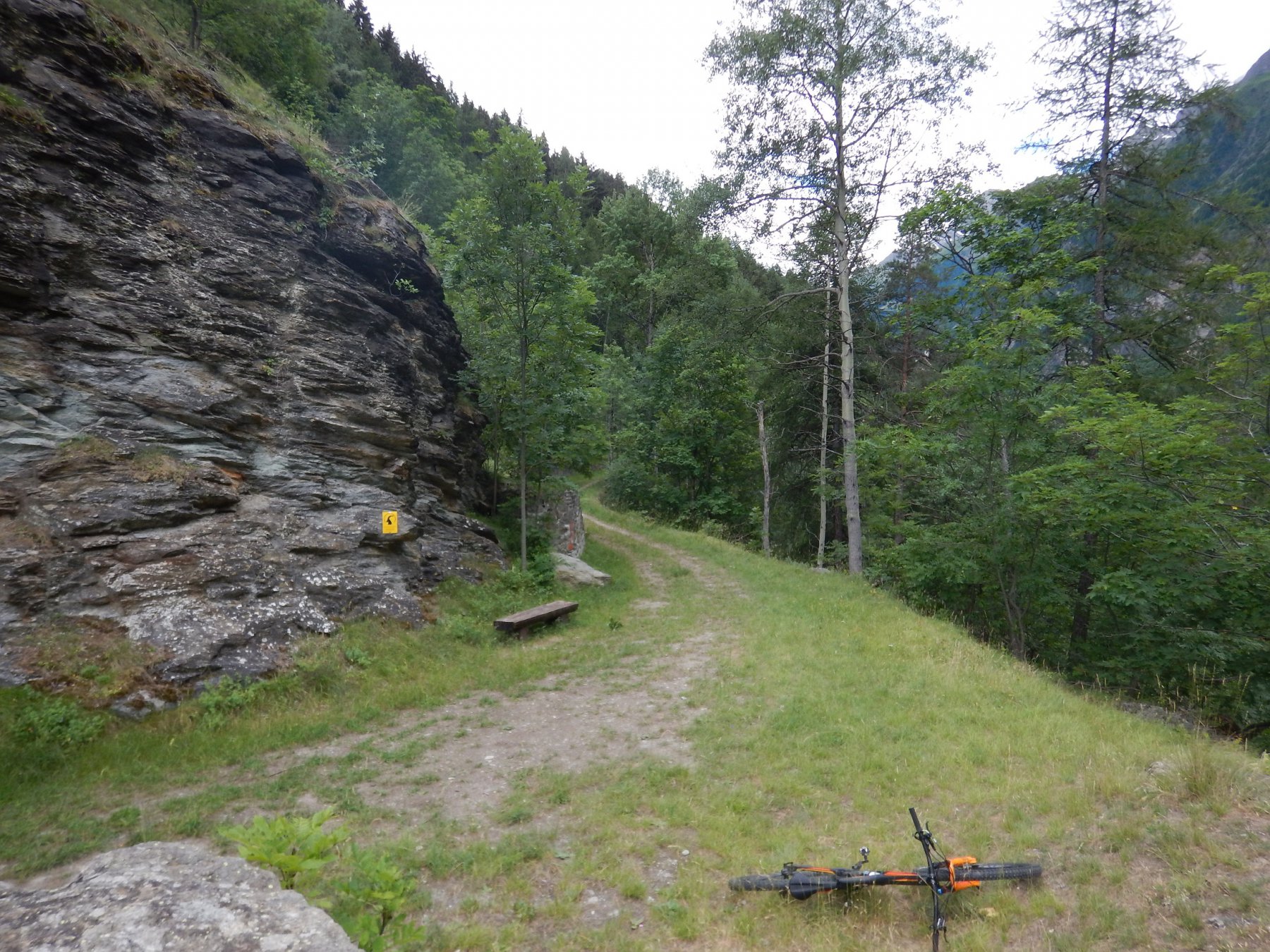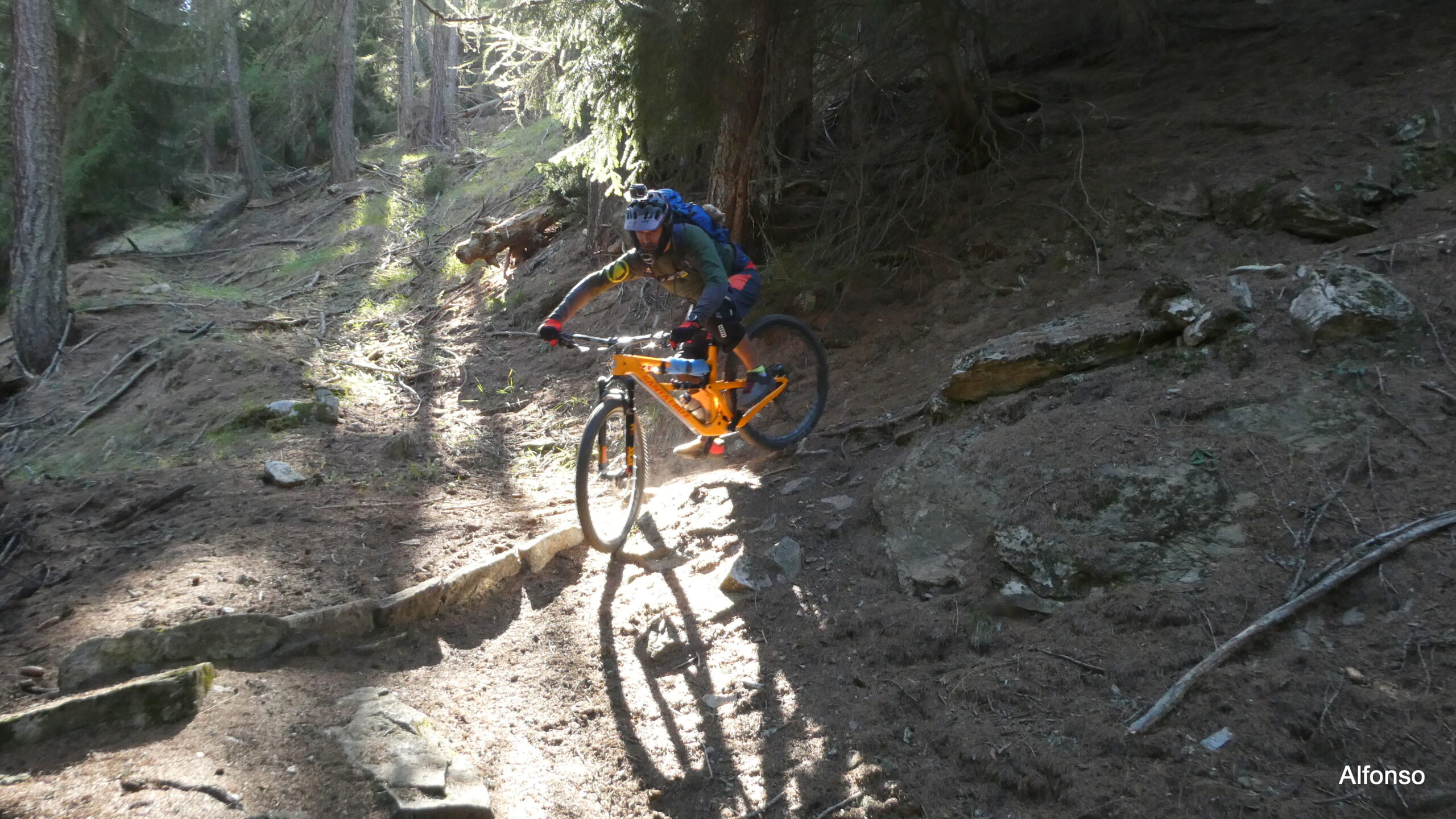 La discesa sul versante Valsavara segue fedelmente il sentiero n.1 (attenzione al primo bivio: prendere a sx direzione fondovalle) e, soprattutto all’inizio, è ripidissima ed esposta. Una sequenza di tornanti ripidi, ben disegnati e ciclabili vi porta a valle passando per la località Biolley. Si raggiunge poi l’asfalto sulla regionale di Valsavara e in breve si ritorna ad Introd.