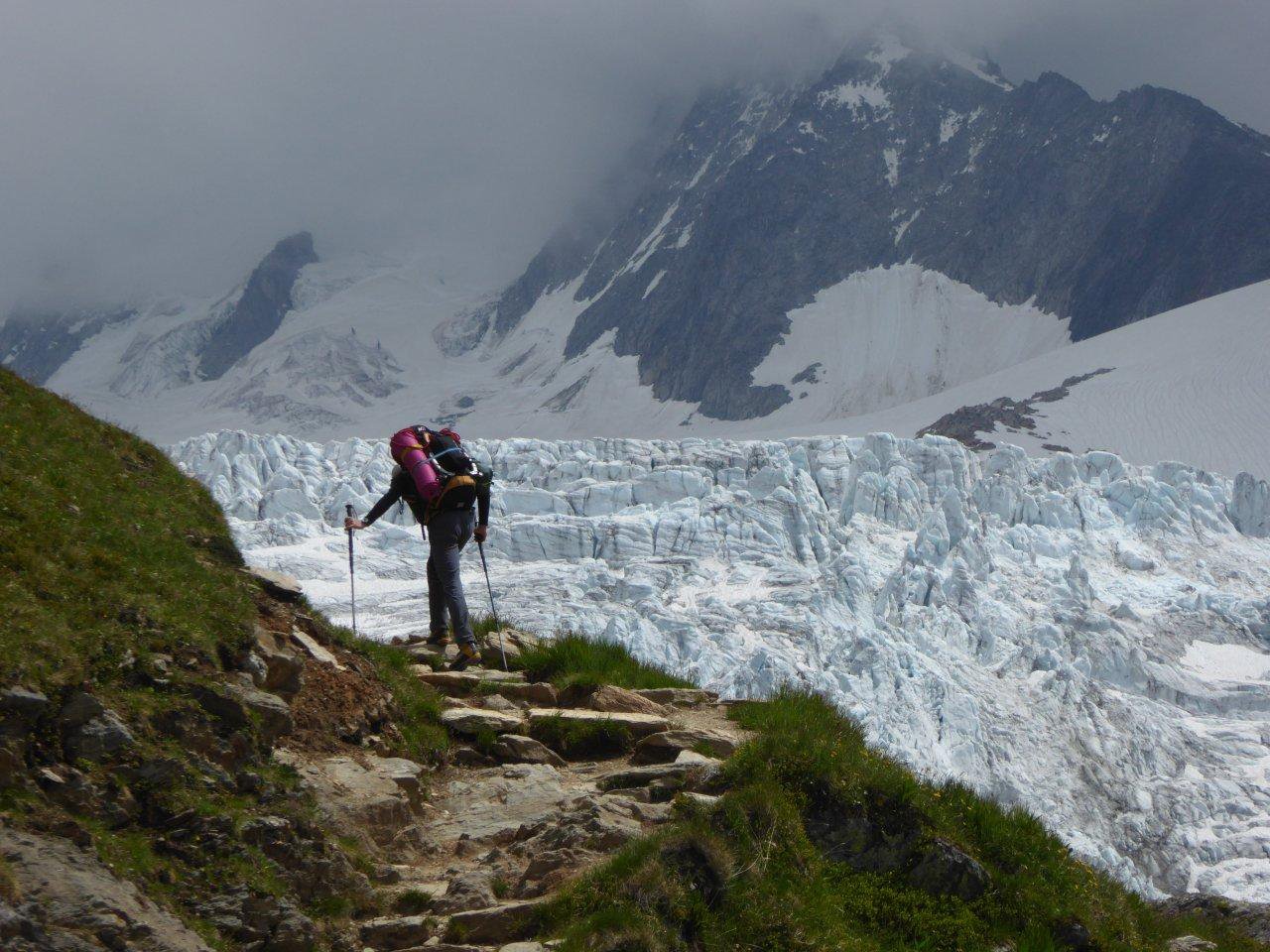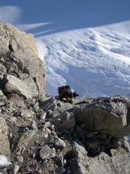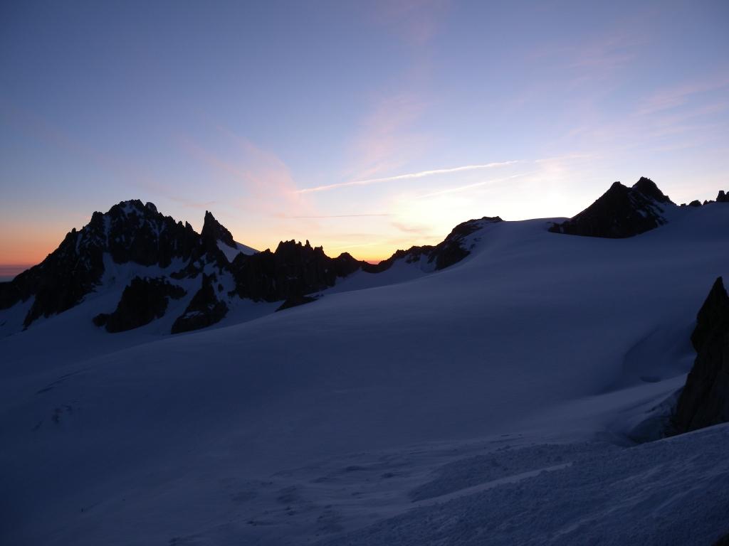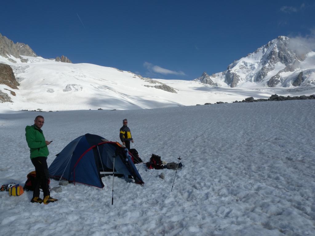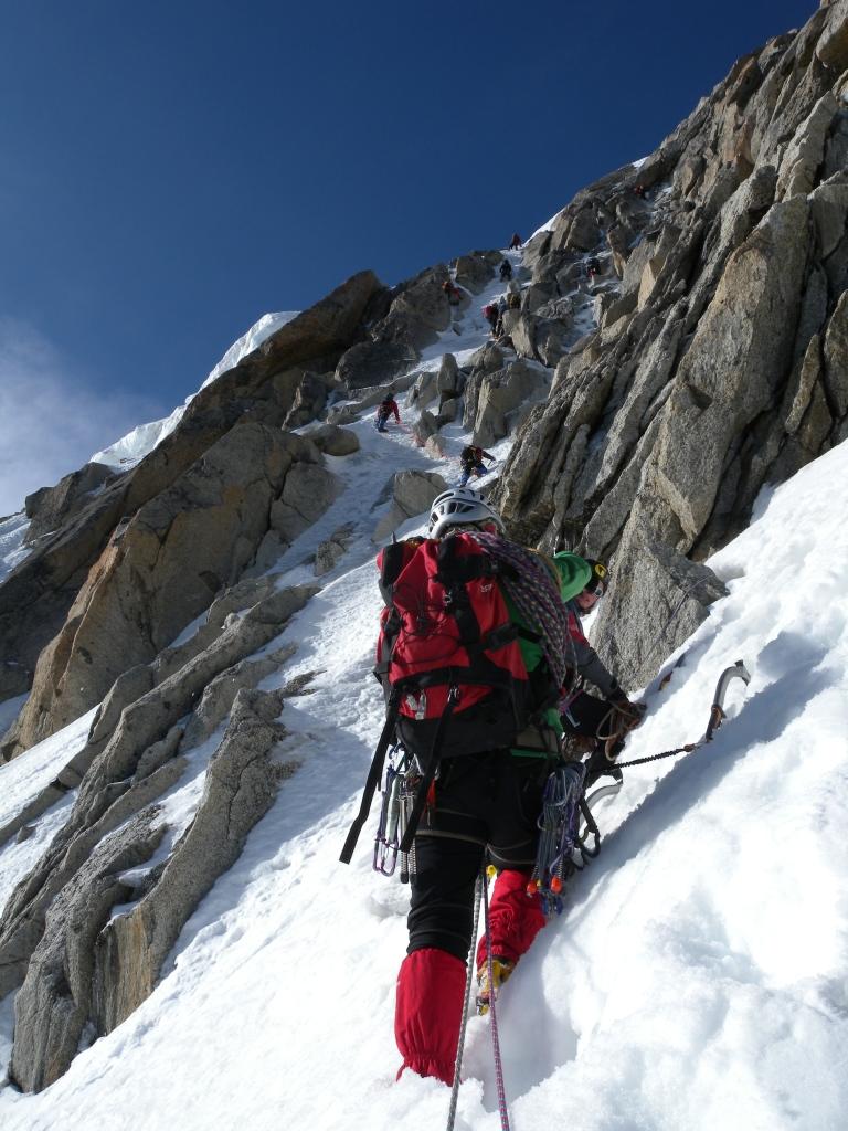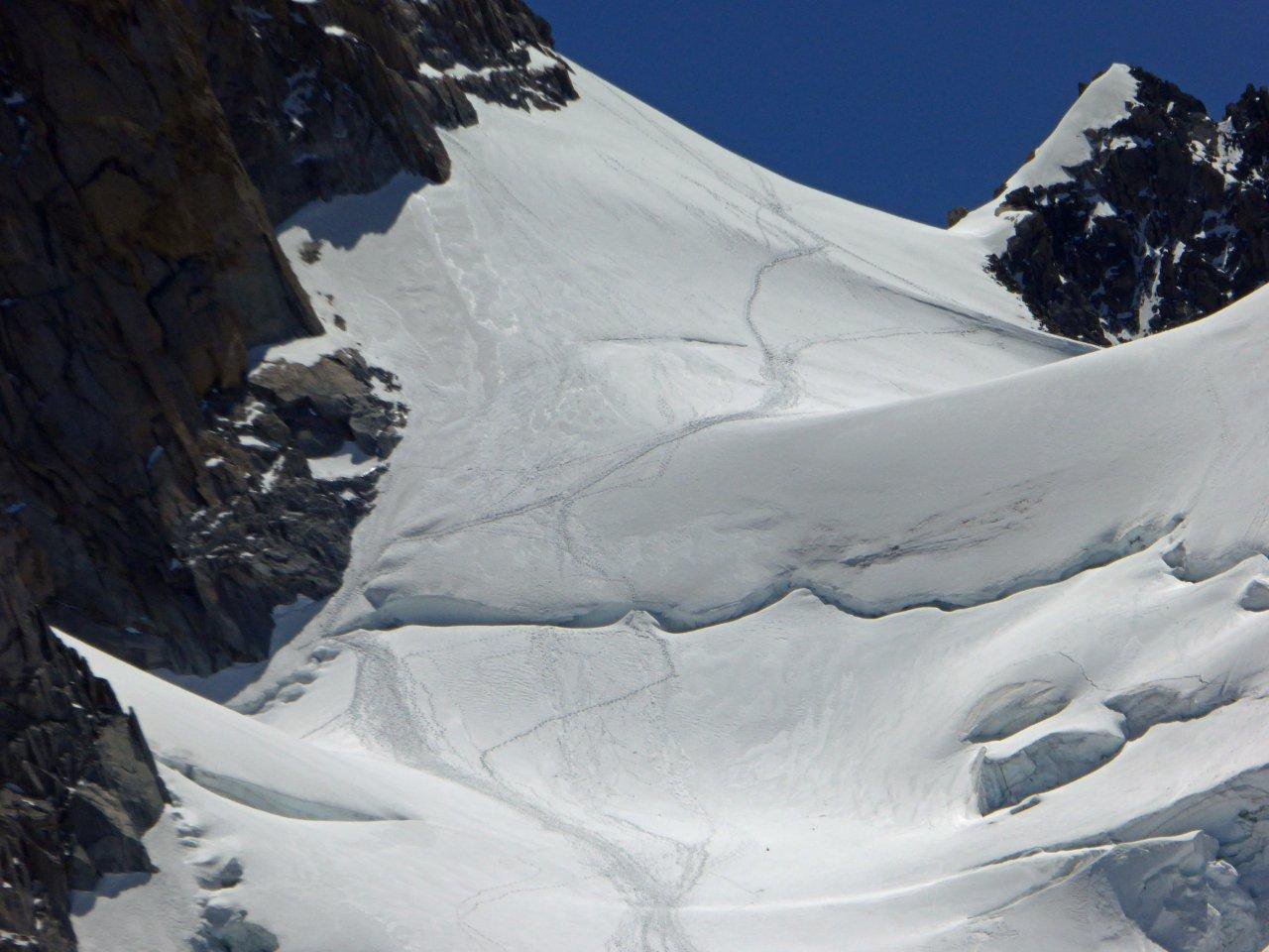 Partenza dal Refuge Albert I, proseguiti per il Col du Tour e l’isolotto roccioso fino allìattacco dell’evidente sperone (1h30), Più rapido tagliare il ghiacciaio, si risparmiano 30 minuti.