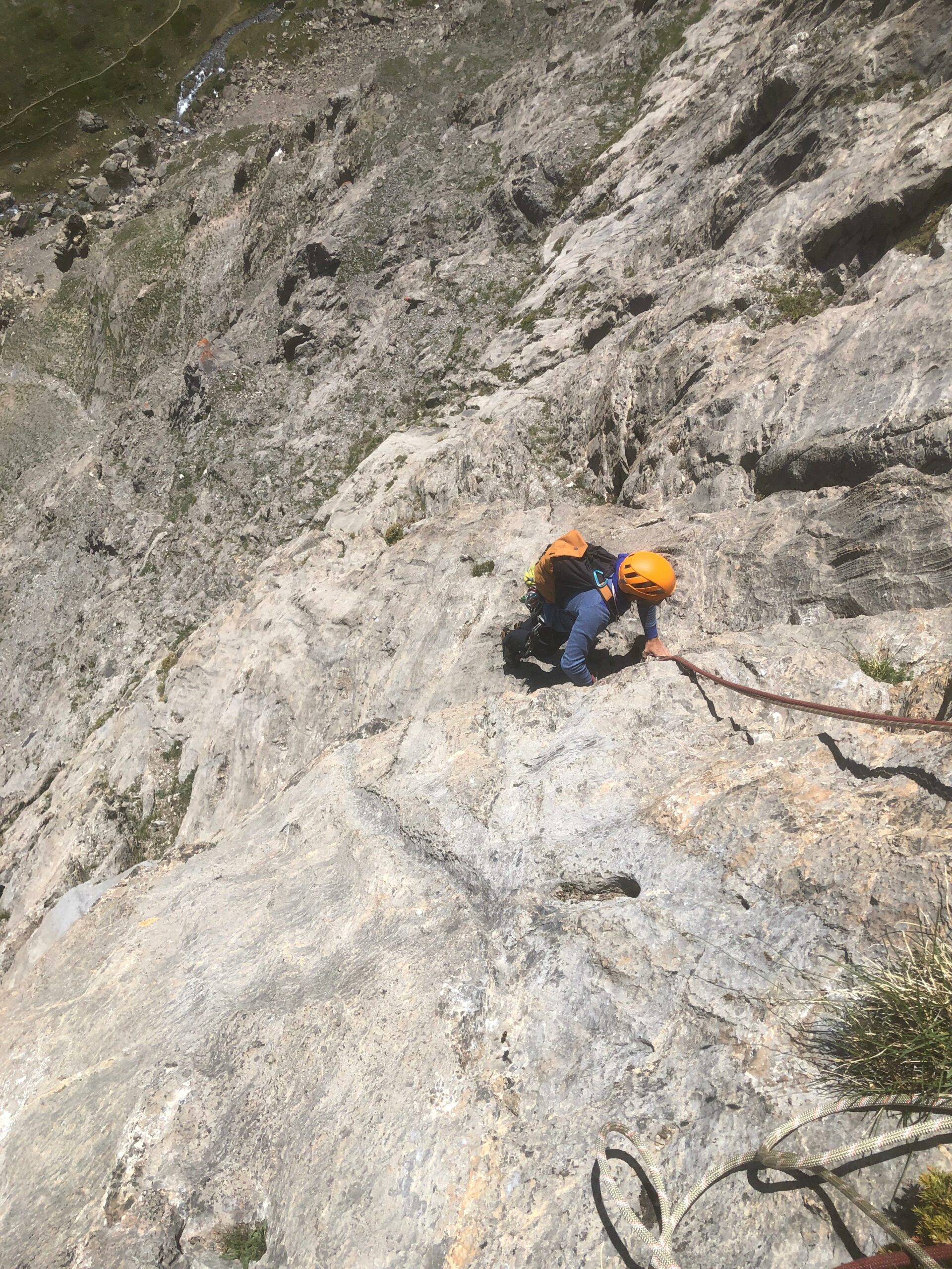 Fare attenzione nell’attraversare le cenge molto sassose: casco obbligatorio.