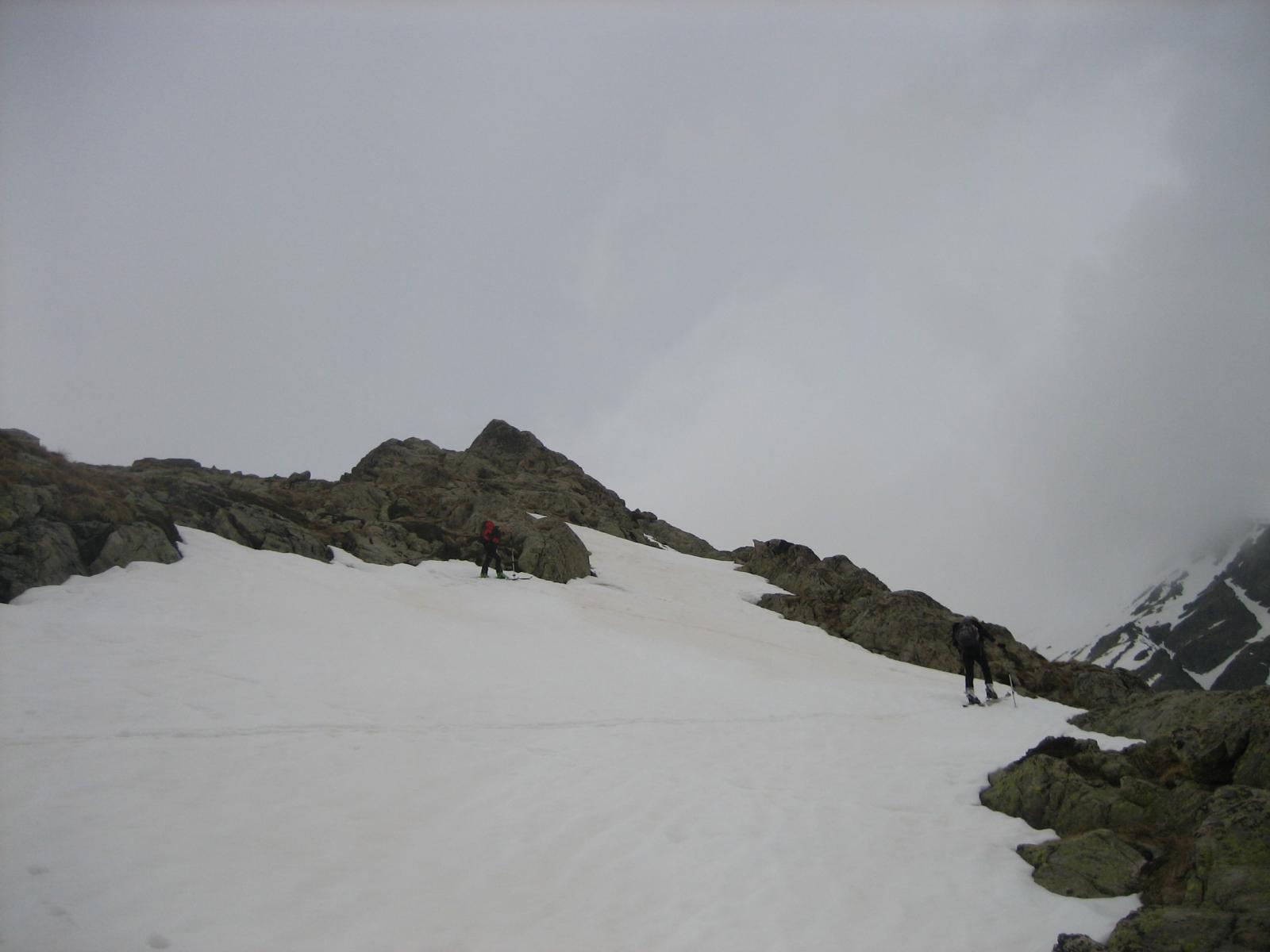 La discesa si può effettuare scegliendo la linea più consona alle vostre capacità a dx o a sx della traccia di salita data l’ampiezza dei pendii collegati da svariati canalini.