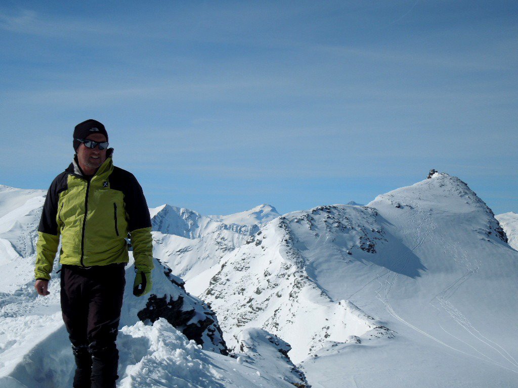 Sceso per primo verso le 10,30 trovando nel pendio sotto la punta bella farina e tratti vergini.