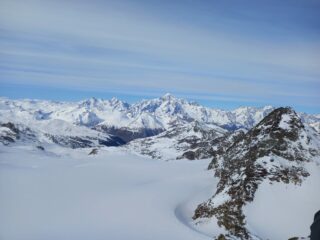 La neve a Planval non c’è però si riescono a mettere gli sci dopo circa 15 minuti su lembi di di neve insciabili al rientro! La giostra inizia dopo circa 400 metri con neve inconsistente (palline di polistirolo sciolte o firn) su fondo portante e questo si trovata sino al deposito sci, pertanto una sciata memorabile suffragata dal fatto che non c’erano gli odiosi eliski (credo sia dovuto al fatto che c’era un po’ di vento ad infastidire l’ascesa… beato Eolo)