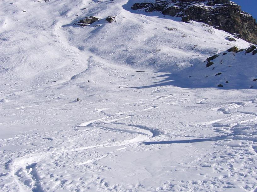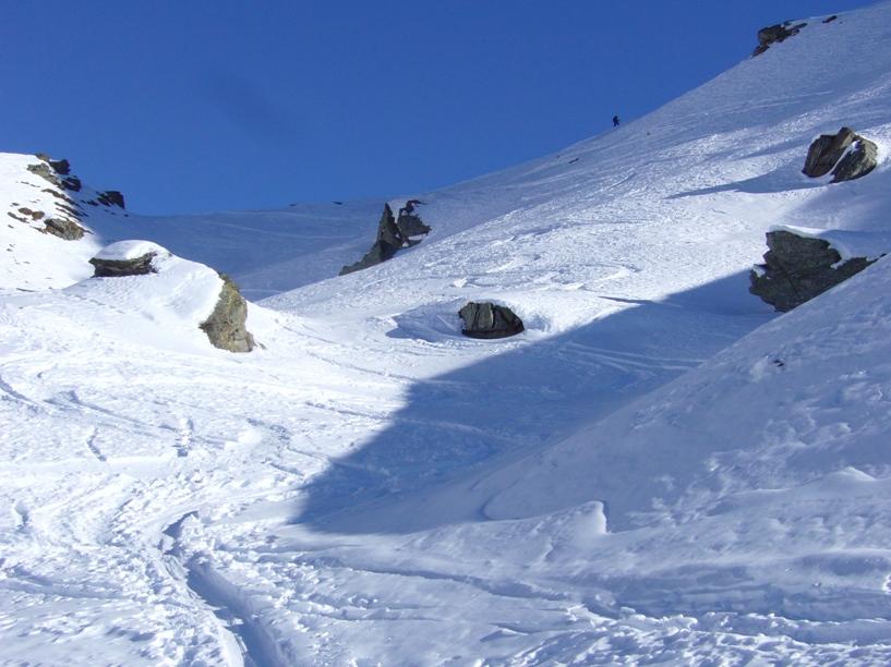 Buona sera a tutti. Tanti skialp oggi su questa bella gita. Neve non abbondante ma essenziale. Scesi nella parte sinistra del vallone, su neve farinosa con qualche placca di crosta sottile, poco fastidiosa. Buone gite.
