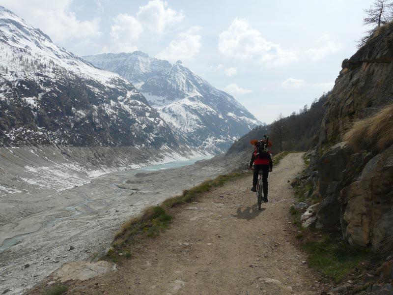 dalla diga di place moulin mt. 1968 raggiungere il rifugio prarayer (mt.2000) percorrendo la lunga strada (6km) che segue il corso del lago. dal rifugio continuare lungo la vallata, attraversare il ponte che porta prima agli alpeggi dere la vieille, poi a quelli di bella tza. svoltare a dx in direzione sud-est per immettersi nel ghiacciaio des dames.