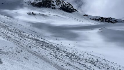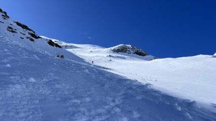 Siamo partiti molto presto , alle 4 ! Bisogna attraversare il fiume al primo ponte e poi seguire il sentiero . La neve inizia a quota 2250 . Calzati gli sci abbiamo seguito il percorso del sentiero estivo , più lungo ma più agevole in questo periodo . La salita è risultata impegnativa a causa del la neve non completamente trasformata e del pendio tra i 2700 /3000 metri , ripido e svalangato . Lo abbiamo fatto con picca e ramponi , faticando non poco e solo grazie a Massimiliano e Davide ( Bravi come due guide ) . Poi la progressione è stata ancora difficile , per un punto pericoloso , superato in sigurezza in salita . In discesa dopo le 12 , in quel punto , uscendo dalla traccia , abbiamoprovocato un distacco di superficie ,che per fortuna è risultato innocuo ! Poi lunga discesa con neve anche bella sino a quota 2250 .