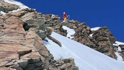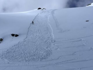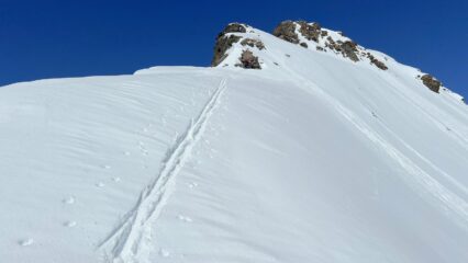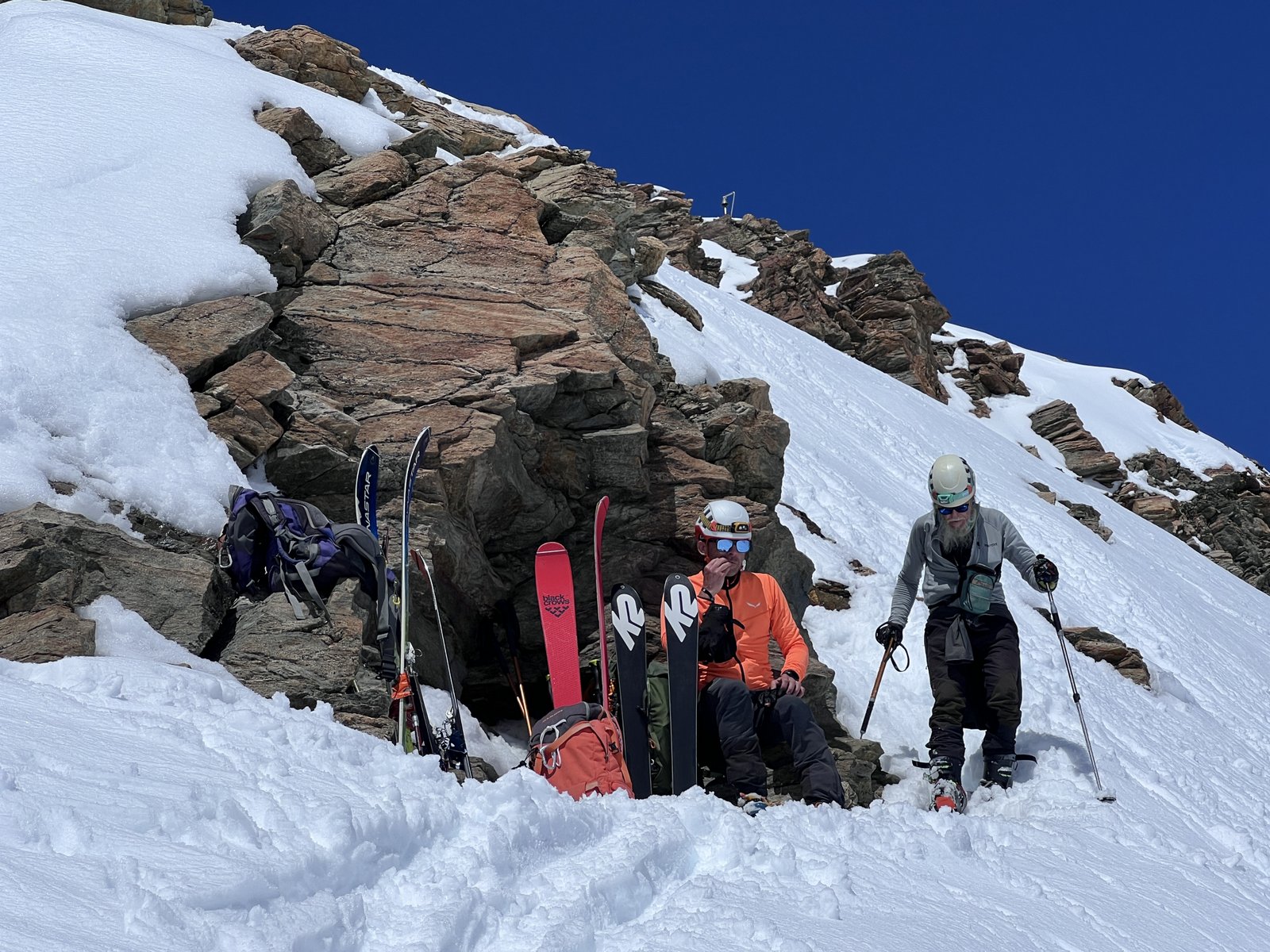 Chateau des Dames cinque in vetta ! Gita durissima che siamo riusciti a completare grazie a Davide e Massimiliano ed alla determinizione di tutto il gruppo! Oggi le condizioni della montagna erano impegnative , pendii svalangati e neve alta , da 2200 mt in su ! Partiti alle 4 siamo arrivati in cima dopo le 11 ! Siamo scesi dopo le 12 ( un po’ tardi in questa stagione ) . In un punto ripido ( Massimiliano , in precedenza , era salito in verticale , in sicurezza ) in discesa , uscendo dalla traccia , si è staccata una valanga di superficie che per fortuna è risultata non pericolosa ) . Che dire fare lo (C.d.D.) in questo periodo con gli sci non è usuale , Ermanno ed io lo volevamo fare a Maggio , ma il rifugio era chiuso , questa era ultima occasione per suonare la campana di vetta : La prima volta per Bruno , Davide ,Massimiliano e Roberto ( bravissimo , non molla mai ) . Io per scaramanzia non la ho suonata per la sesta volta , ho rimandato al prx anno !