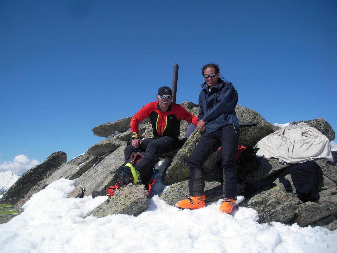 Si parte come al solito tutte le volte per una semplificazione delle cose nel tracciare una linea, con l’idea di seguire valloni comodi e logici che di certo qui non mancano, per comunque aspirare alla meta. Invece si finisce quasi sempre una qualvolta giunti sul posto, col rivoluzionare il tutto, entrando in valloni, non quelli studiati a tavolino, ma che una volta intravisti la curiosita’ a entrarvi ecco che scatta. Privi di cartina (quella di cui eravamo in possesso non comprendeva questa meta decisa all’ultimo momento), orientarsi e’ stato possibile solo una qualvolta’ alti, dove piu’ riferimenti a favore ci hanno aiutato a centrare la meta dal punto in cui eravamo, ancora molto lontana. Il GPS anche lui in questo caso non si puo’ dire che non ci sia stato d’aiuto. Un bel concatenamento di punte sul lungo filo di cresta non c’e’ lo siamo fatto mancare neanche stavolta. Giornata quindi spesa bene, e che giornata..limpida, regime di brezza in punta. Neve che nonostante la partenza tarda, alle 8 dai Chalets, ha mollato il giusto, per il pacere di una bella fluida e scorrevole discesa avvenuta sei ore e mezza dopo la partenza, ormai in pieno pomeriggio. Siamo saliti con una 4×4 fino agli Chalets, accorciando cosi’ di parecchio l’itinerario di avvicinamento, nonostante la sbarra a Fontcouverte (ma senza obbligo di divieto a procedere), su strada a tratti ancora innevata.