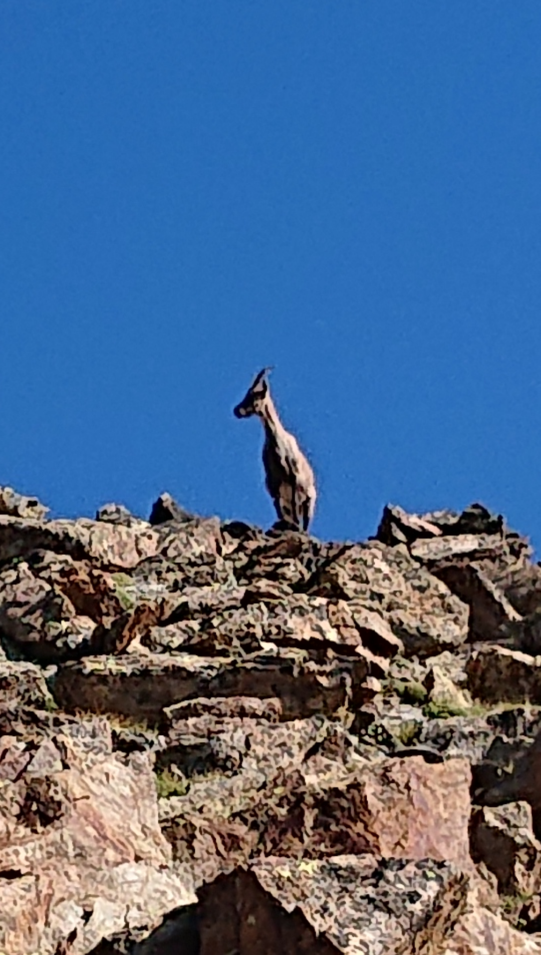 Per guadagnare 120 metri di dislivello si può partire dall’ultimo tornante della strada per la diga (dove parte il sentiero n°3). Io non ho trovato la partenza della traccia di sentiero che conduce alle baite di Chatelet, bisogna stare attenti ad un bel omino sul tratto pianeggiante del sentiero 3 che ne indica la posizione, l’ho visto poi in discesa. Comunque poco sopra l’ho trovato e seguito con difficoltà (è poco evidente). In salita non ho incontrato neppure i ruderi delle baite (anche quelli trovati in discesa) comunque è molto evidente il punto in cui inizia la cresta S/SE. Qui si incontrano le uniche difficoltà alpinistiche non evitabili. Io sono salito nel primo canale a fianco della cresta con passi di II° abbastanza esposti. Poi stando in cresta si sale facilmente in vetta su rocce stabili. Discesa per la via di salita, non trovato nessun ometto se non nella parte bassa prima dei ruderi. Oggi in compagnia di due aquile e qualche stambecco.
