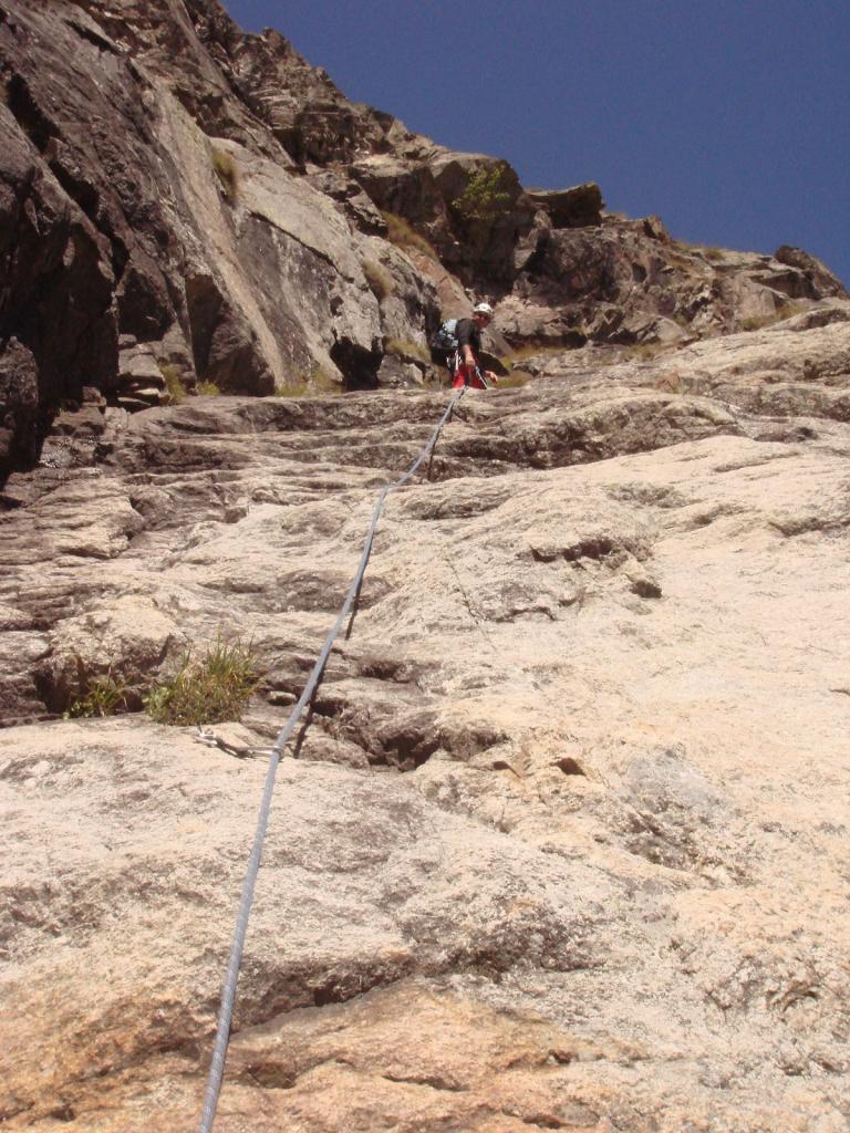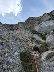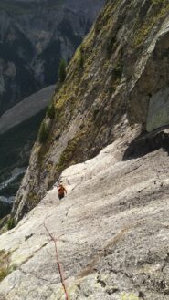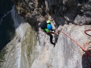 E’ anche possibile dalla sosta di L11 proseguire fino ad uno spit dove recuperare il secondo (20m, II, III+, 5spit)