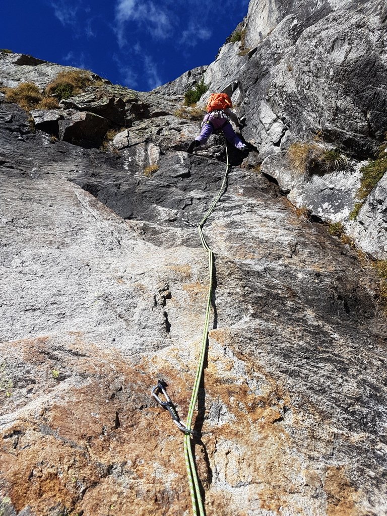 Da non trascurare la lunghezza e l'ambiente della via che è sempre di "alta montagna". Sconsglio le doppie lunga la via perché complicate, la via "gira molto".