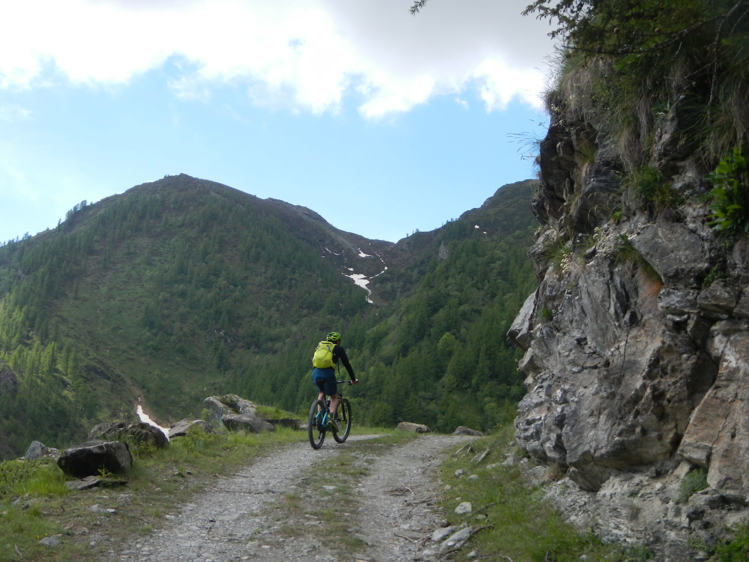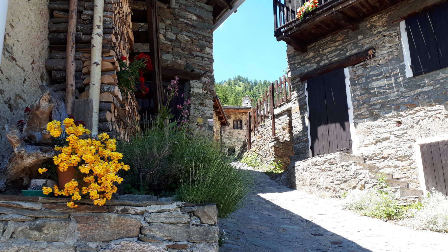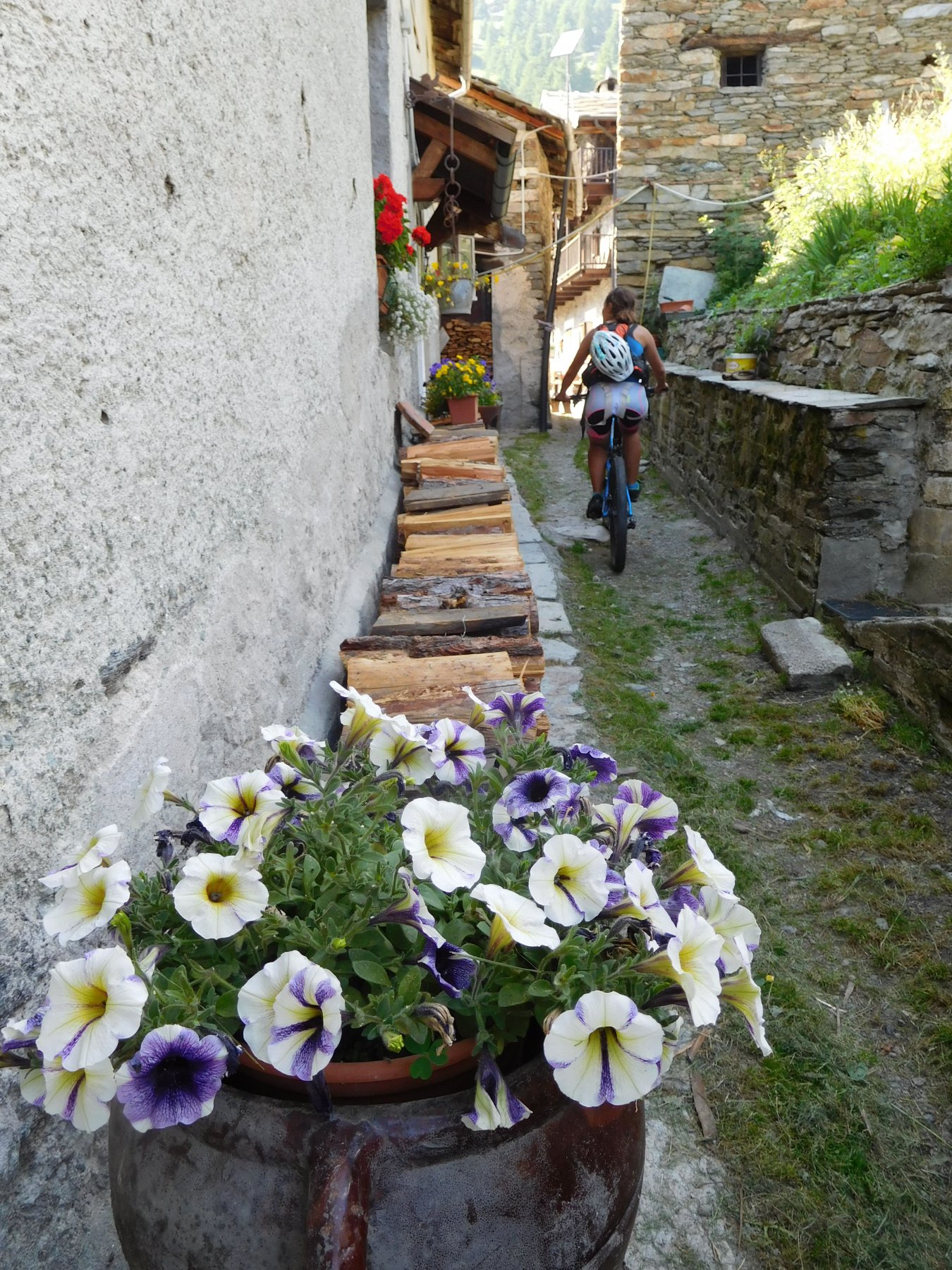 L’asfalto termina definitivamente lasciando spazio ad un bello sterrato, mai troppo ripido, che tocca in successione le borgate di Casette, l’abitato di Chasterian km.9 che vale la pena visitare, e con uno strappo più impegnativo le Bergerie Serre km.10.5.