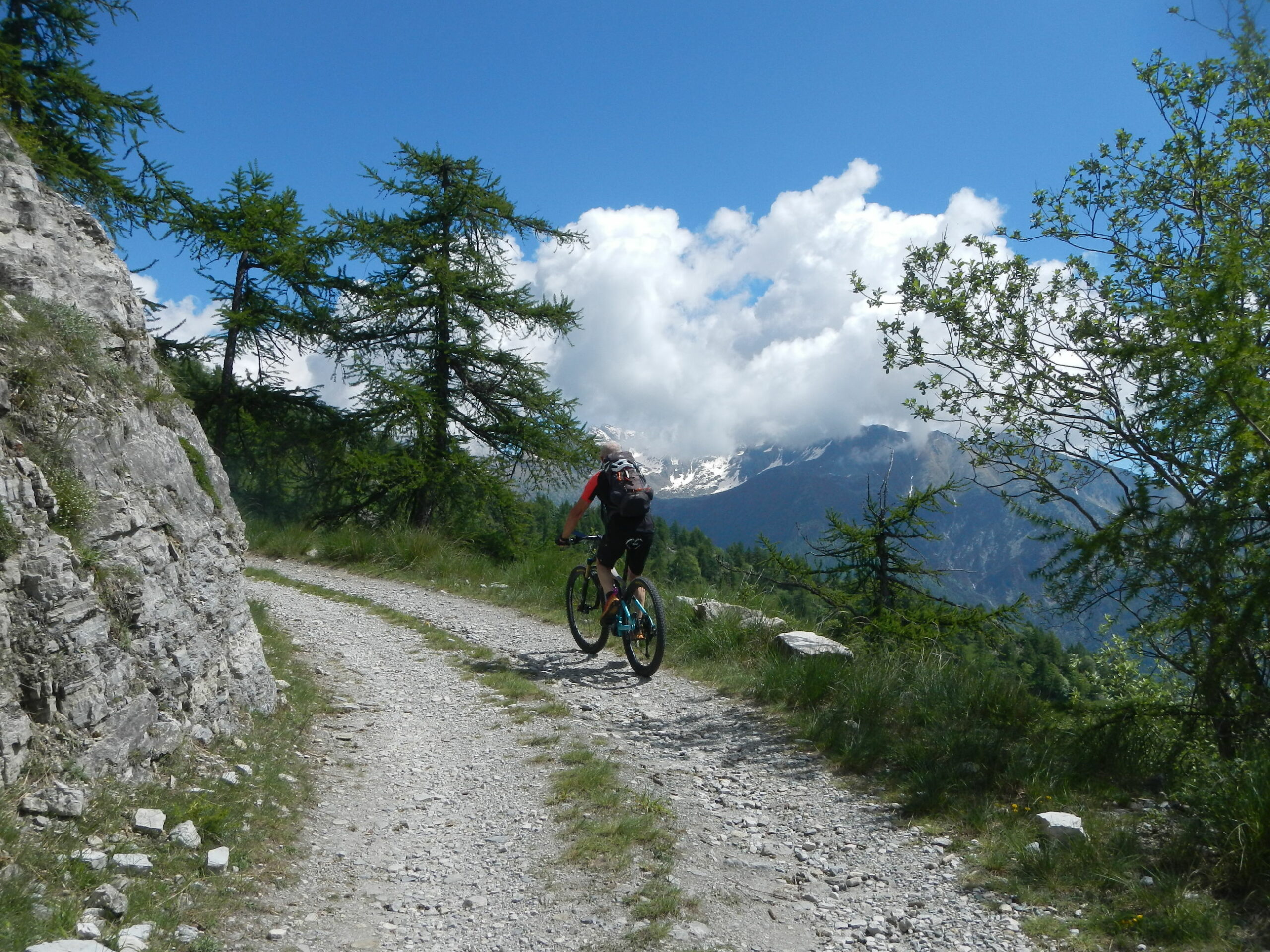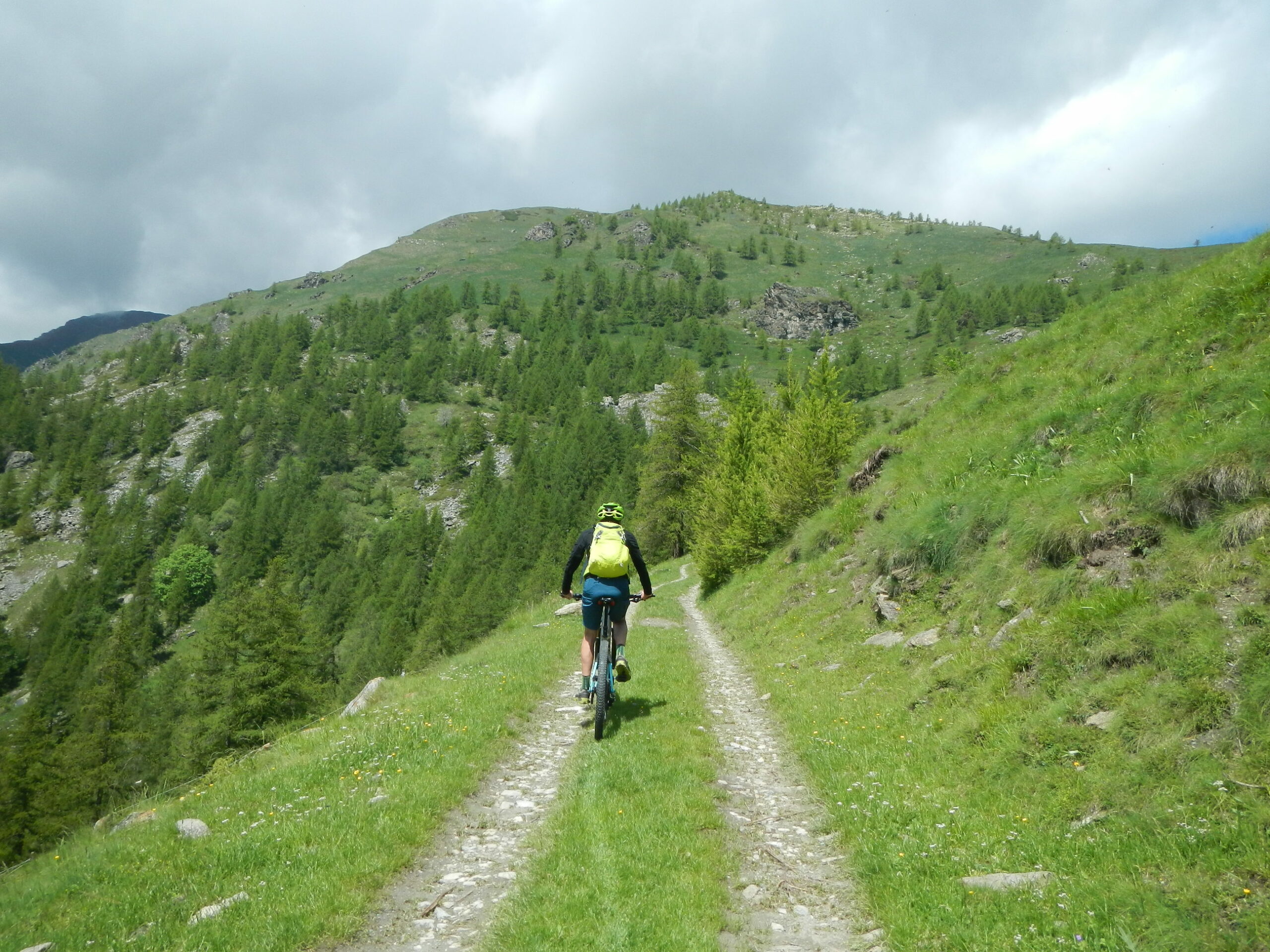 Non appena ritorna l’asfalto inizia il tratto più impegnativo, che porta al colletto panoramico con il Pilone di Bourcet km.7 m.1503.