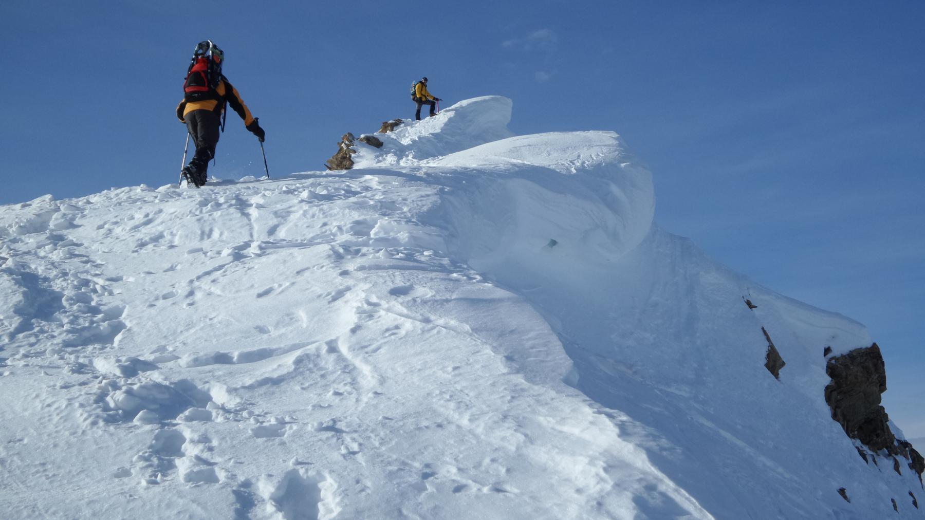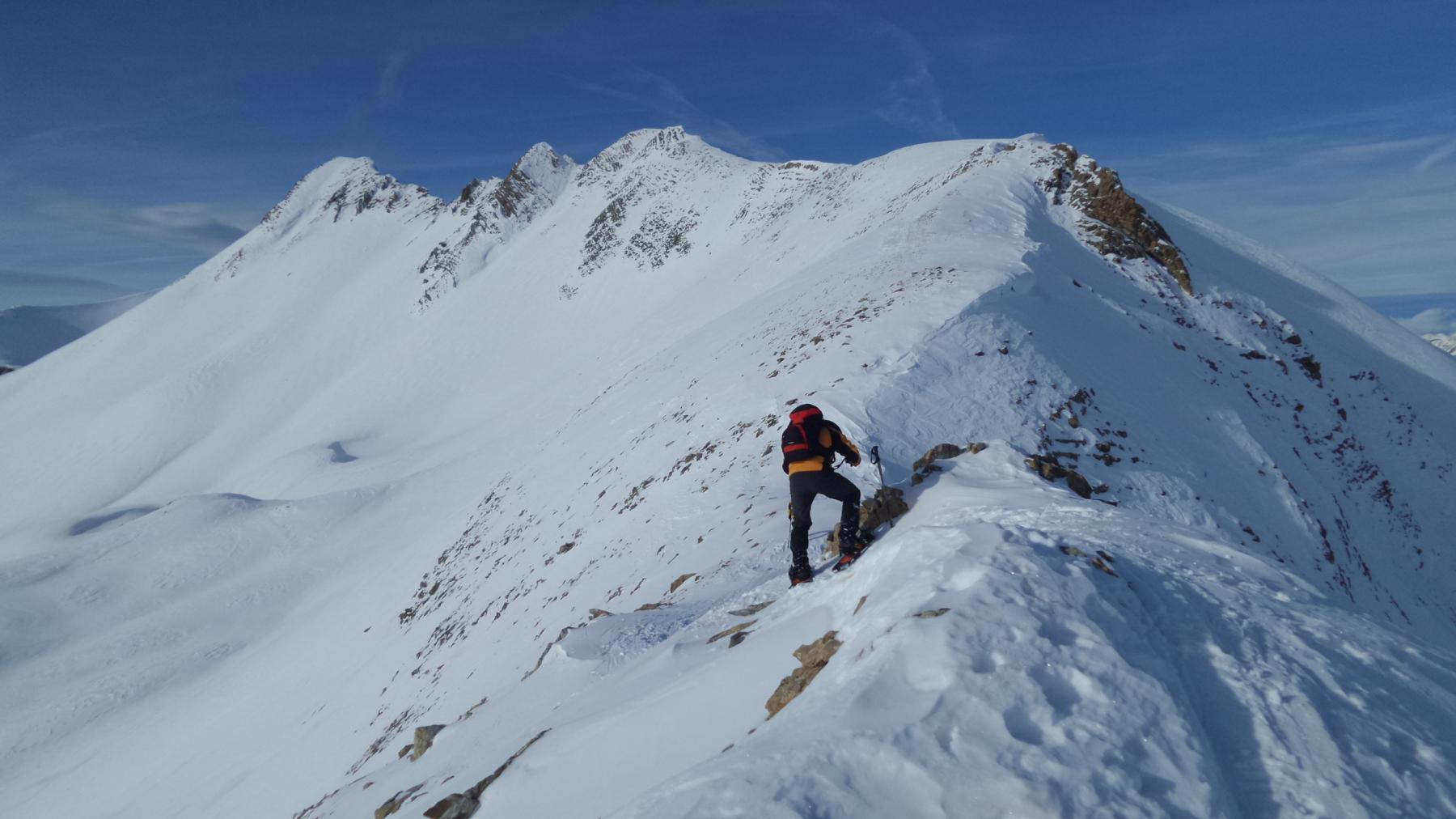 La vera cima 2886 m è posta su una cresta di collegamento con l'anticima NE, che risulta piuttosto aerea con passaggi delicati (anche in discesa) su neve e misto che richiedono neve in ottime condizioni e sicurezza di piede, una corda al seguito potrebbe essere utile, altrimenti ci si può fermare alla anticima (cima scialpinistica). Piccozza e ramponi spesso sono necessari. E’ un itinerario abbastanza evidente che non presenta difficoltà di orientamento, tuttavia nell’ampio Vallon de Clapouse prima e nel Vallon du Chevalier poi è opportuno avere condizioni di buona visibilità in mancanza di tracce esistenti.