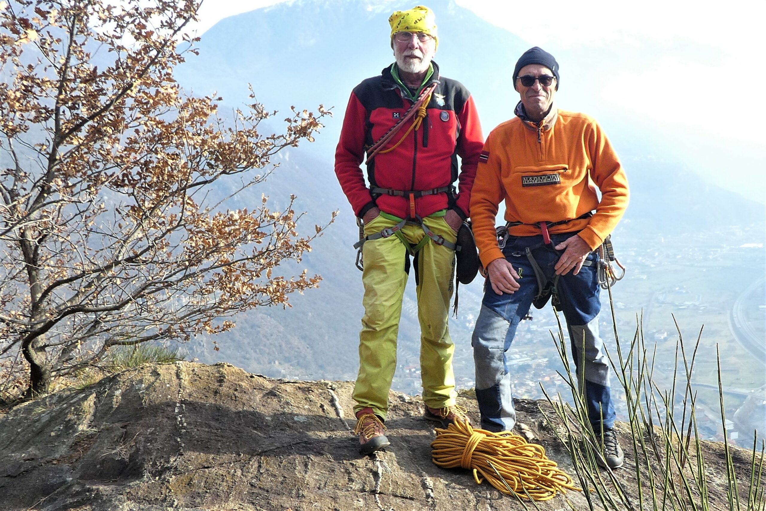 Grande intrico di tronchi e ramaglie a base parete per arrivare all’ attacco; semplici i primi tre tiri, mentre il muretto del quarto richiede un certo impegno e, anche se la chiodatura è ottima, il passetto obbligatorio c’è; materiale in ordine e pietra solida, fatta con una mezza da 60 m. ripiegata in due, ma in L2 ne manca un bel metro.