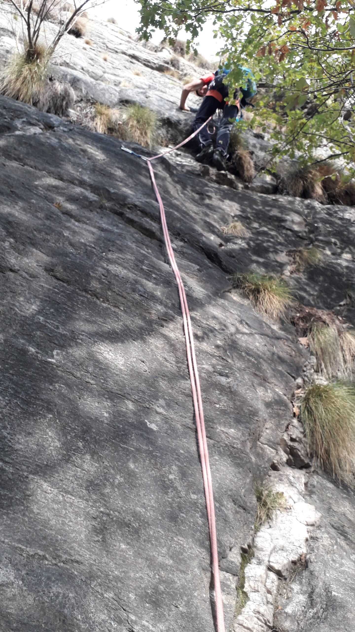 Dopo i nonni passiamo a funky gallo, linea di salita grossomodo dalle stesse caratteristiche della precedente. Chiodadura, soste, grip, ineccepibili. Solo scalare e divertirsi da quando si entra in azione dal primo fino all’ultimo dei sei tiri di corda di questa interessante vietta. Il muro di 5c di L4 da considerare come passo chiave, in quanto tale, ci ha messo abbastanza a dura prova. Sublime il traverso di L3 sotto ai tetti, tutto a sx che porta ad attaccare il muro di 5c.