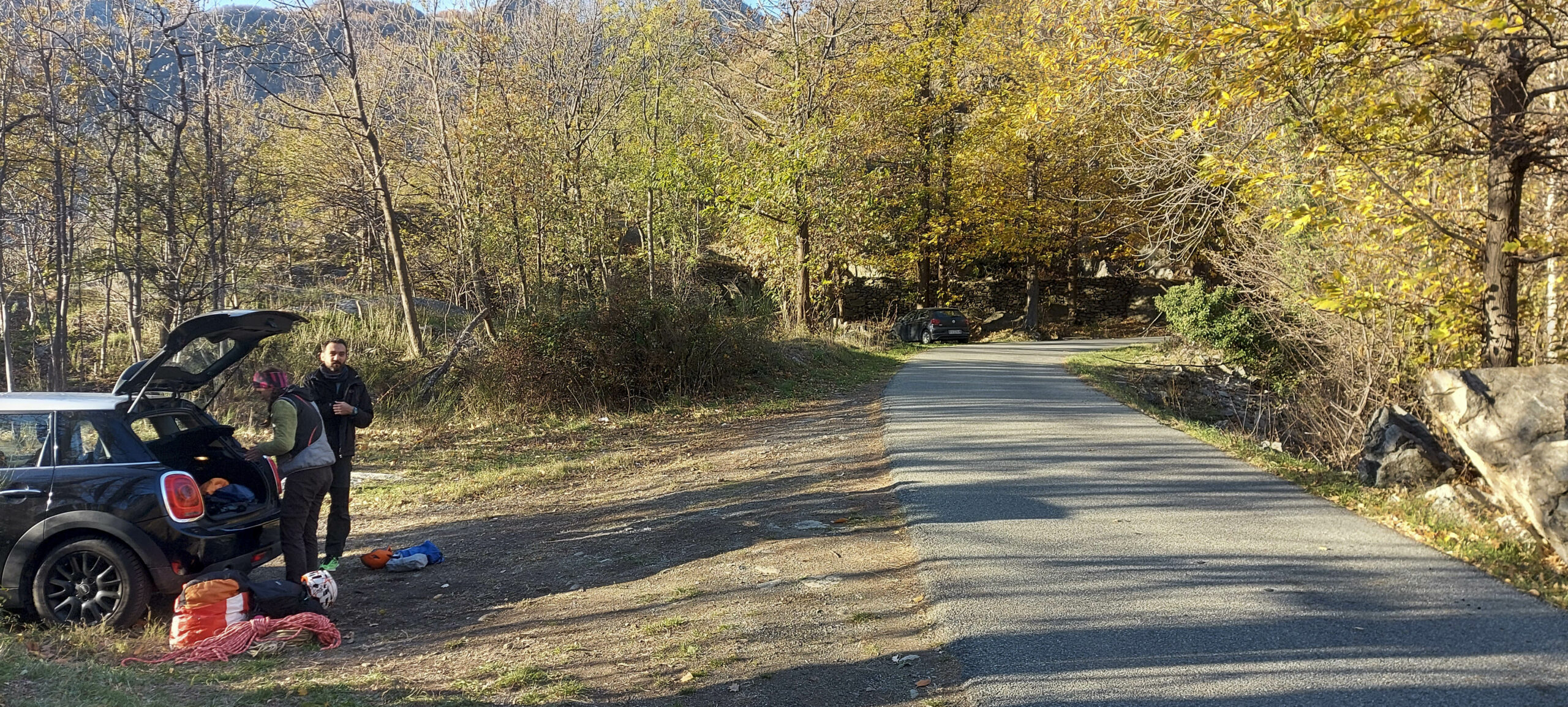 - Arrivati a Donnas girare a dx per museo montagna come da altre indicazioni, andare verso Albard di Donnas ma prima di arrivare alla frazione lasciare la macchina in uno spiazzo prima di un curvone e dx (foto e mappa).
