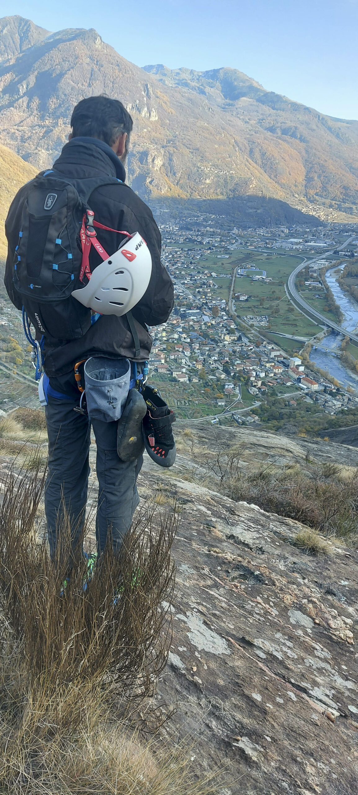 Via perfetta chiodata e gradata perfettamente, peccato alla base tutti quegli alberi caduti. Soste con due fix da unire. Alla già fatta descrizione della via aggiungo solamente delle info per raggiungere la falesia. Una volta parcheggiata l’auto (vedi mappa andare verso il muretto in pietra e la palina gialla. Salire la scaletta del muretto e dopo 5 metri all’omino dove c’è un bivio andare dritti in basso seguendo i bolli rossi (il sentiero che vedete a dx è quello di rientro). scendere verso la casa nella roccia (foto), scendere ancora una corda fissa e poi sitrova ill sentiero che sale da Donnas (tabellone informativo, foto) andare a dx. Dopo qualche minuto al bivio con le due frecce gialle (foto) andare a dx (omino di pietra) in evidente direzione della parete, Qui il sentiero non è piu presente si fa del ravanage tra le piante abbattute ma non ci si può sbagliare, si va a sbattere contro la parete con le vie.