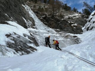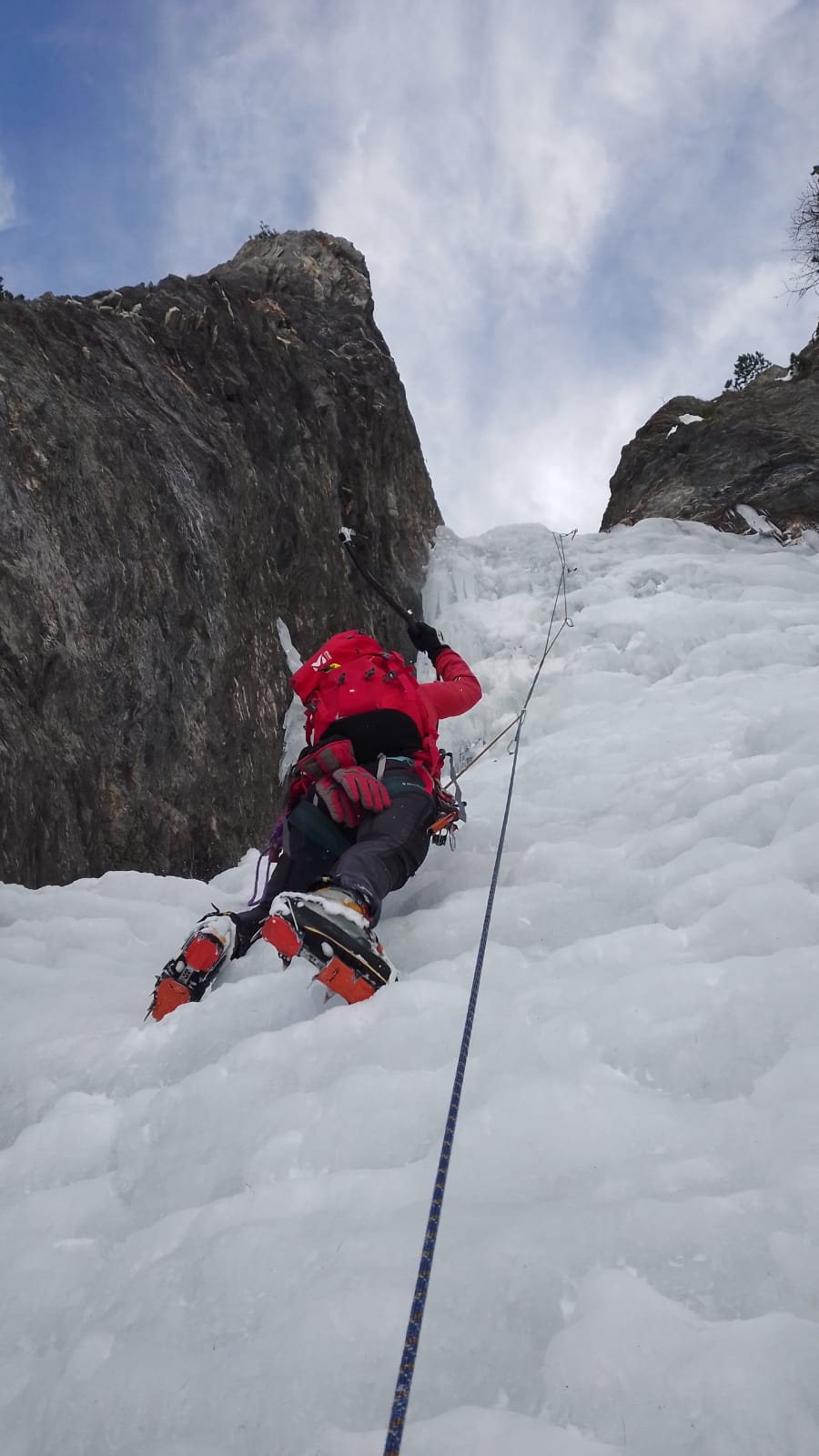 Cascata ottima, prima volta che faccio tutto da primo grazie ai soci pazienti, anche Valeria l’anno salita in questi giorni. Ora l’avvicinamento è tutto tracciato. ( bella li)