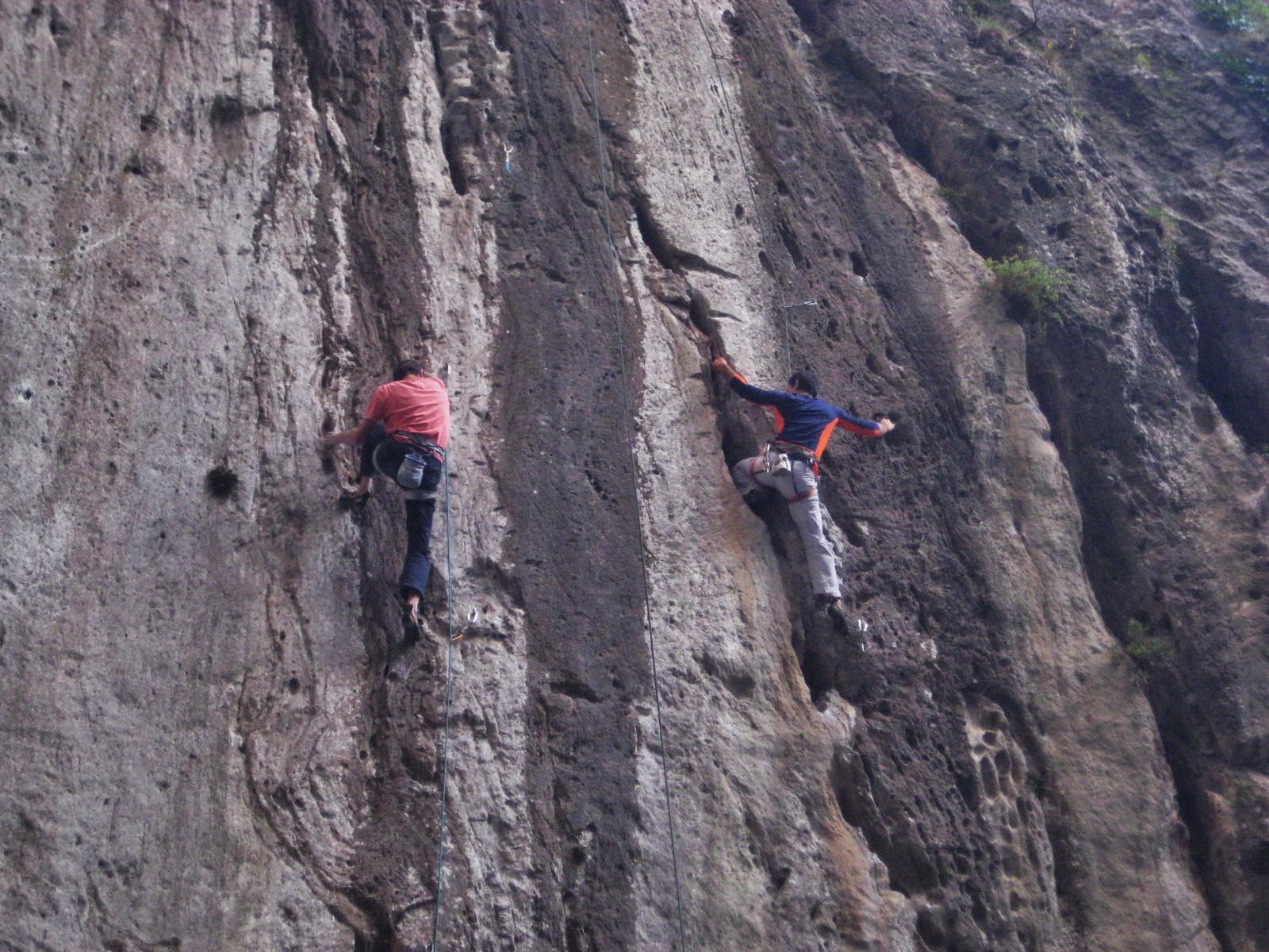 Oggi particolarmente affollata. Oltre a quelli che mi hanno fatto toccare con mano i buchi di baccotabaccoevenere e quelli dei mari del sud c’erano anche arrampicatori francesi