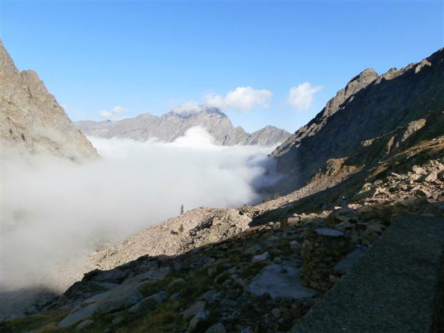 Salito come da descrizione in una giornata dal meteo variabile, ma senza piogge. La salita sulla breve cresta è divertente e nel complesso semplice, bisogna fare attenzione alla qualità della roccia, non sempre salda, ai tratti erbosi, che se umidi o bagnati, possono essere infidi. Cima panoramica, anche se oggi la nebbia in basso e le nuvole alte hanno limitato assai la vista. Discesa versante Rovina e veloce risalita fino alla vicina rocca Barbis, prima di scendere al minuscolo laghetto e raccordarmi al sentiero Gta al colle del Chiapous. Oggi in solitaria, nessuno oltre il rifugio, qualcuno incontrato sul sentiero e al Morelli.