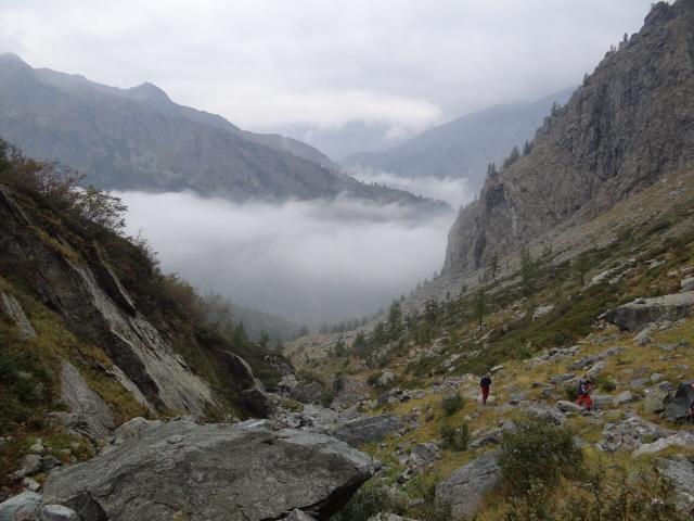 Al rientro raggiunto il colle del Vallonetto per poi scendere sino a quota 2335m dove svoltando a dx si supera una pietraia e si oltrepassa una dorsale scendendo la quale abbiamo raggiunto i laghi Verdi 2160m incrociando il sentiero del GTA. Percorso, successivamente, a dx a scendere il sentiero del GTA sino al rientro a Cornetti.