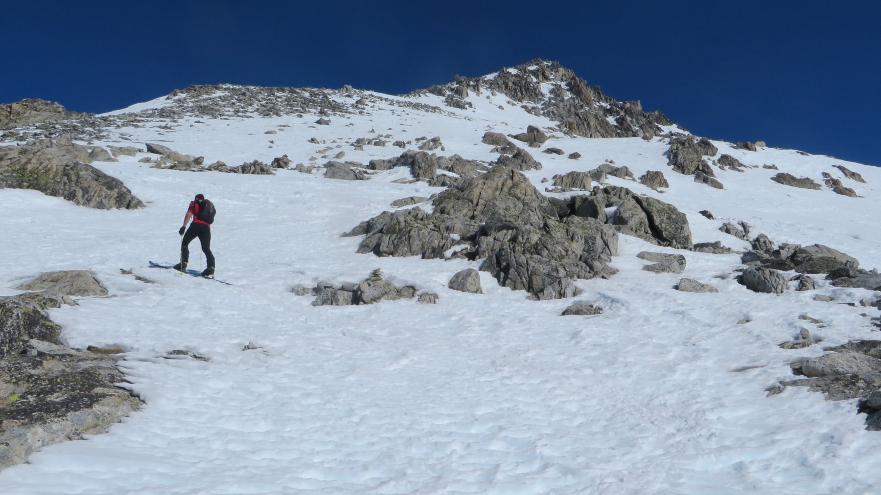 Da All’Acqua, dirigersi verso NO e percorrendo il ripido canale raggiungere il rifugio Piansecco (CAS, 1980m) . Proseguire verso NW nella conca sotto il contrafforte SE del Chüebodenhorn. Deviando gradatamente verso W, salire per il ripido pendio al Gerenpass, 2691m. Aggirare in direzione NO un costone e portarsi per il versante SO in vetta.