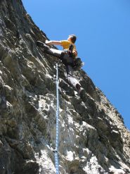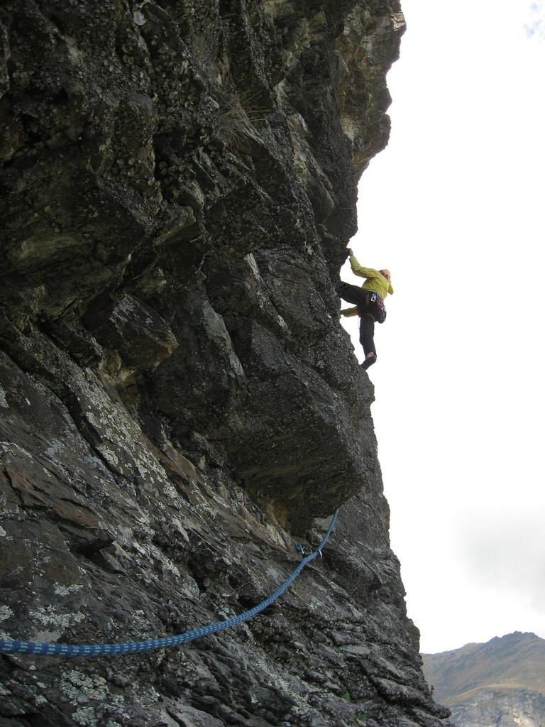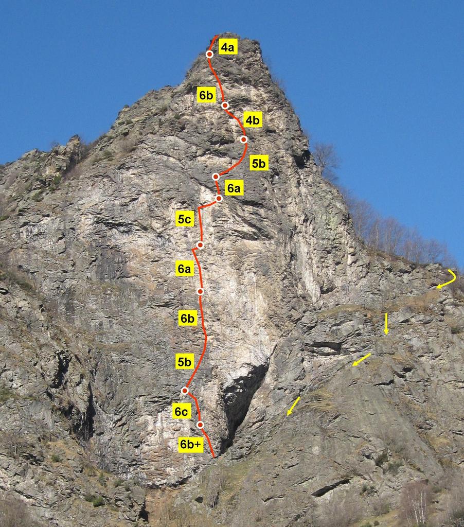 L3:6b si supera 1 strapiombo,poi verticalmente fino al vertice di 1 pilastrino staccato.(tiro magnifico)