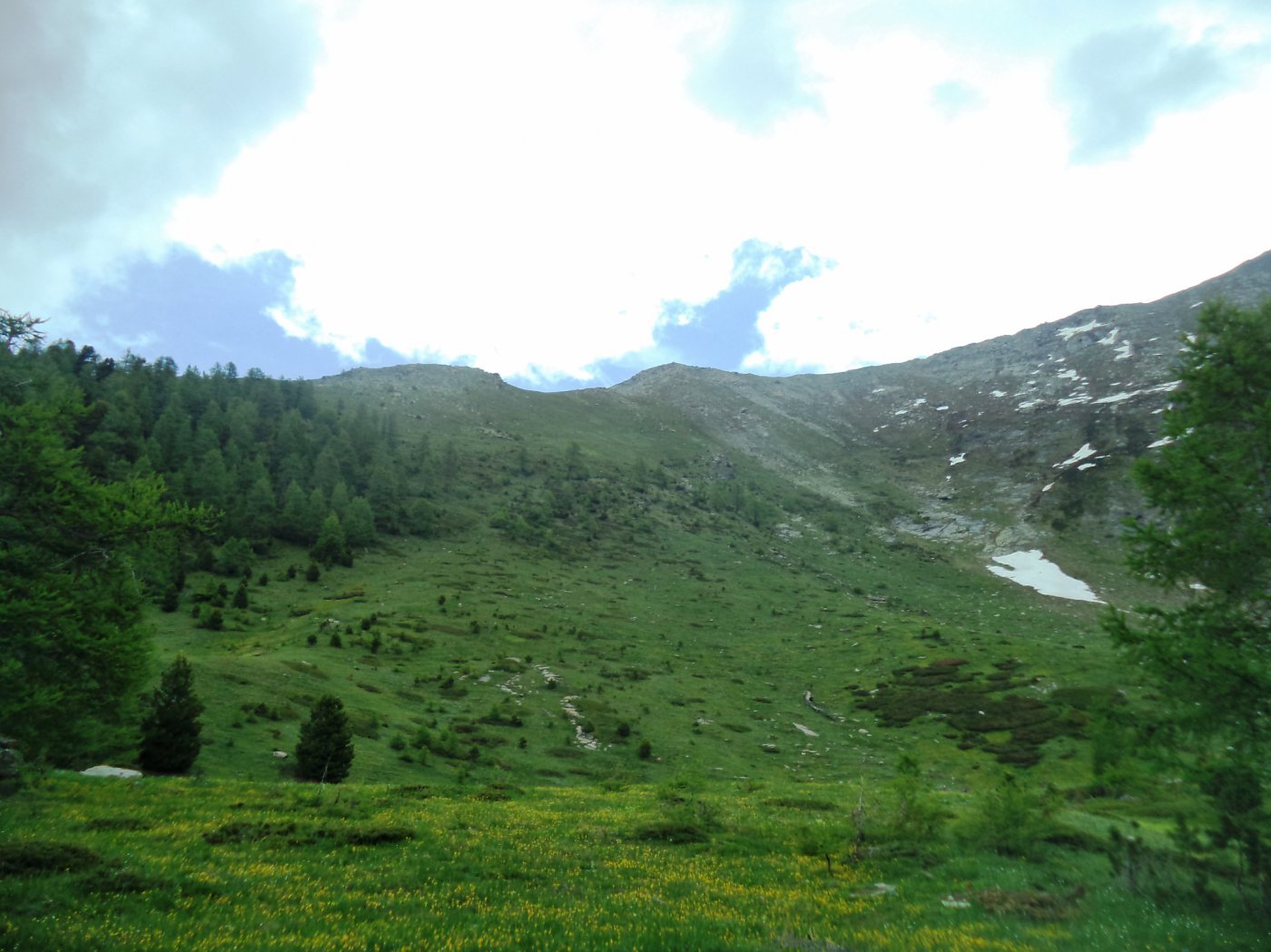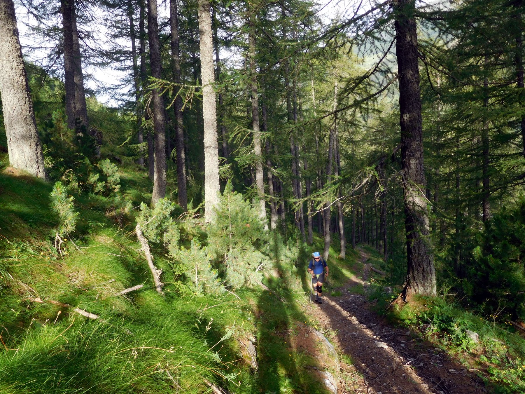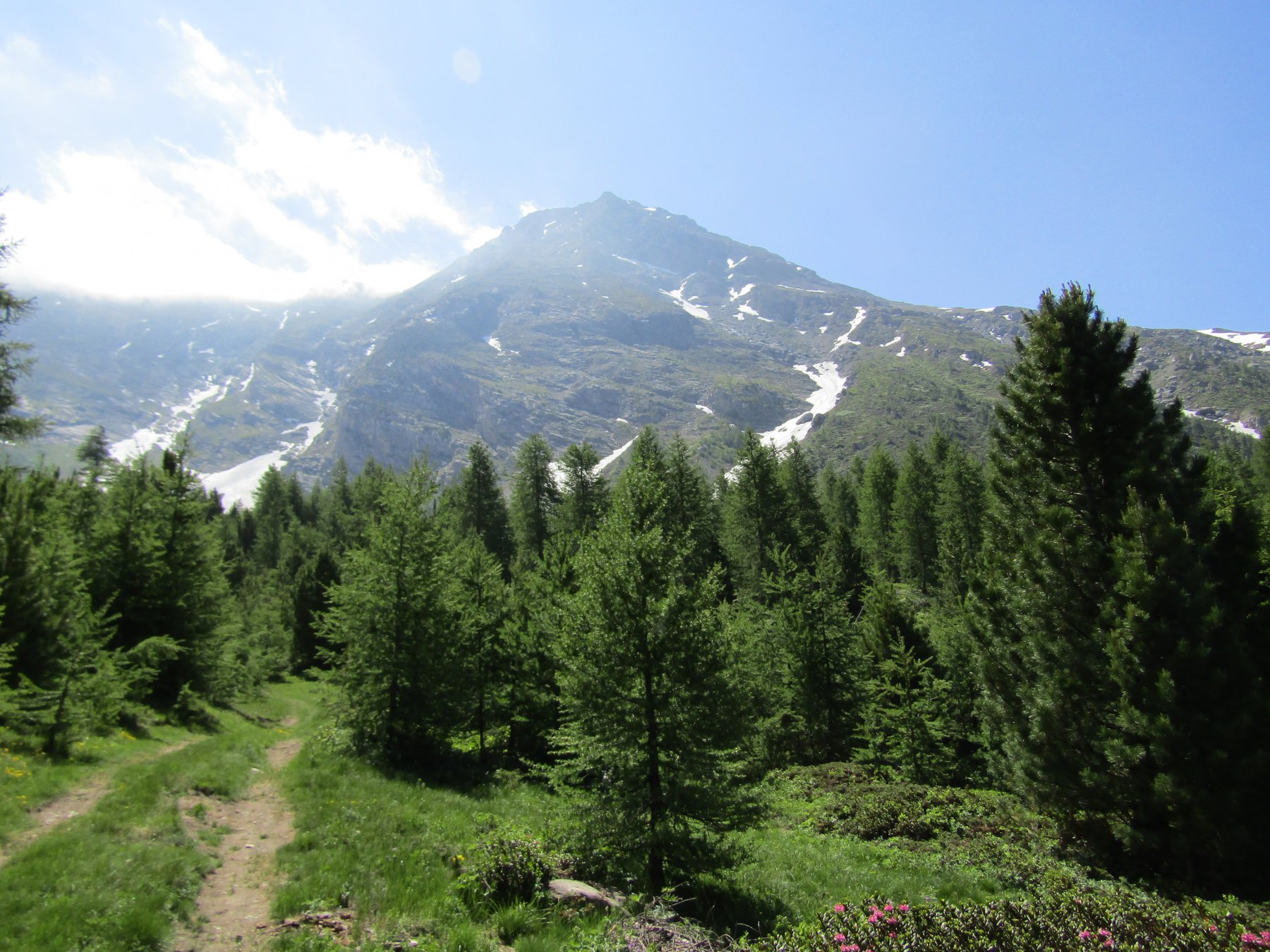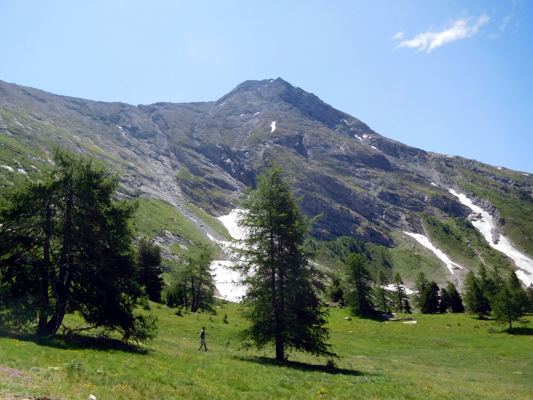 Dalla stradina che parte dietro la chiesa di Soucheres Basses si giunge ad un bivio, prendere il sentierino in salita a sx (cartello nuovo) e proseguire, senza possibilità di errore, lungo il bel bosco di larici. Giunti nel pianoro sotto l’Albergian a q.1950m il sentiero (sempre segnalato da bolli blu e giallo/rossi) devia verso sx e attraversa tutta la conca, fino ad incrociare la poderale che sale da Fraisse alla baita Ambrogio.