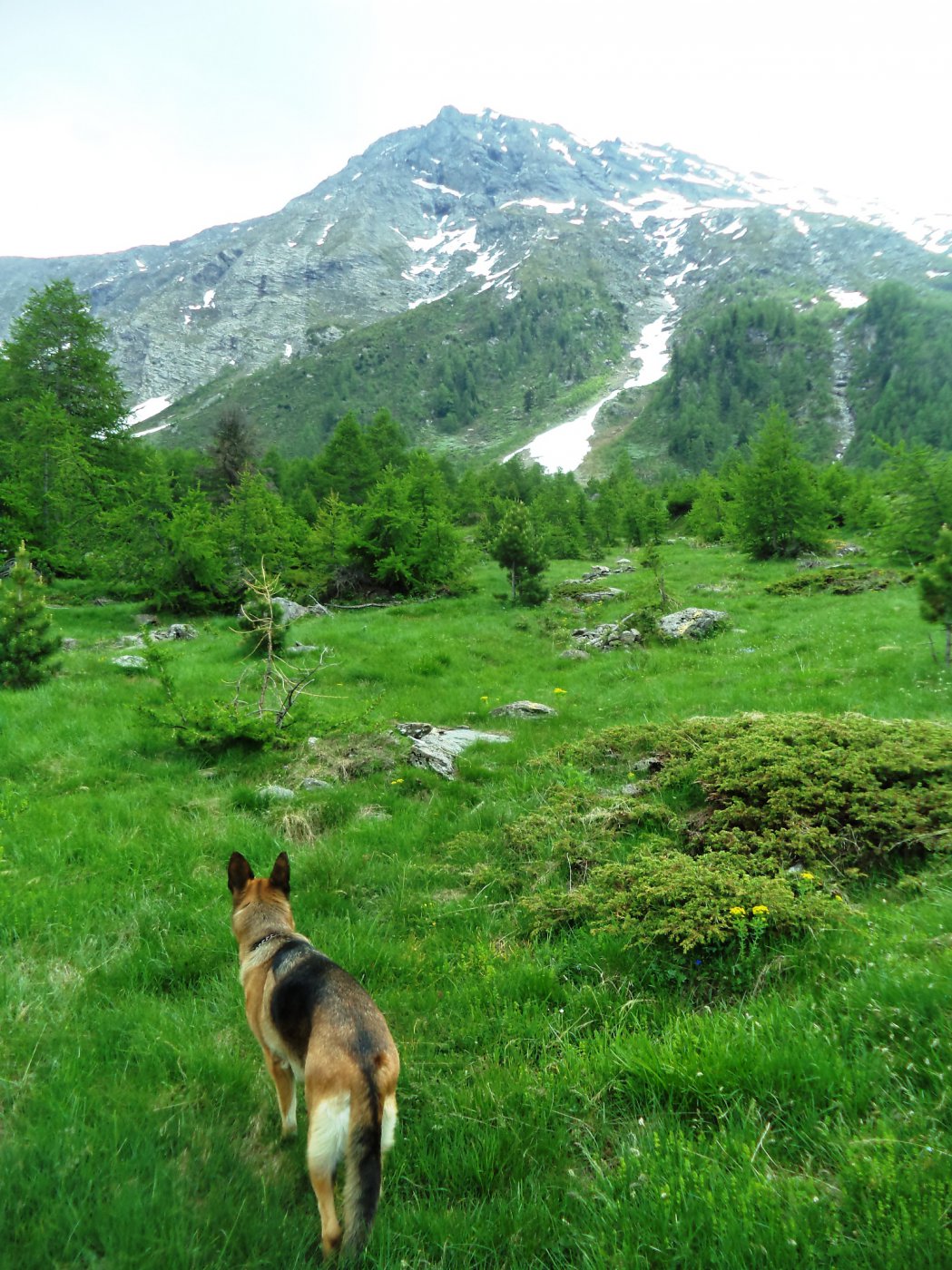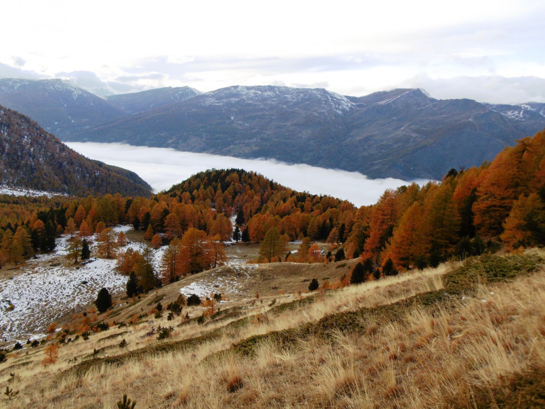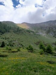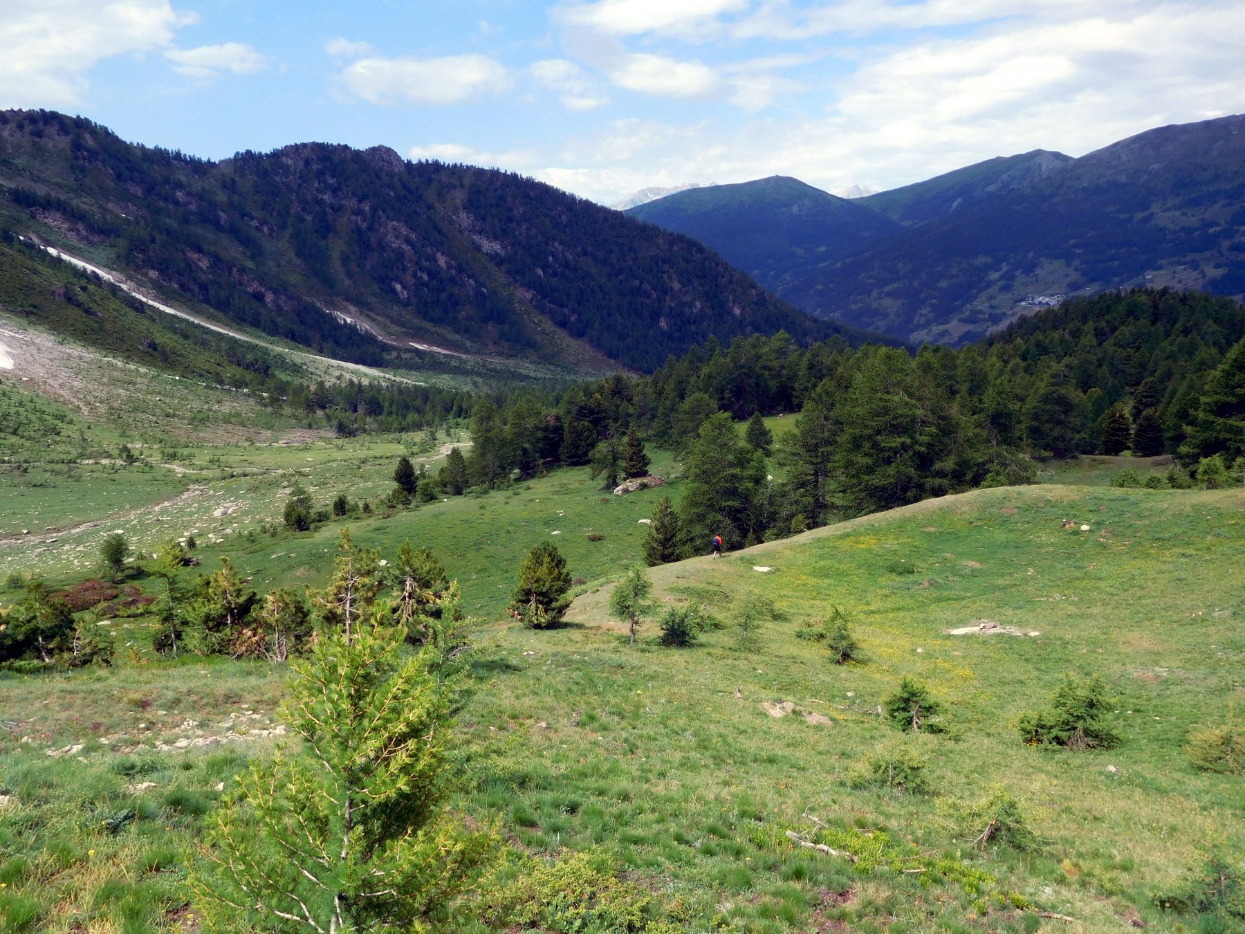 Dalla stradina che parte dietro la chiesa di Soucheres Basses si giunge ad un bivio, prendere il sentierino in salita a sx (cartello nuovo) e proseguire, senza possibilità di errore, lungo il bel bosco di larici. Giunti nel pianoro sotto l’Albergian a q.1950m il sentiero (sempre segnalato da bolli blu e giallo/rossi) devia verso sx e attraversa tutta la conca, fino ad incrociare la poderale che sale da Fraisse alla baita Ambrogio.