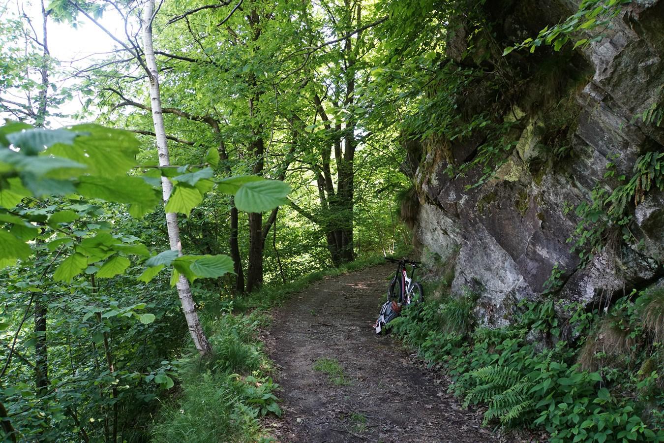 Tutto il tracciato è su strade sterrate , mulattiere e forestali con ottimo fondo .Le località sono molto suggestive e costeggiano agglomerati di vecchie baite . Al termine del percorso è d’obbligo visitare il Santuario dalle imponenti e sobrie forme alpine costruito a metà ottocento