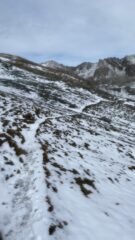 Nulla da segnalare nel versante italiano né nella discesa sui laghi di Roure. La salita dal grand Lac de Marinet fino al colle (da altezza 2500) neve ghiacciata e al colle circa 15 cm più fresca. Noi non avevamo i ramponi ma non sono stati necessari. Se gela molto raccomandati
