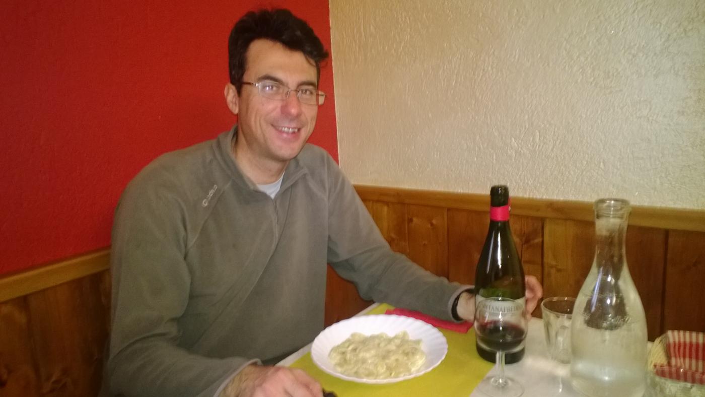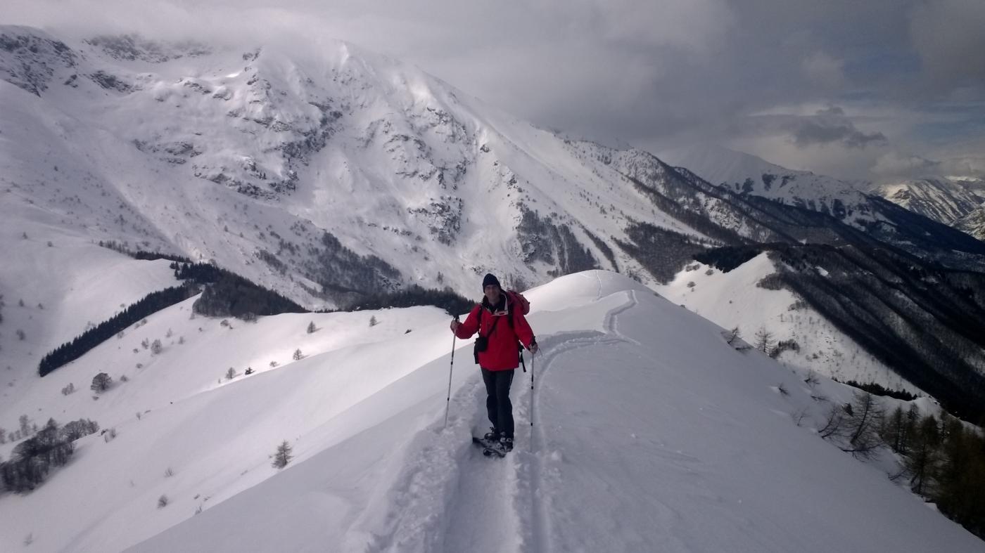 Con mio fratello abbiamo deciso di provare la Cialancia per una volta da questo versante , e direi che è risultata un’ottima scelta. Partiti presto siamo comodamente saliti al colle grazie alla traccia autostradale, e sempre su ottima traccia abbiamo raggiunto la cima. Usciti al colle sole pieno, due minuti dopo nevicava che era un piacere . Ritornato poi uno sprazzo di sole in cima con nuvole che però giravano parecchio , e allora giù a pranzare alla locanda dell’Olmo, con spettacolare concatenazione di antipasti , cruset e barbera. In definitiva ottima giornata anche se purtroppo senza troppo panorama , ma va bene così, ci accontentiamo di aver visitato un posto nuovo . Un saluto al gruppo di compagni di racchette saliti da Desertetto e , come sempre … un saluto e buone gite a tutti.