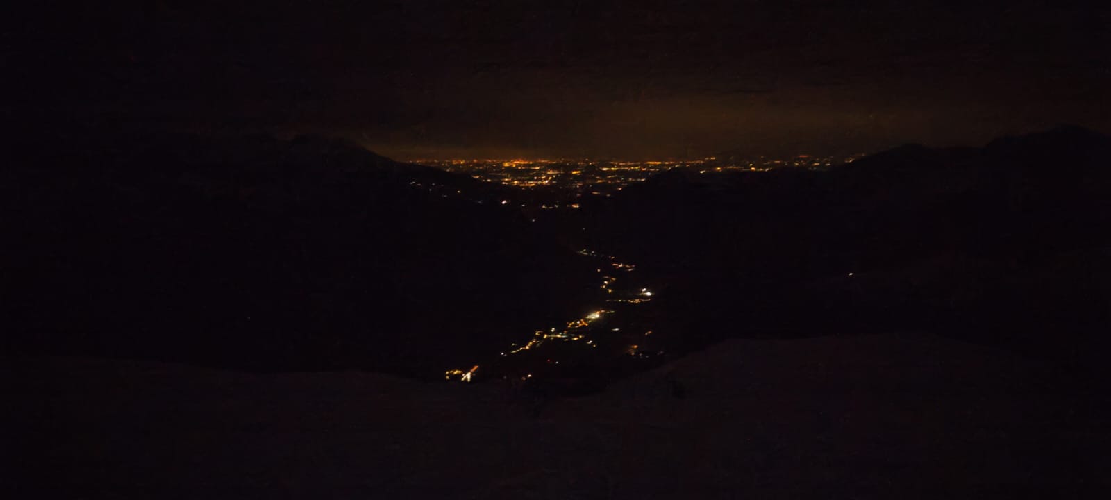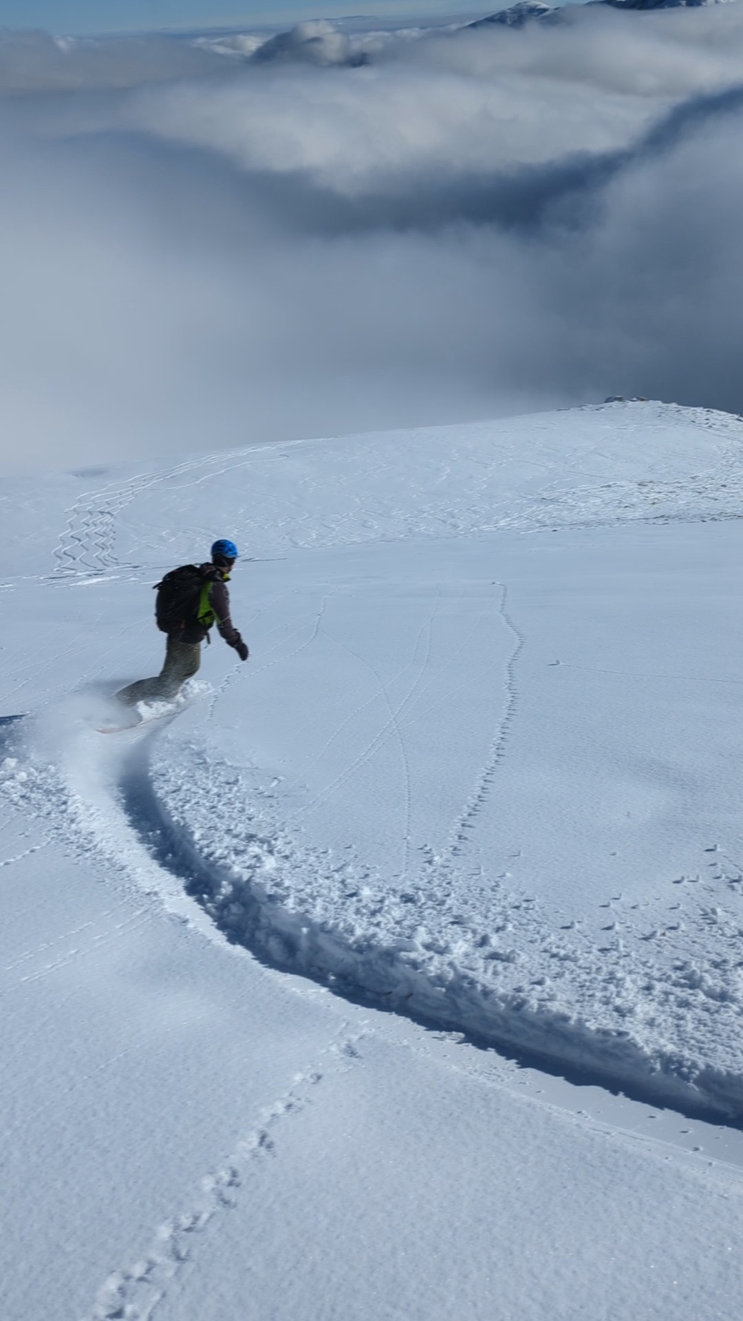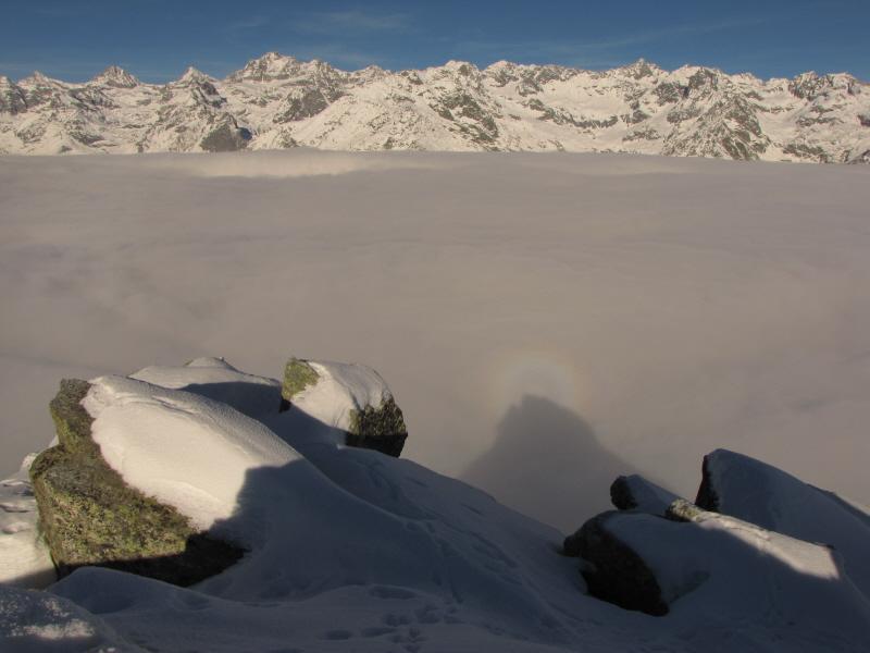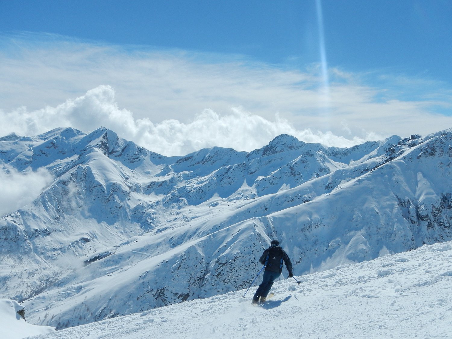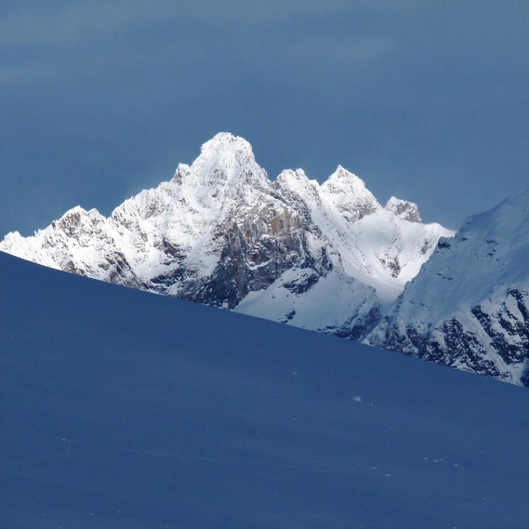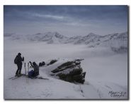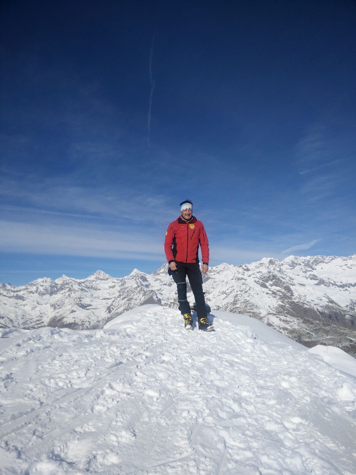 Dal piazzale seguire la pista di discesa più a destra e meno ripida, facendo attenzione agli sciatori.