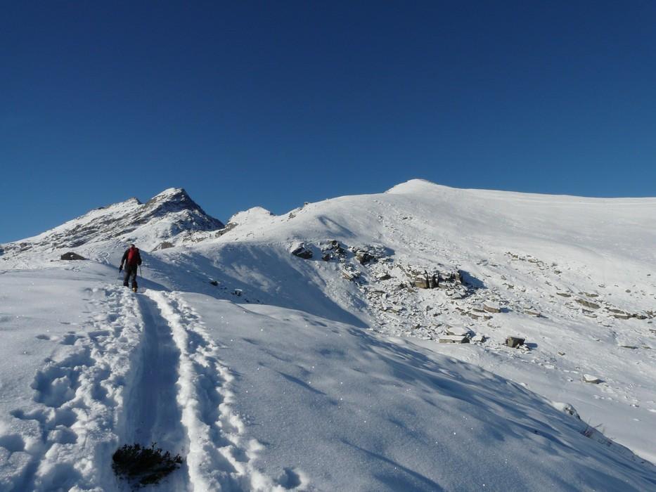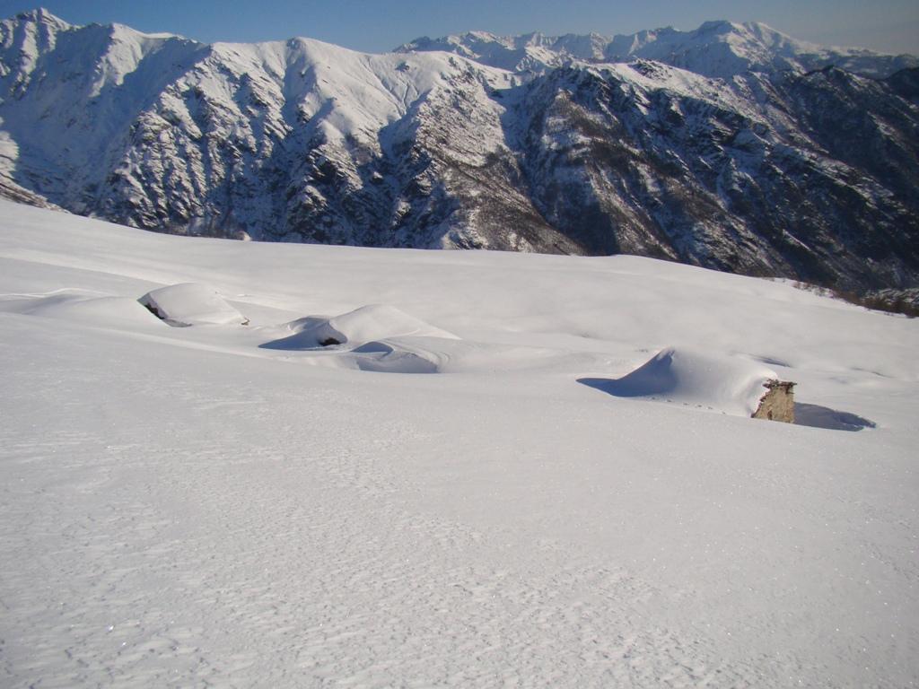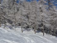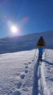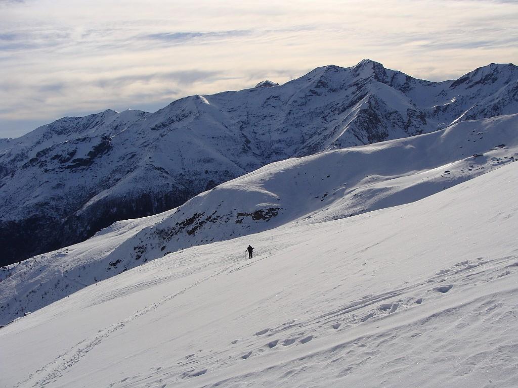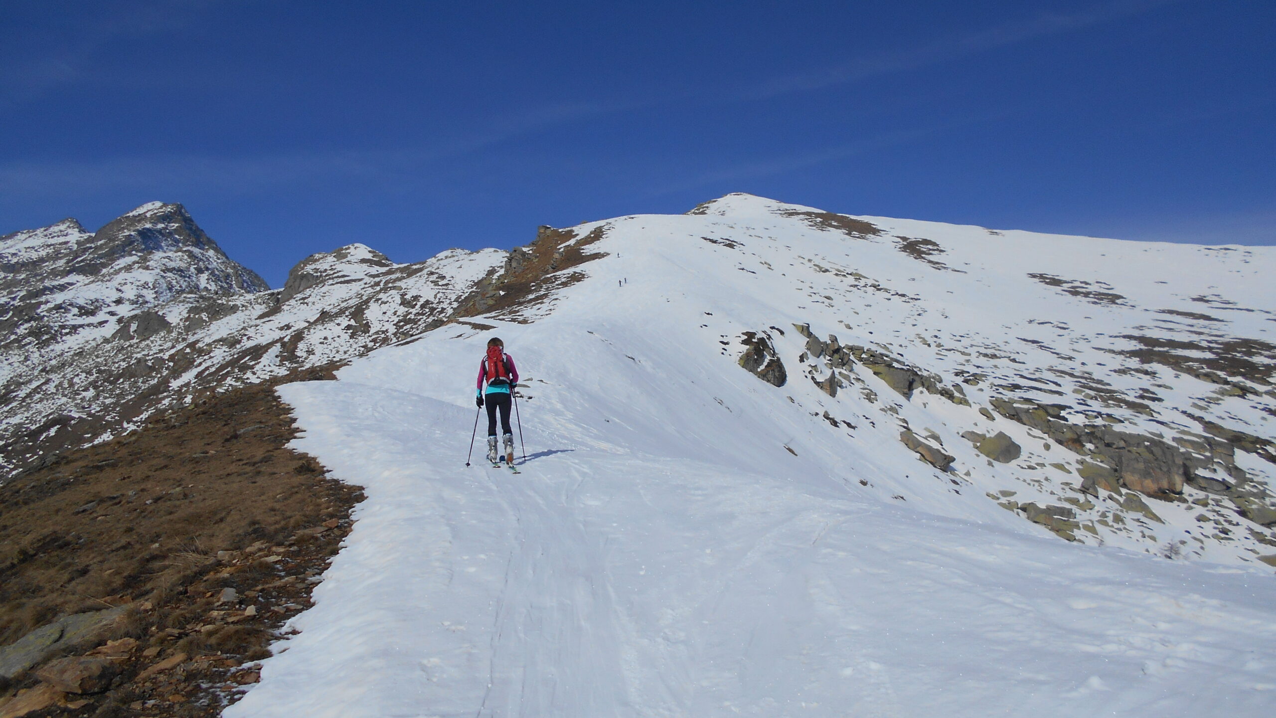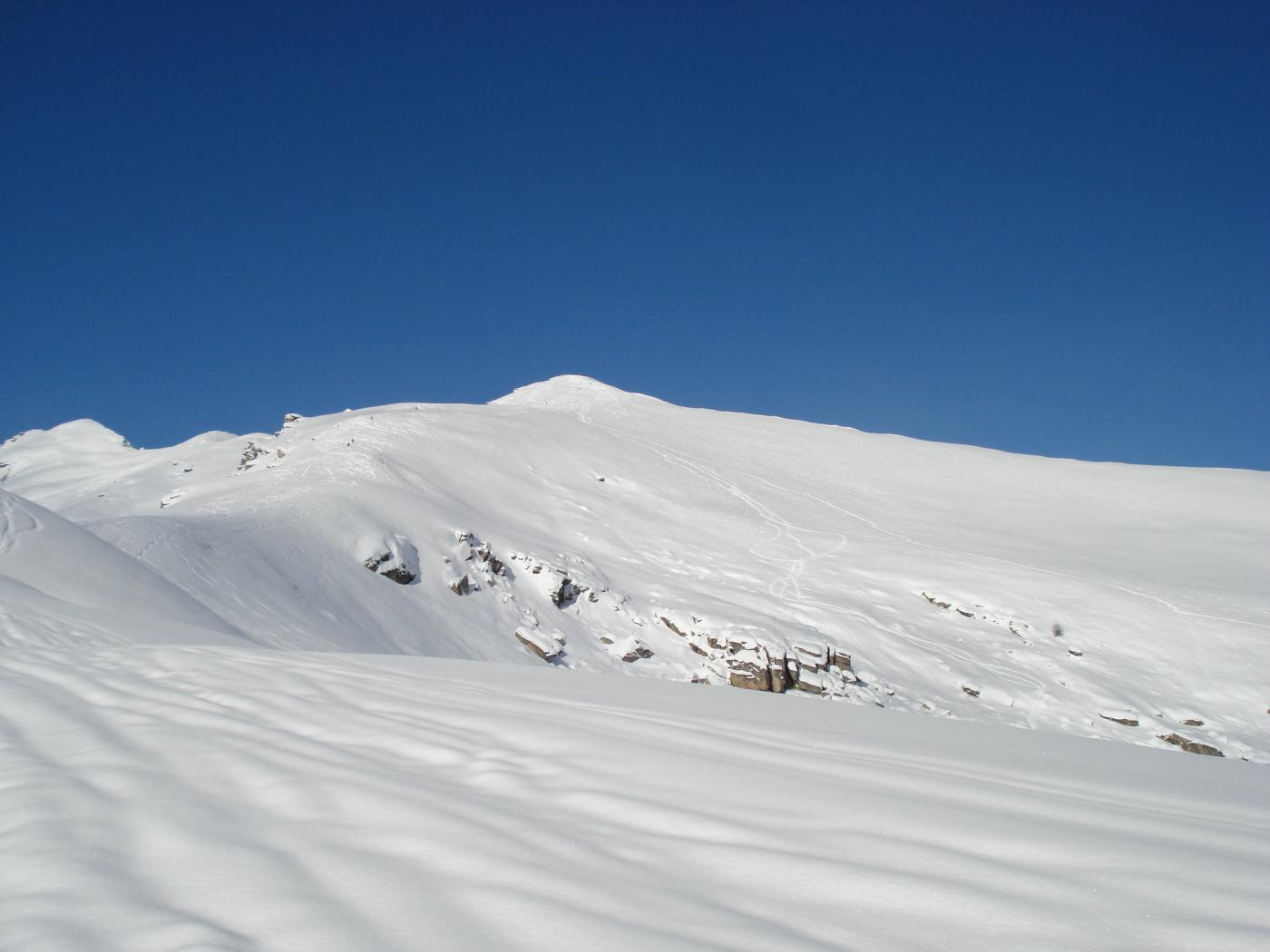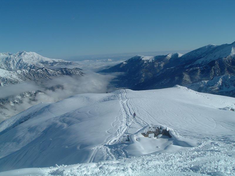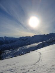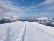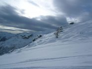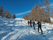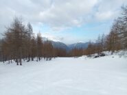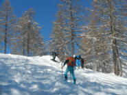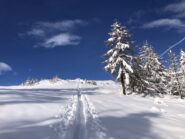 Si prosegue poi nel rado bosco e con diagonale verso destra si guadagna l’ampia dorsale che si segue costeggiando prima i vecchio skilift.