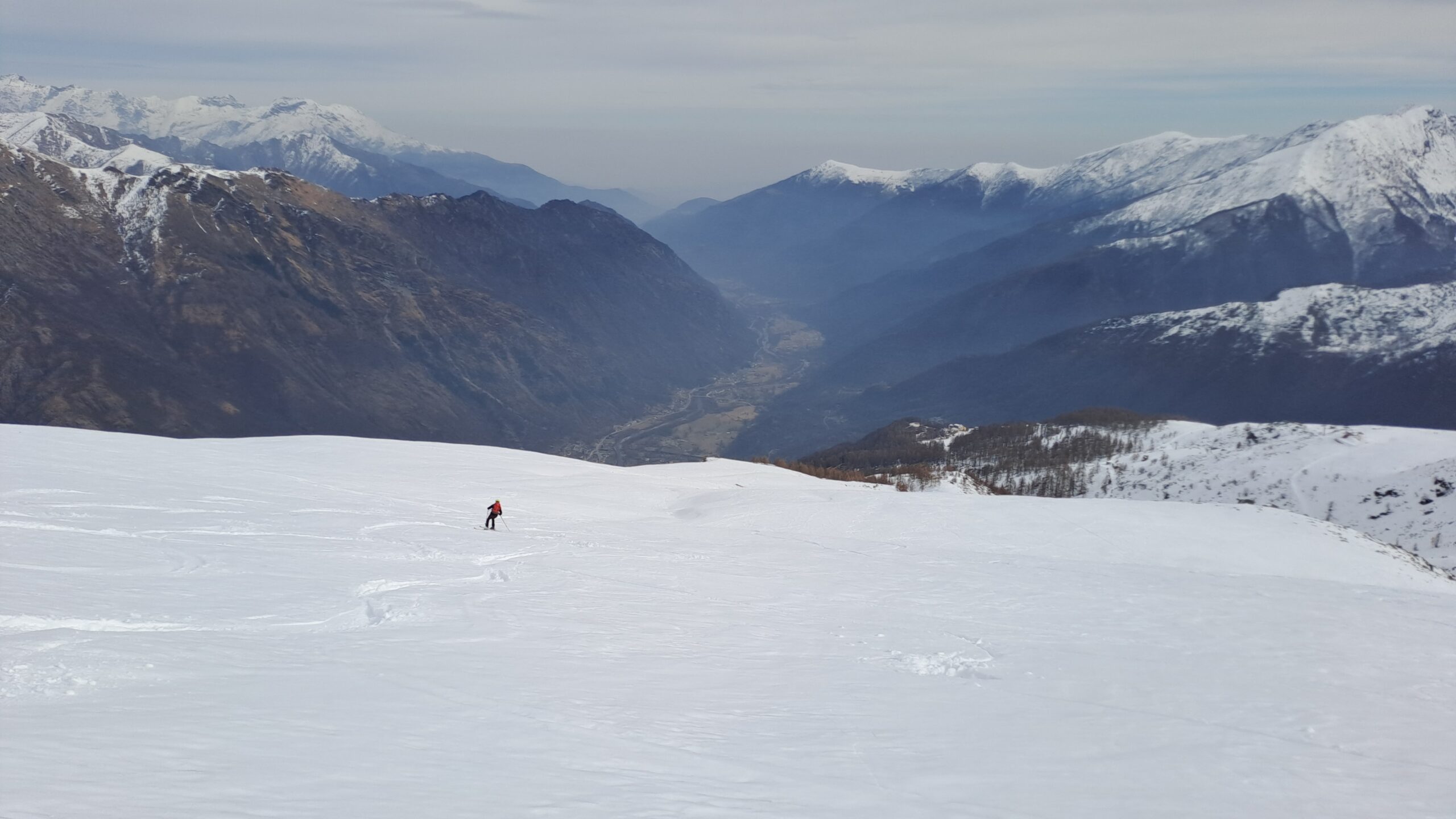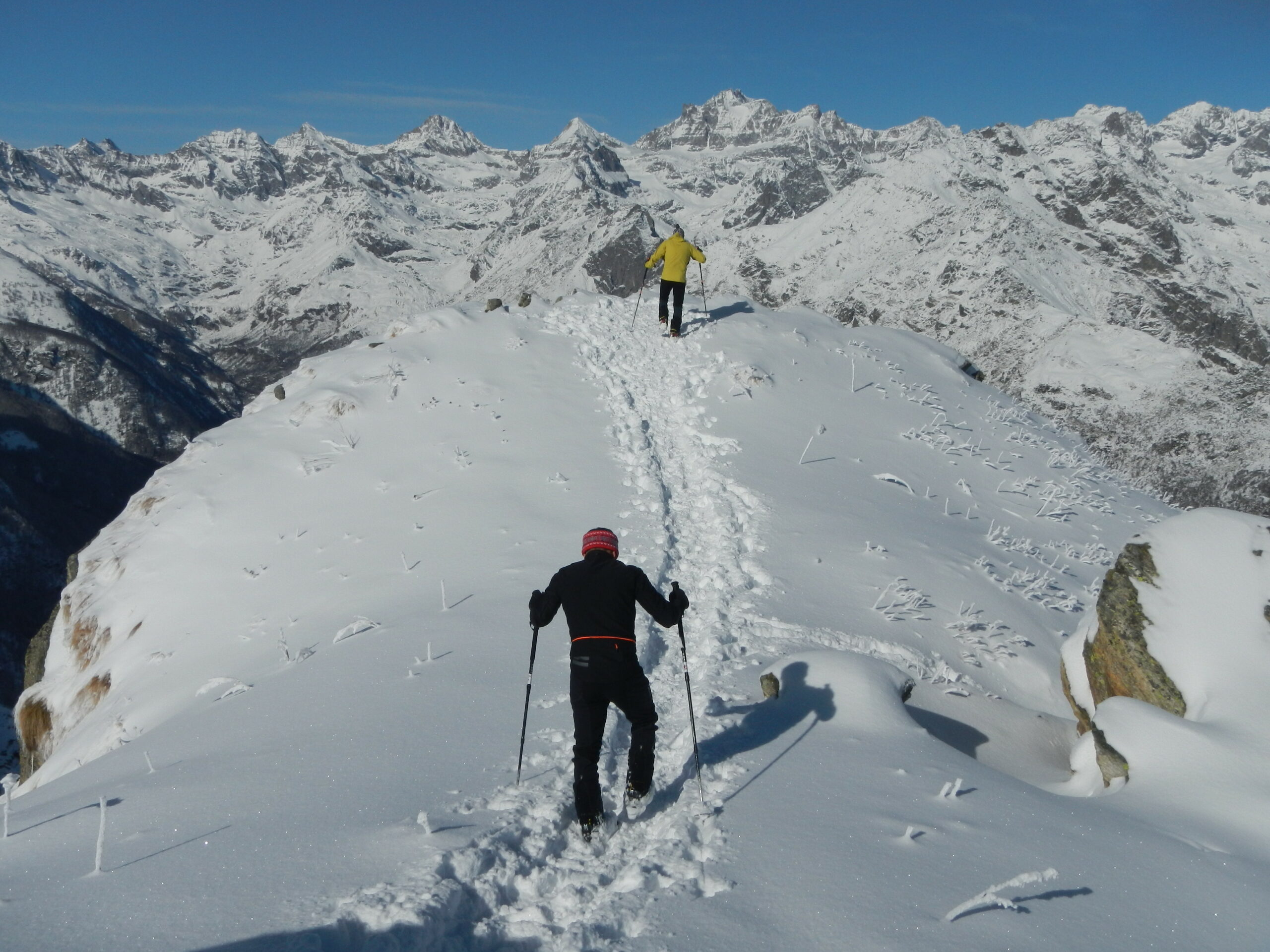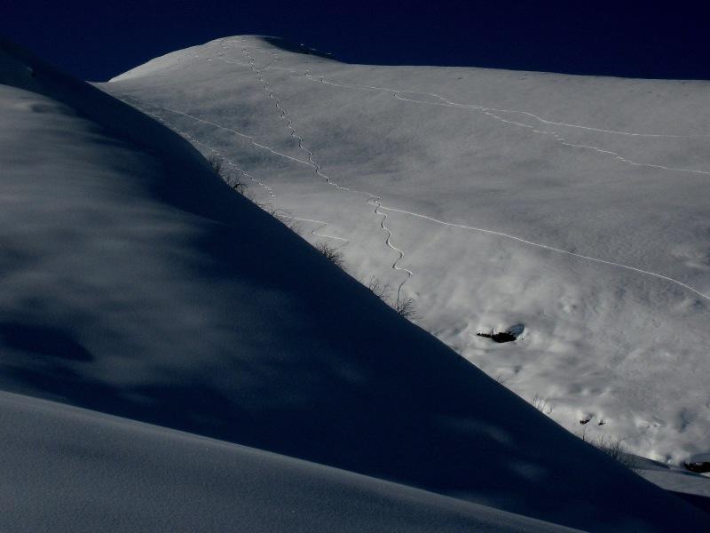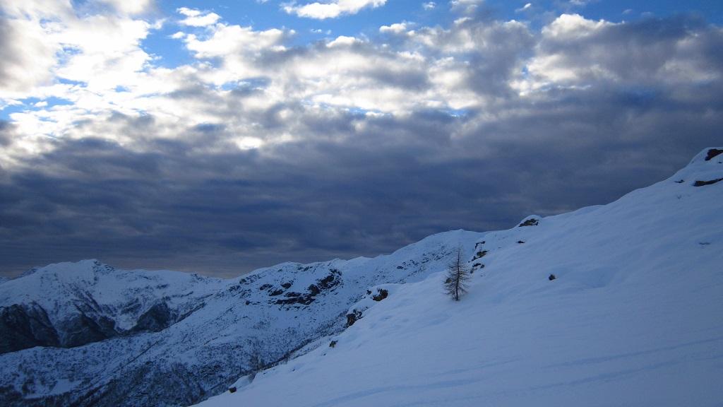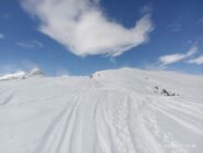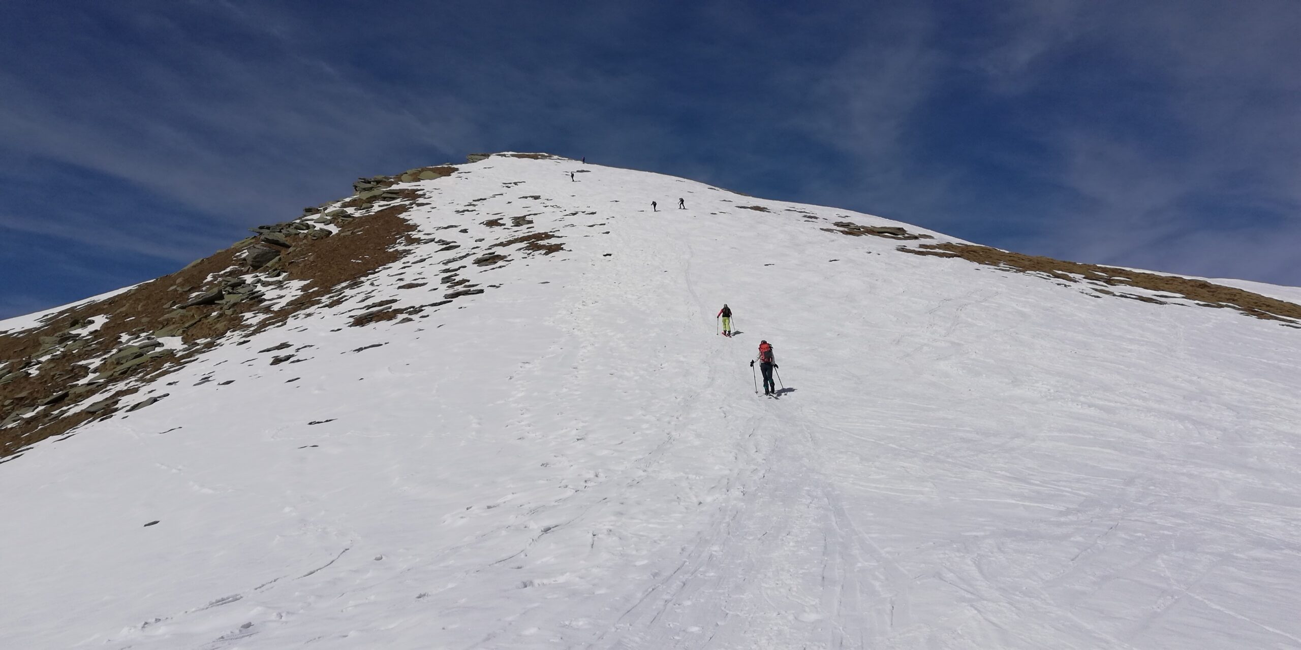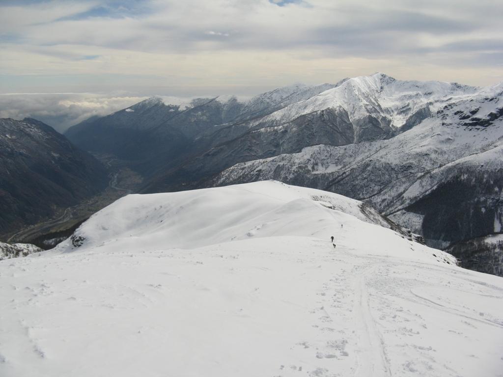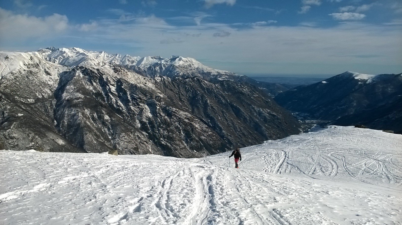 Si prosegue poi nel rado bosco e con diagonale verso destra si guadagna l’ampia dorsale che si segue costeggiando prima i vecchio skilift.