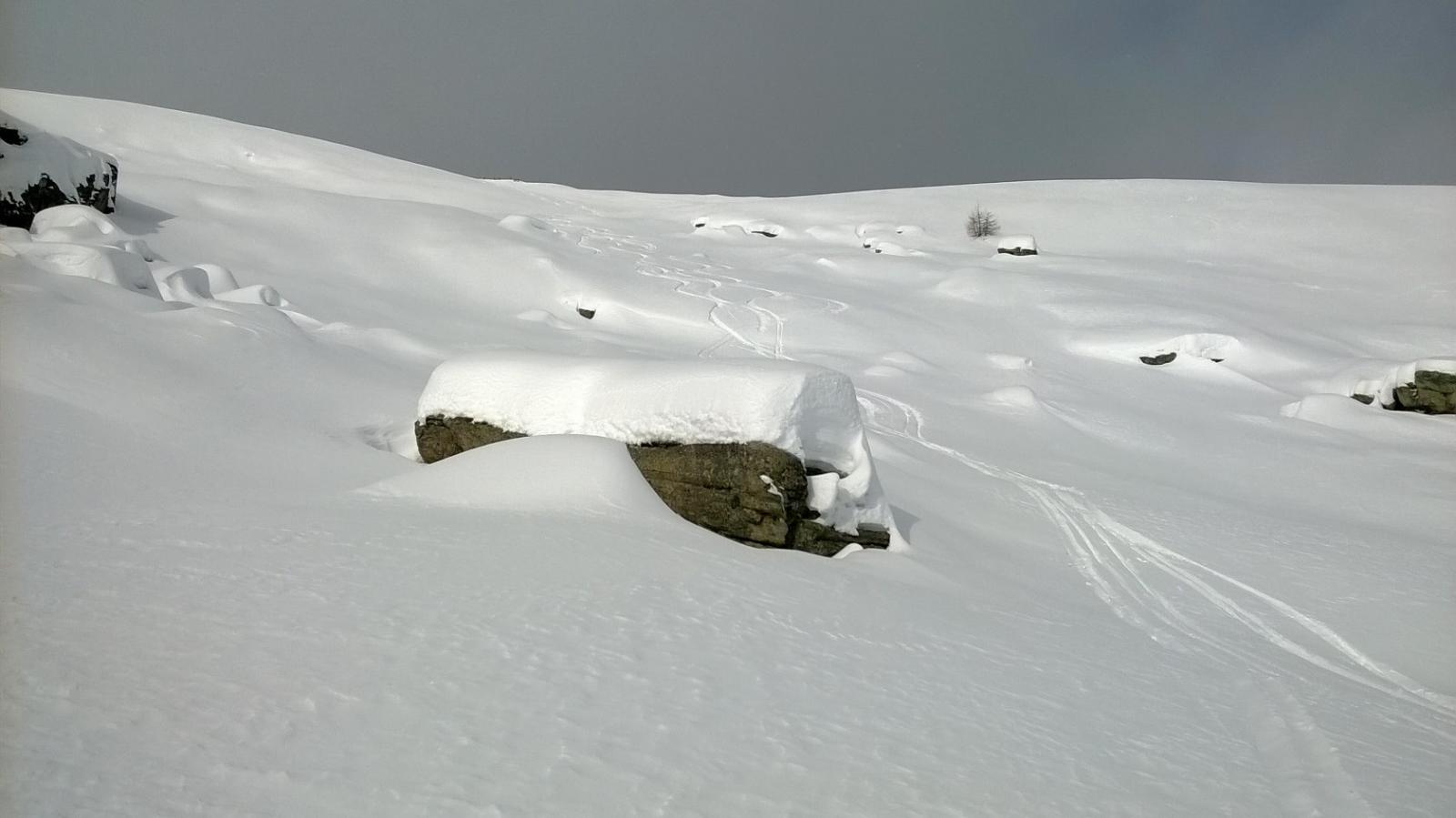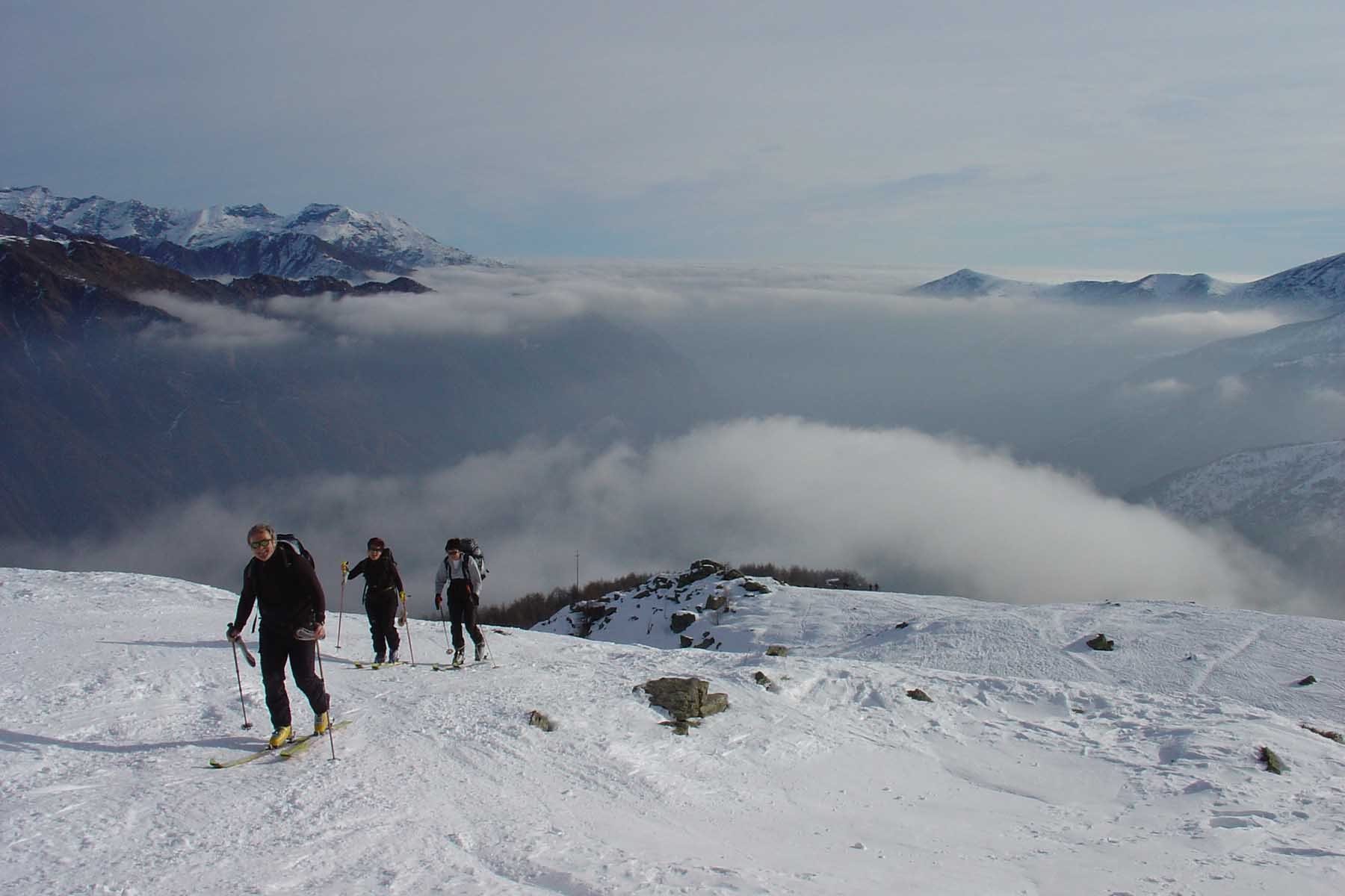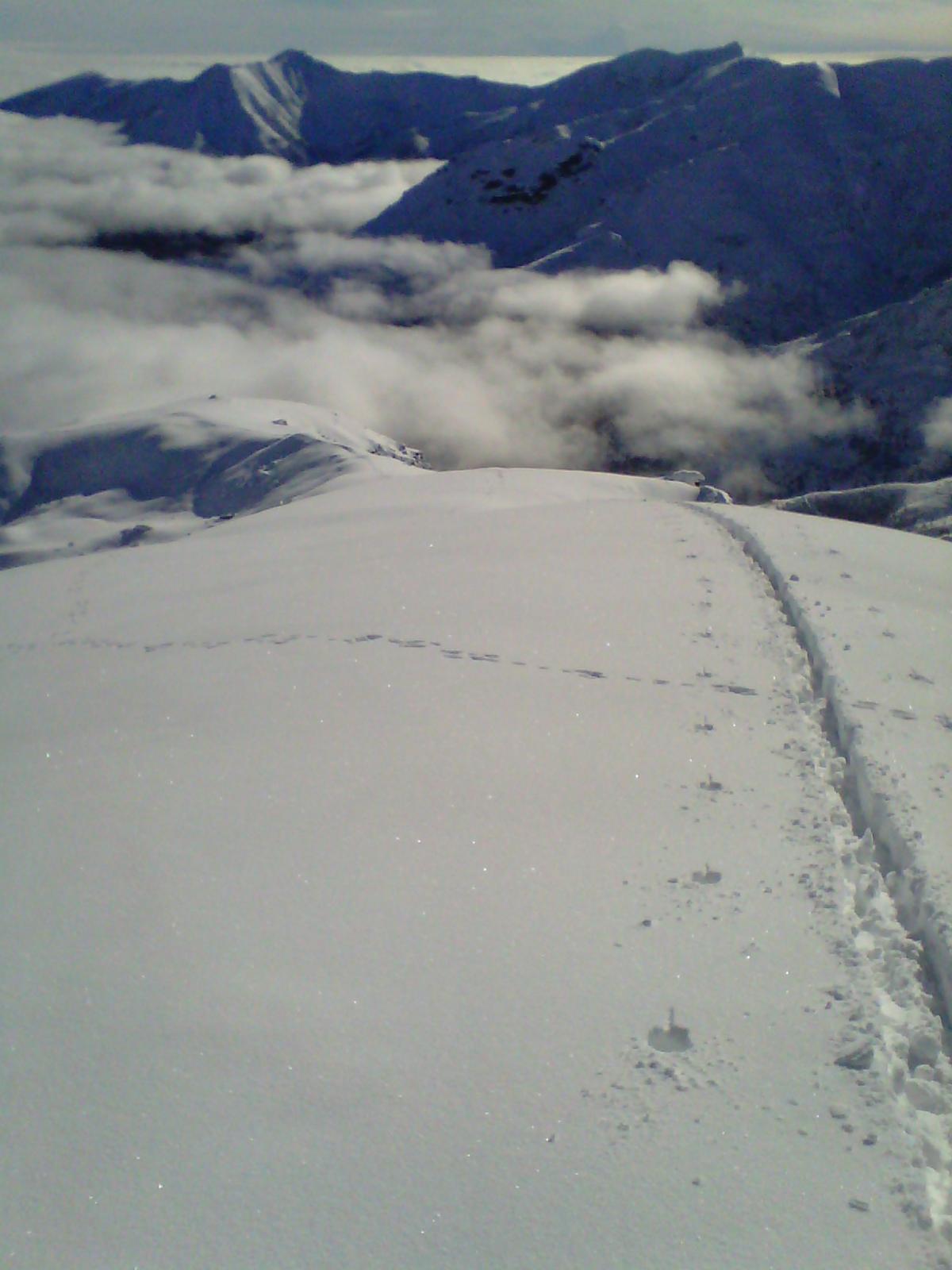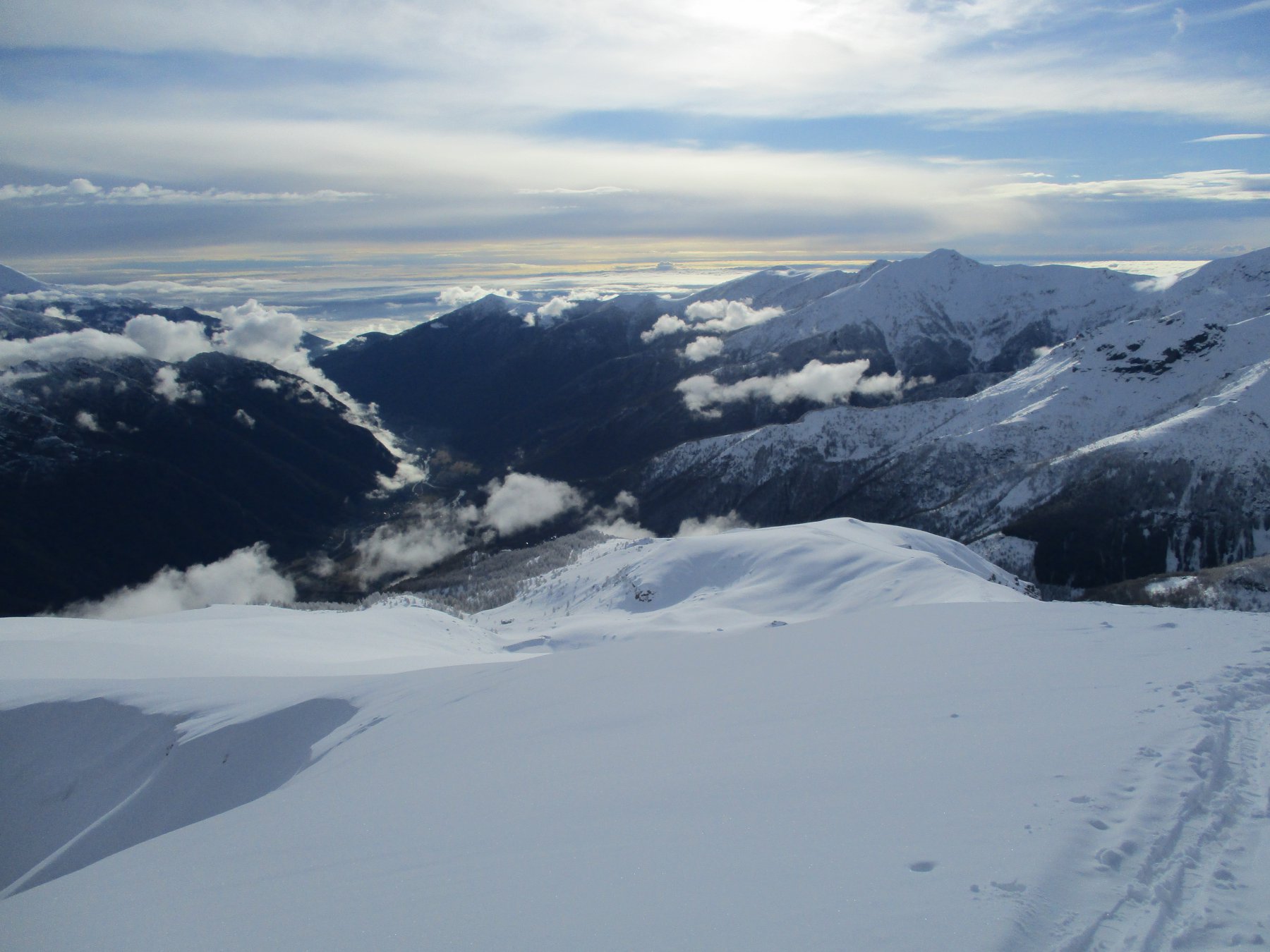 Si prosegue poi nel rado bosco e con diagonale verso destra si guadagna l’ampia dorsale che si segue costeggiando prima i vecchio skilift.