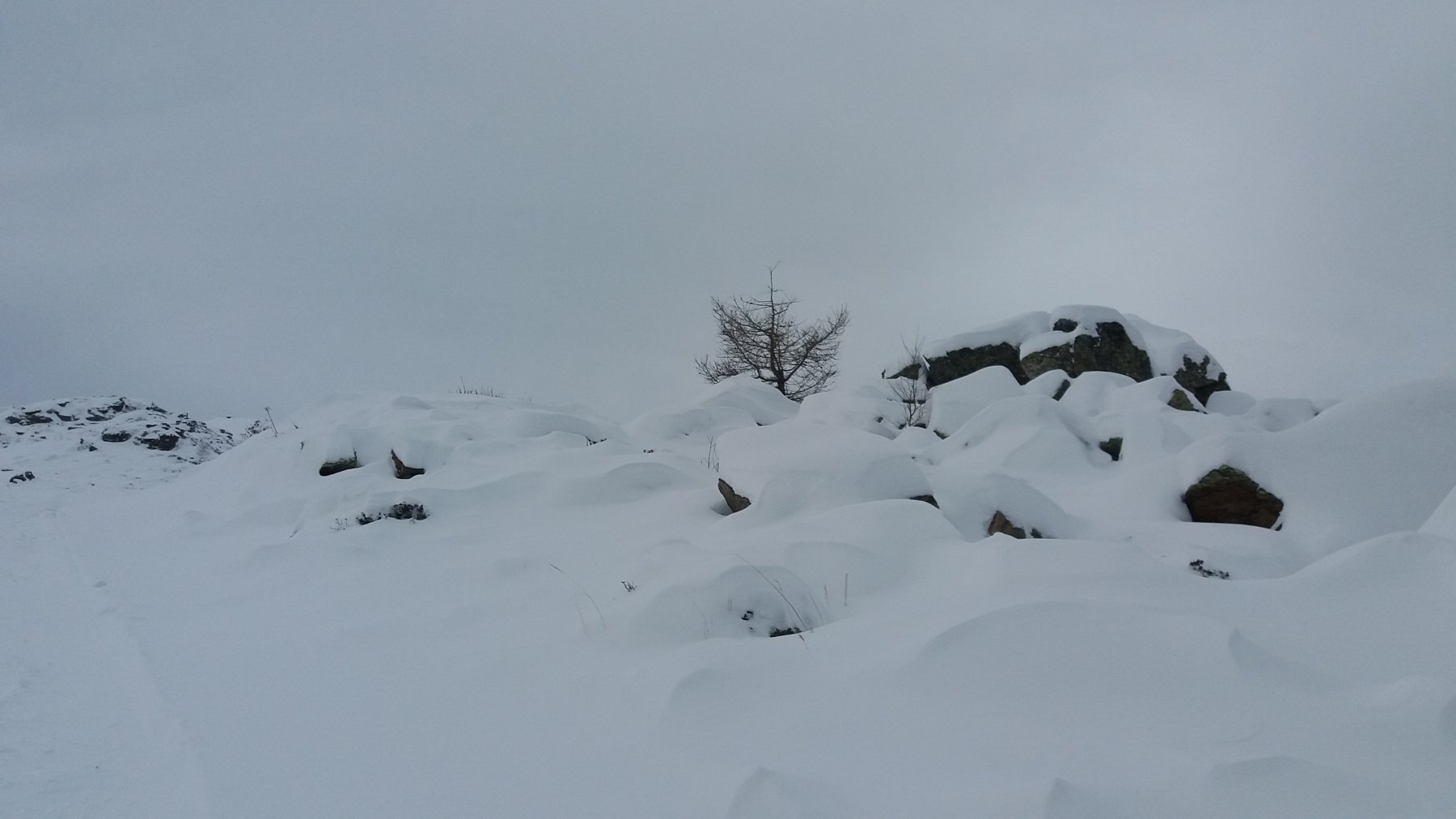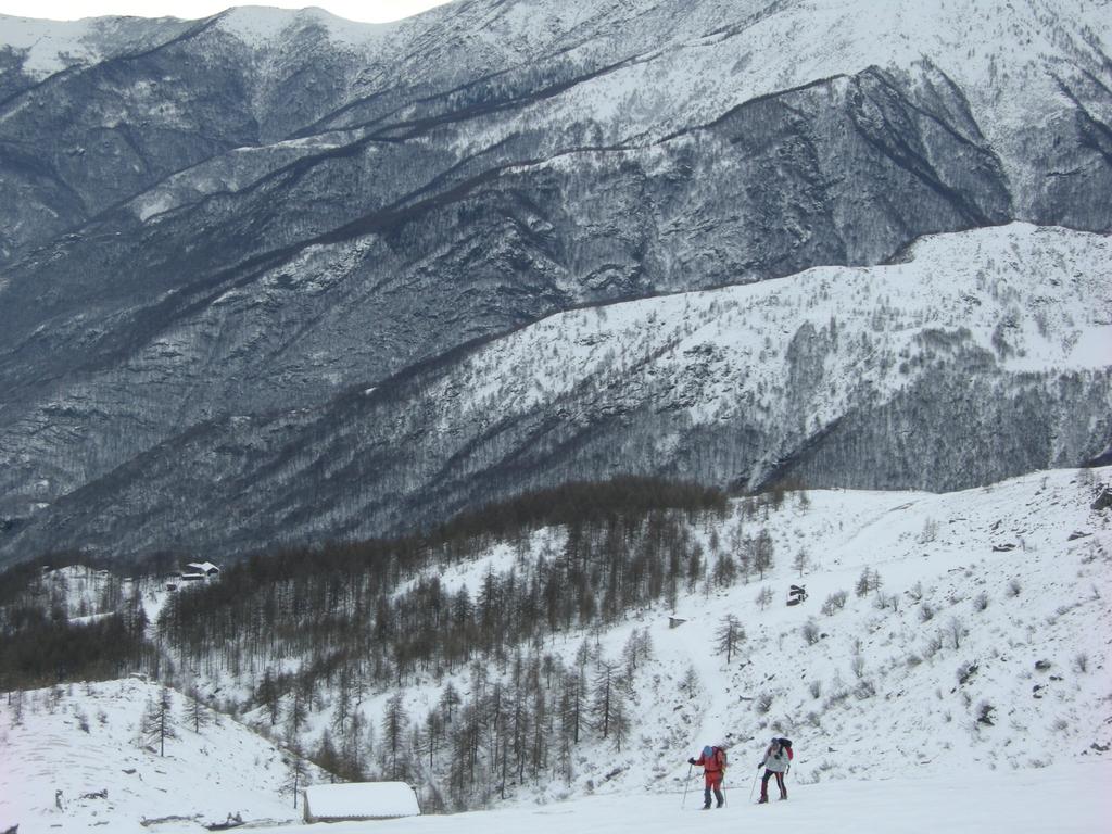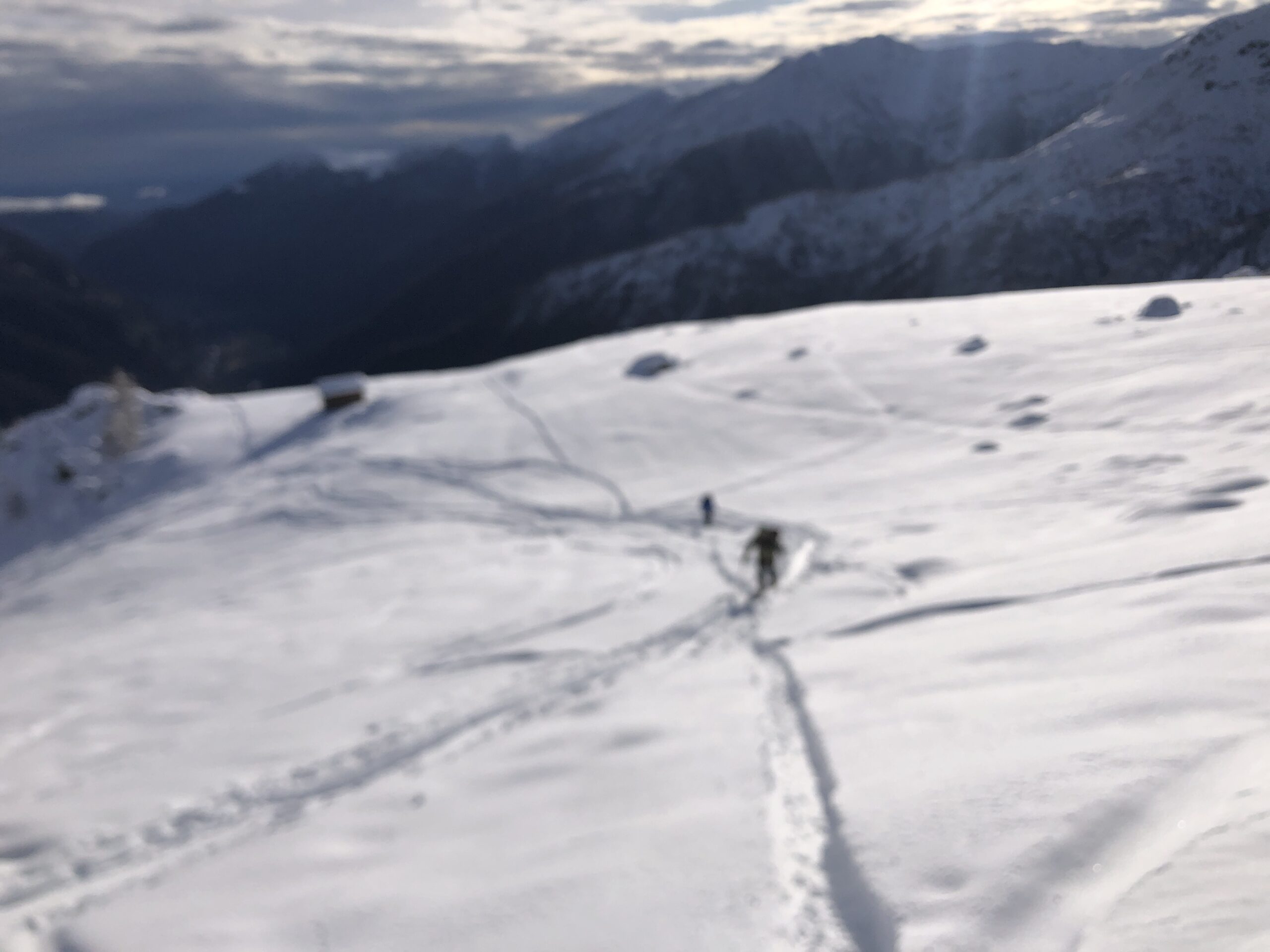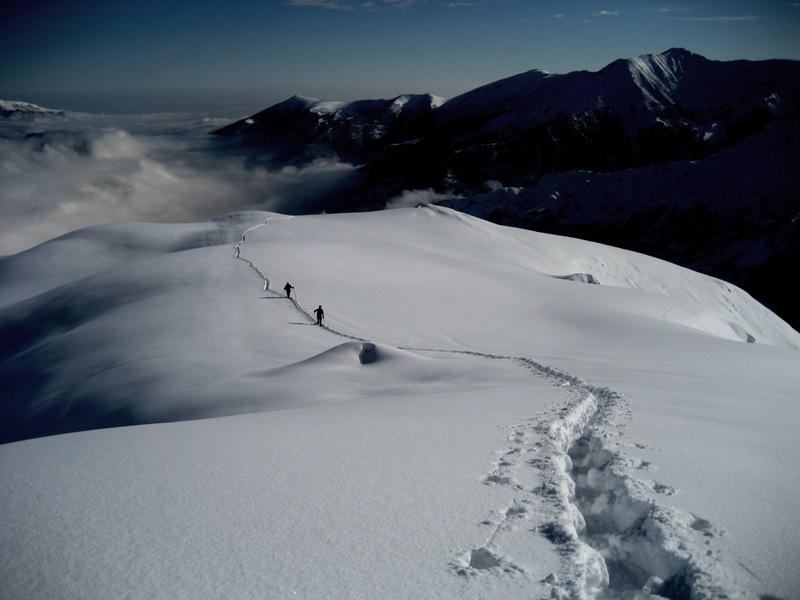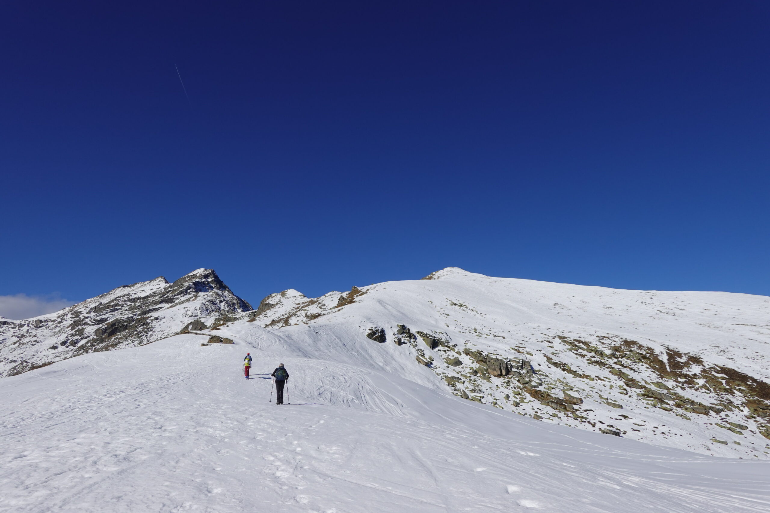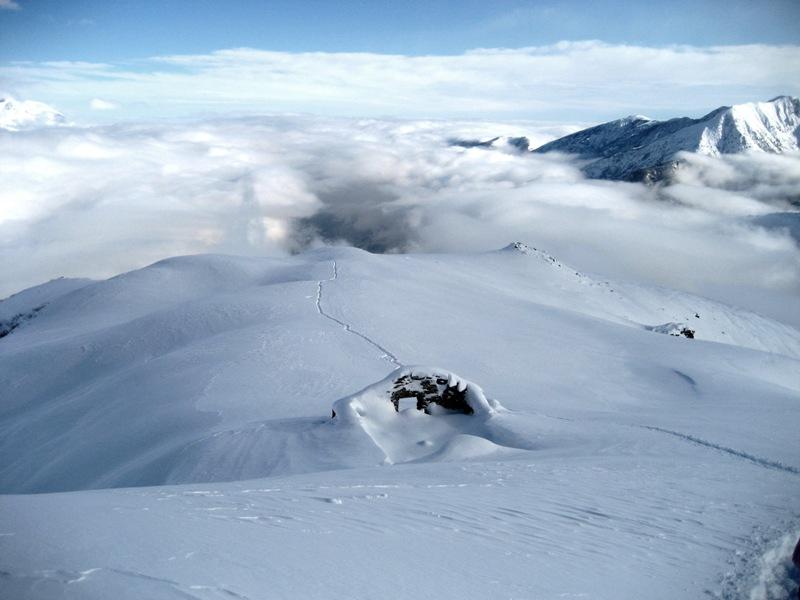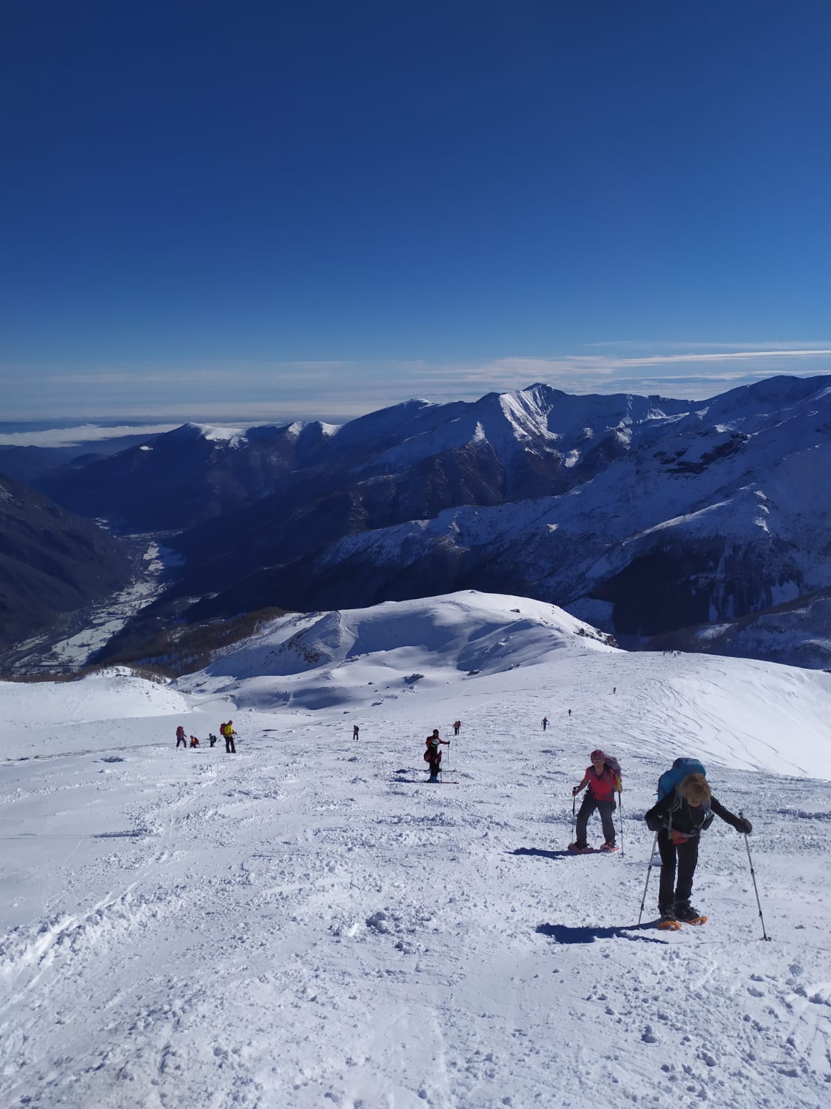 Si prosegue poi nel rado bosco e con diagonale verso destra si guadagna l’ampia dorsale che si segue costeggiando prima i vecchio skilift.