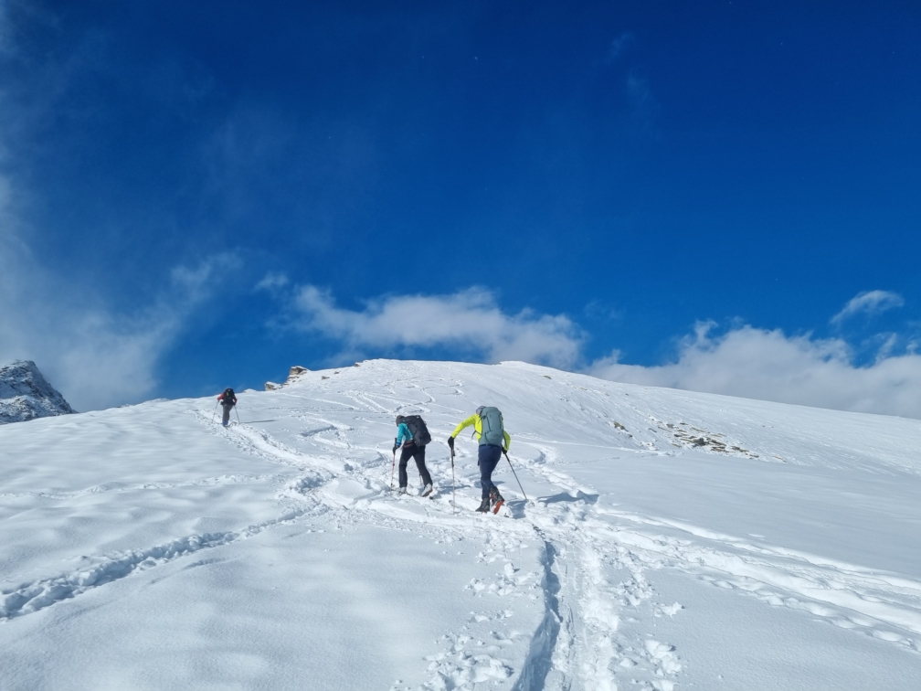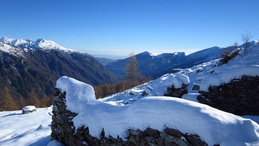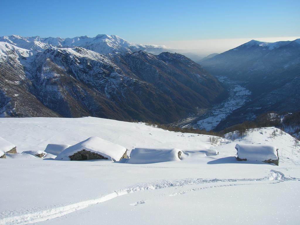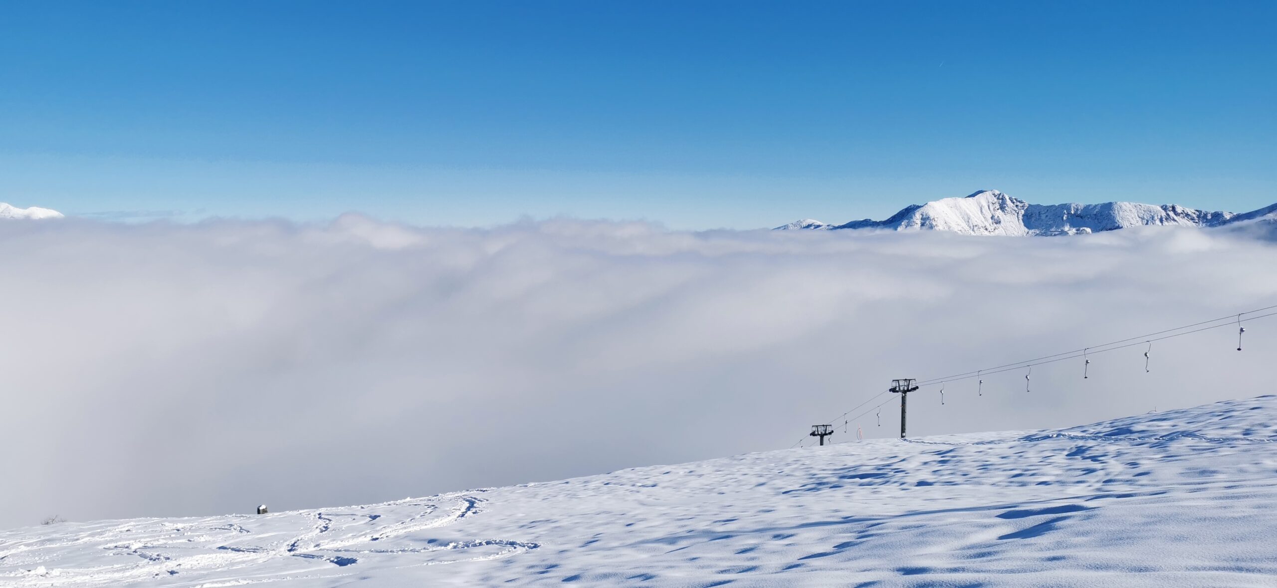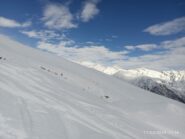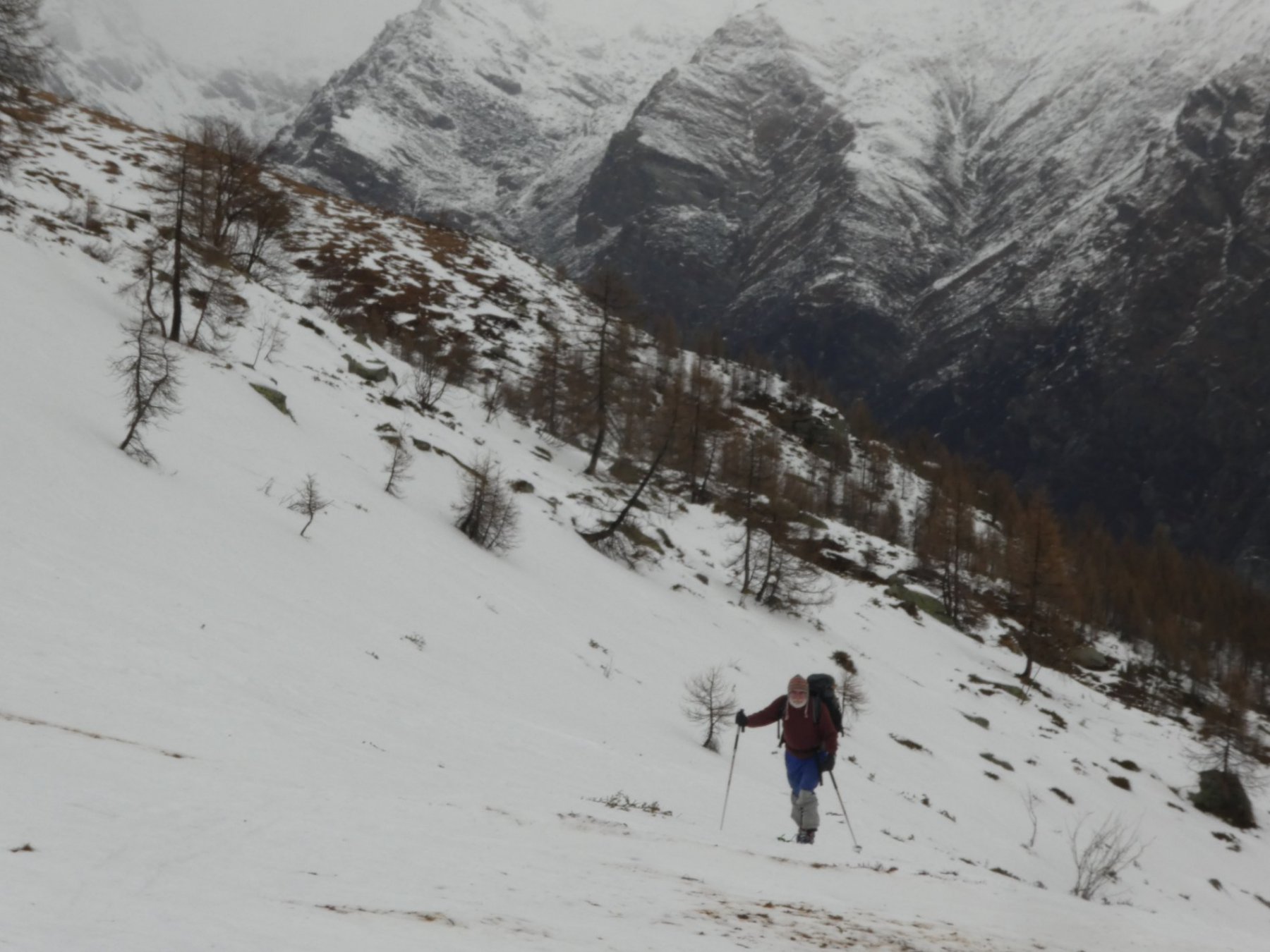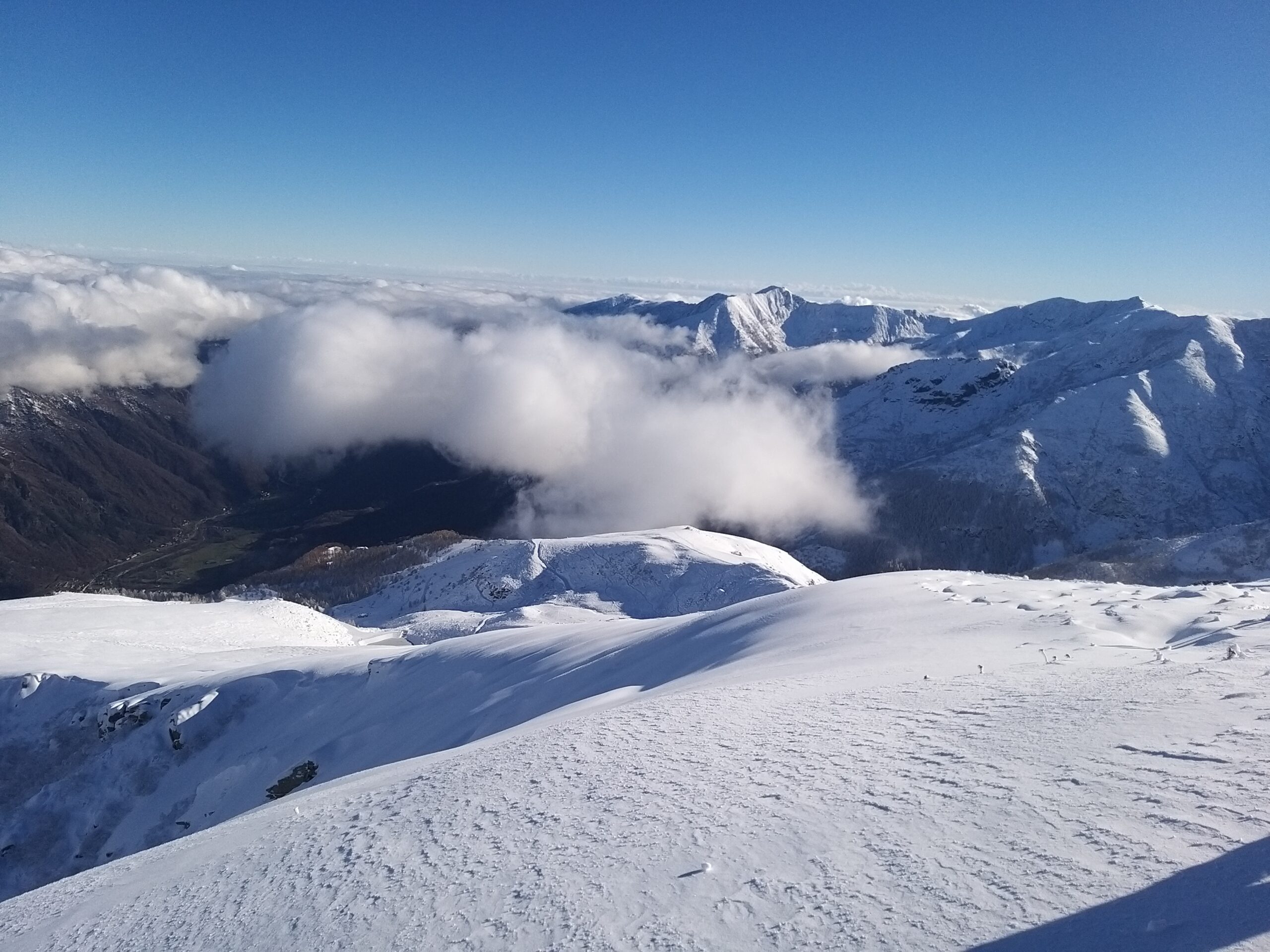 Si prosegue poi nel rado bosco e con diagonale verso destra si guadagna l’ampia dorsale che si segue costeggiando prima i vecchio skilift.