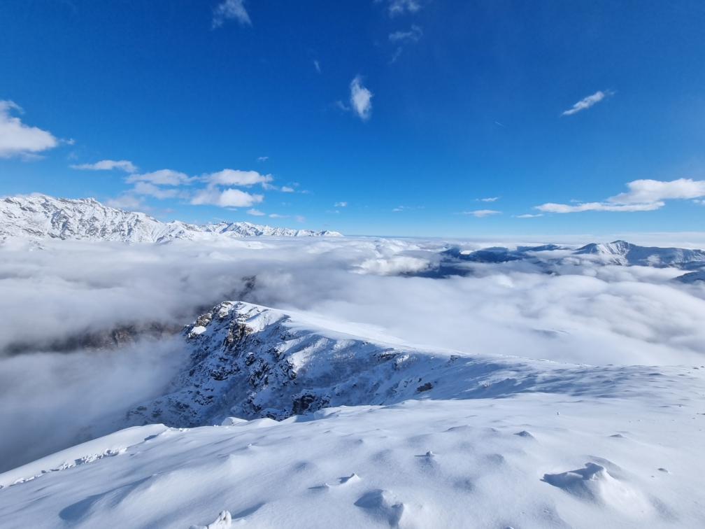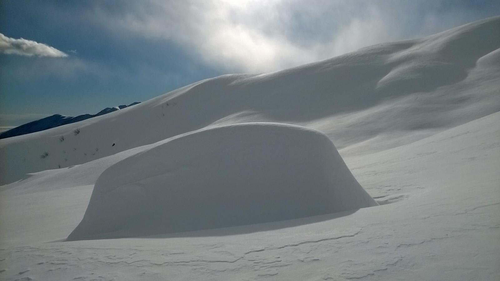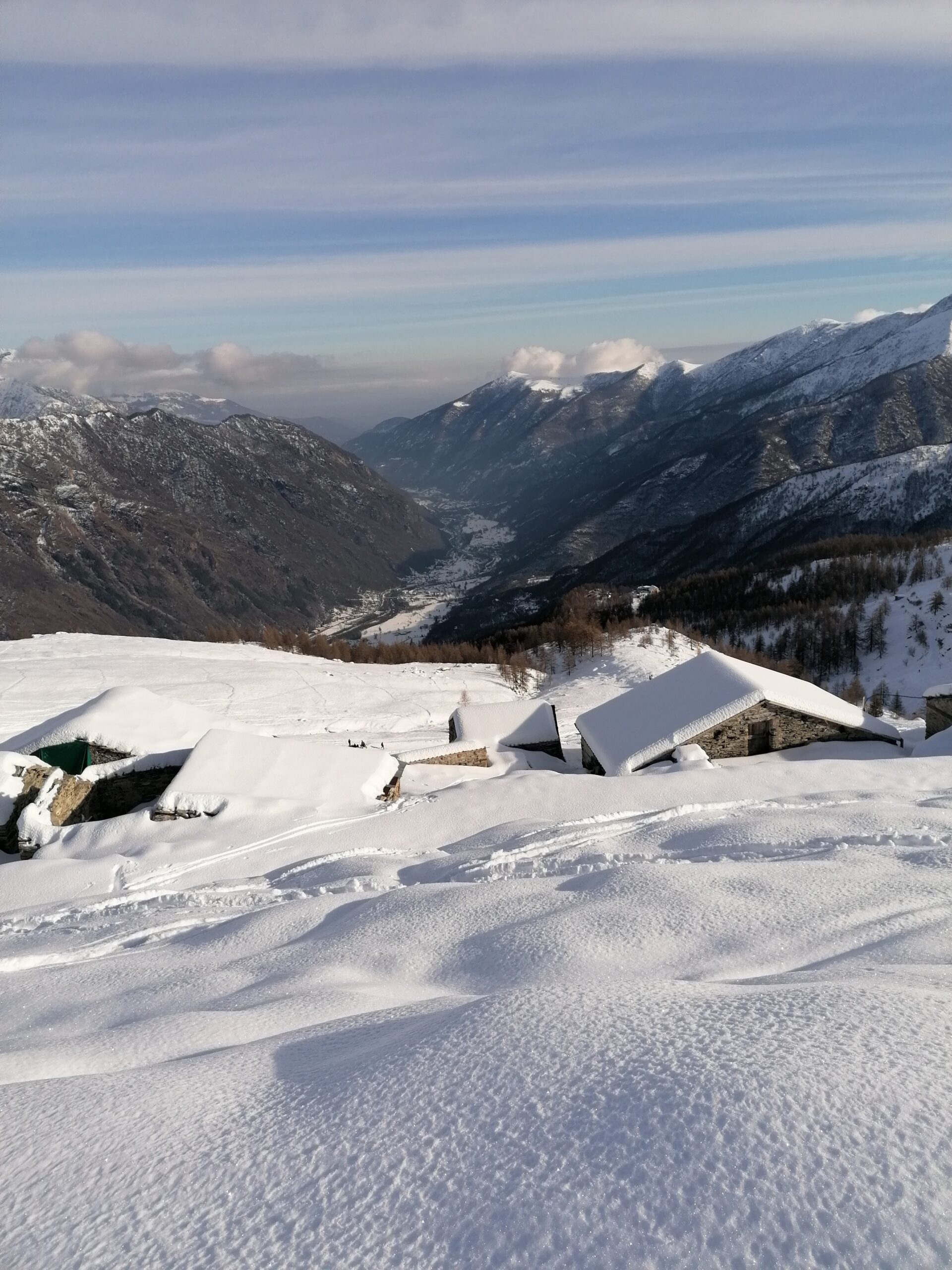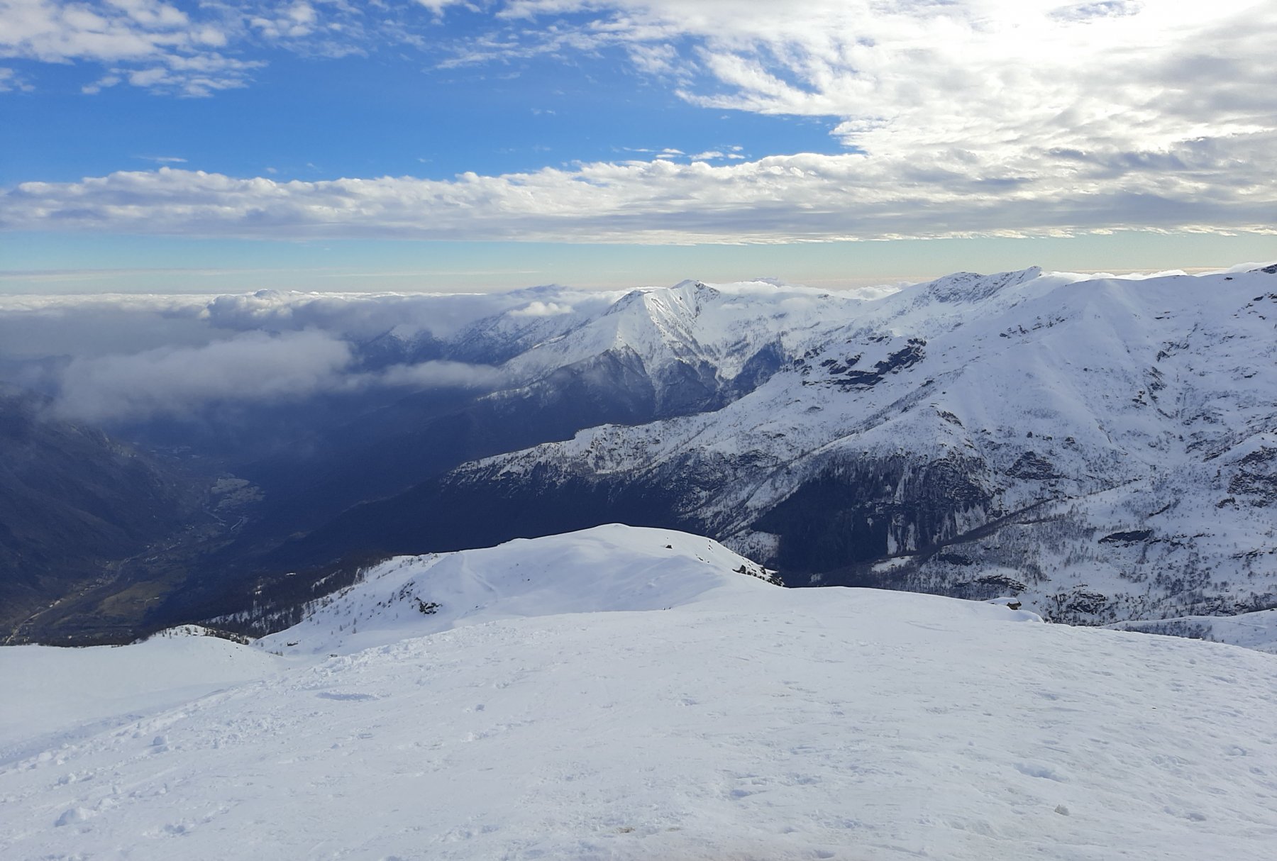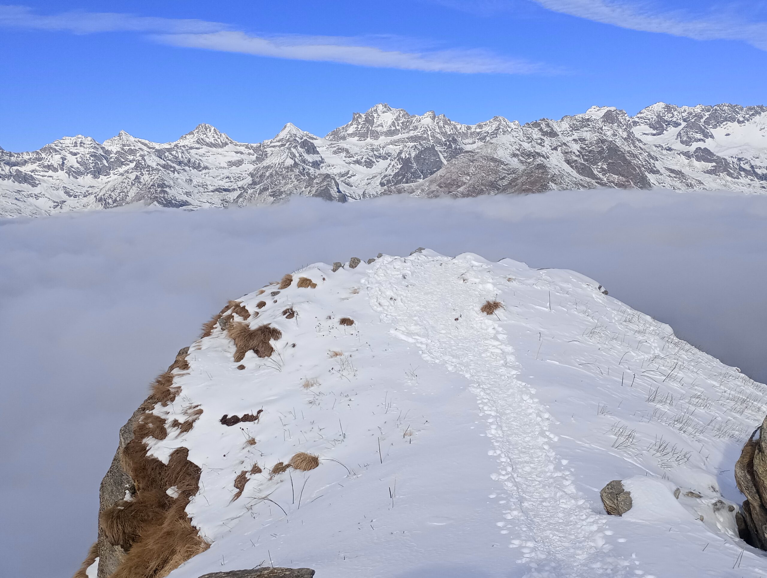 Si prosegue poi nel rado bosco e con diagonale verso destra si guadagna l’ampia dorsale che si segue costeggiando prima i vecchio skilift.