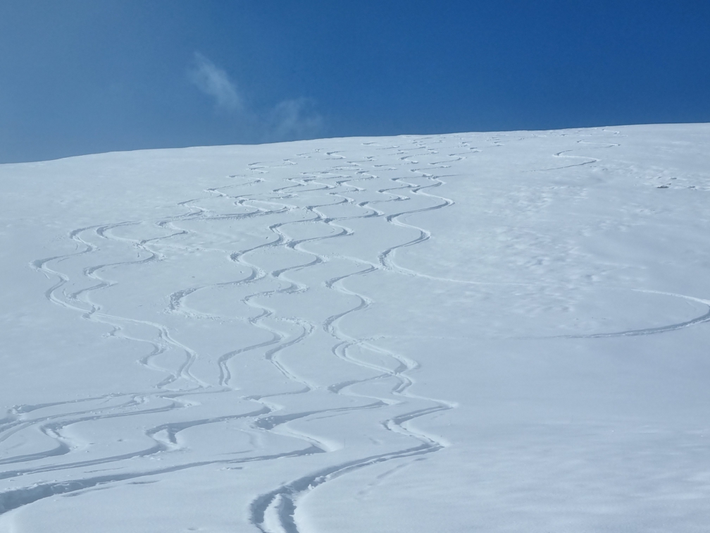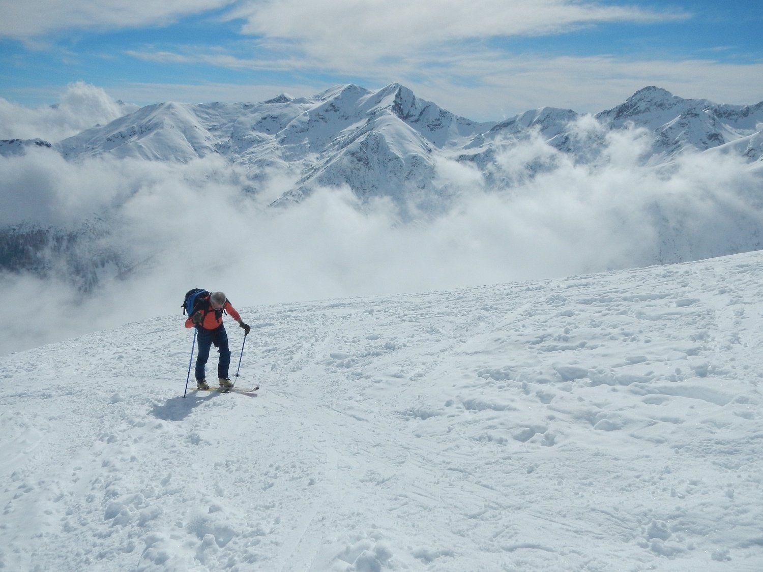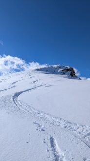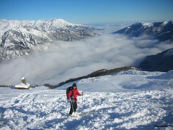 Oltre che la via di salita si può scendere sui bei pendi sotto la vetta per poi riprendere più in basso la via di salita risalendo qualche decina di metri a scaletta lungo la strada poderale.