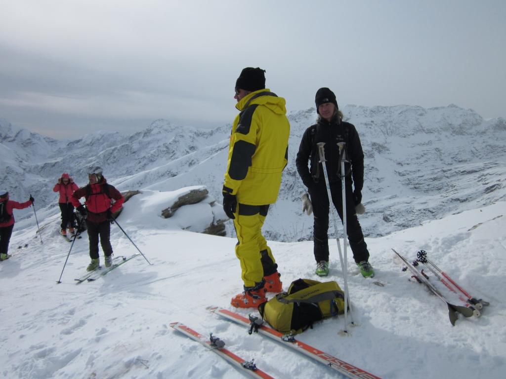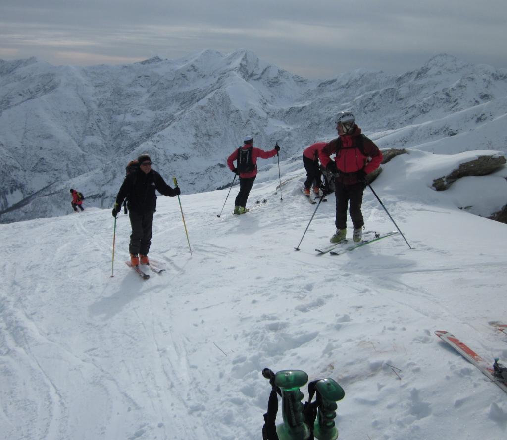 Lato negativo: visibilità non ottimale per sole coperto da nuvole; discesa sul lato sinistro dove abbiamo dovuto, inevitabilmente, scendere raschiando parecchie volte su pietre non visibili per mancanza di fondo. Romeo, con i suoi sci nuovi ne sa qualcosa….