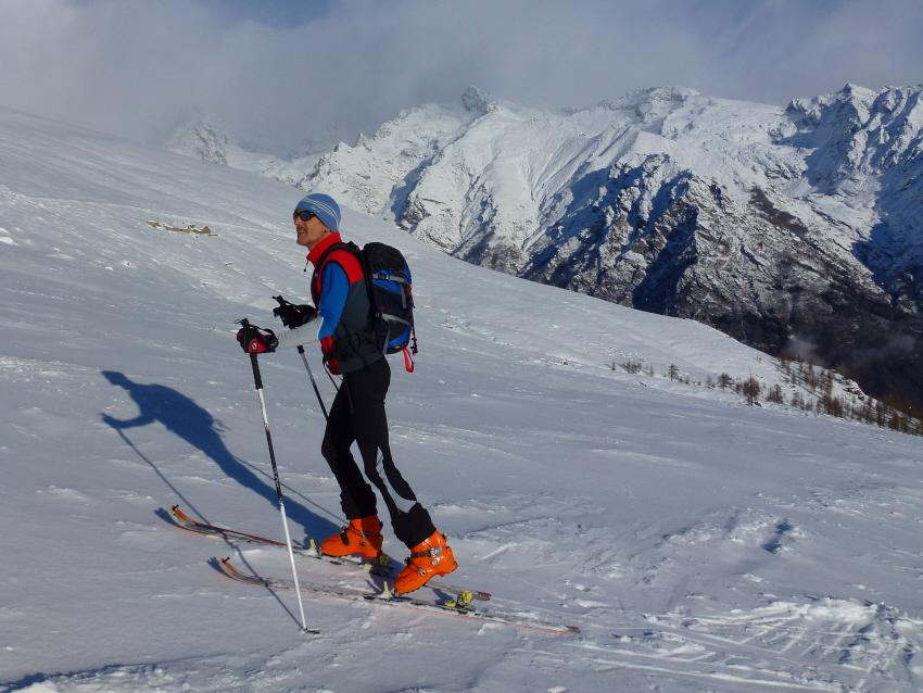 Com l’Amico Elio.Un po’di nevischio alla partenza e bella buffa che in discesa dal Boiret tagliava la dorsale tra la Baita dlè Crave e Punta Cia pero’sopportabile quindi ci siamo divertiti.Un saluto agli Ski Alper incontrati.