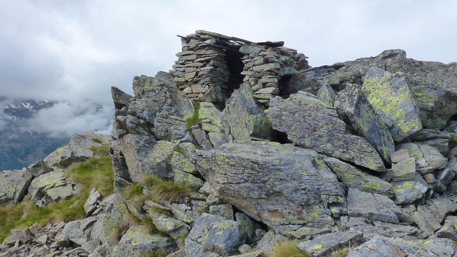 Dai Moies si sale alla Ca’ Bianca, si prosegue a sx per il sentiero che passa all’Alpe Pian del Brengi e con un lungo e panoramico traverso in leggera salita porta al Casotto PNGP delle Cialme 2296m.