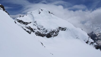 Parete in ottime condizioni, salita a destra, tutta in neve con qualche breve tratto dove si toccano rocce; in vetta alle 10.30.