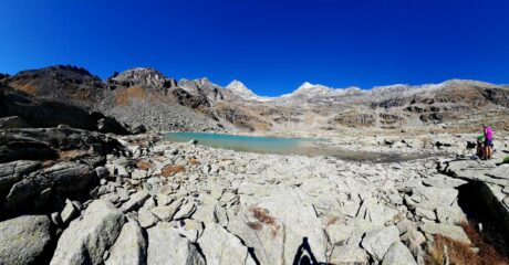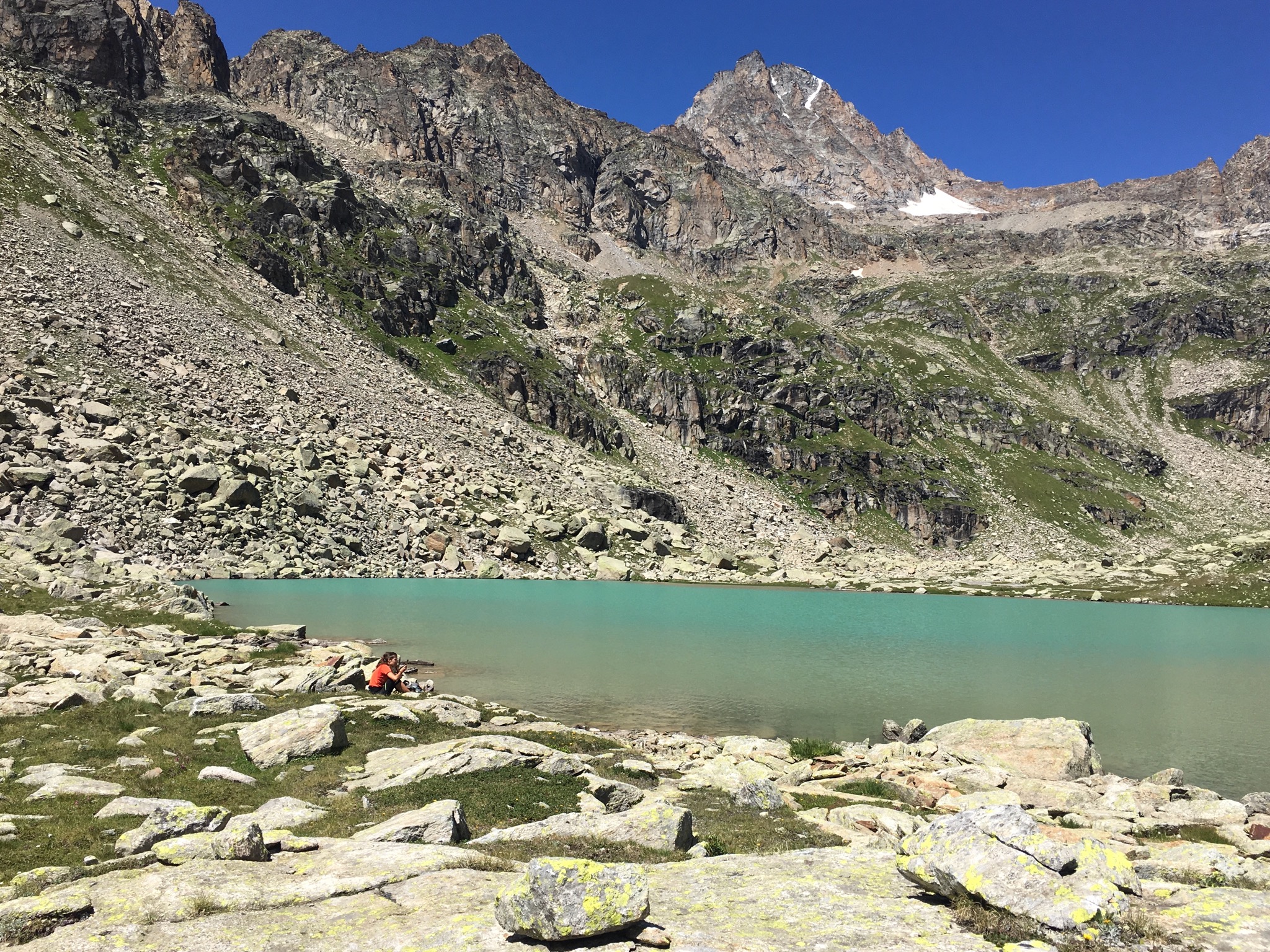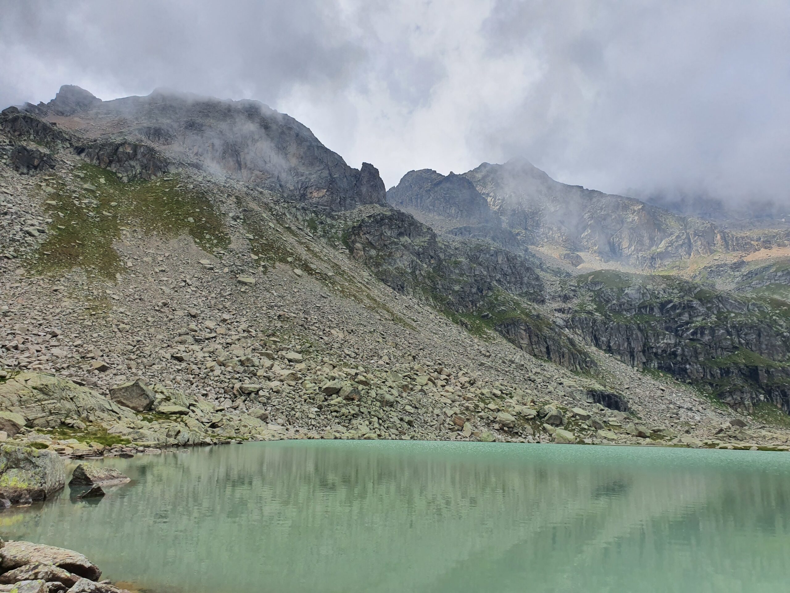 Per raggiungere il successivo lago il Ciamousseretto Superiore 2839m occorre superare la bastionata frontale; che si affronta con tracce che salgono a sx org del lago e che diviene successivamente abbastanza ripido sino al pianoro del lago. Qui si è ai piedi di quello che era il ghiacciaio del Ciamousseretto posto tra i pendii ripidi del Ciarforon e della Tresenta.