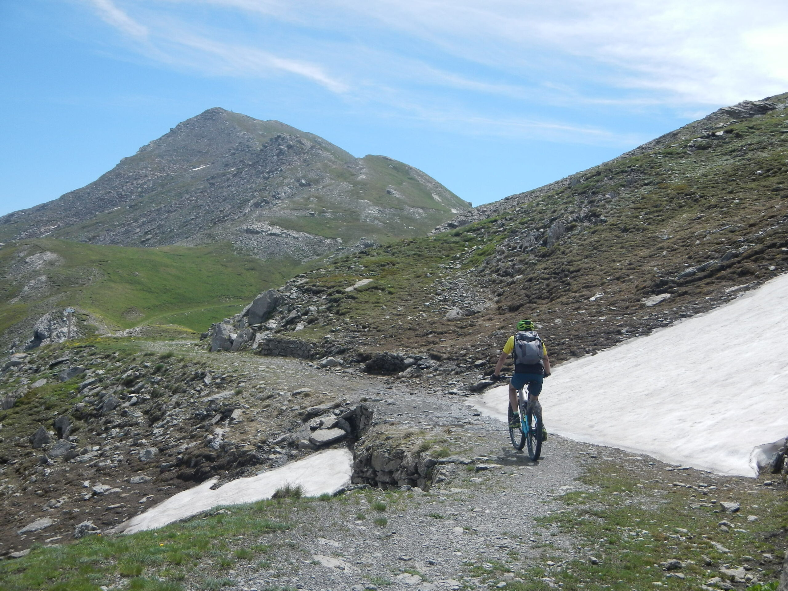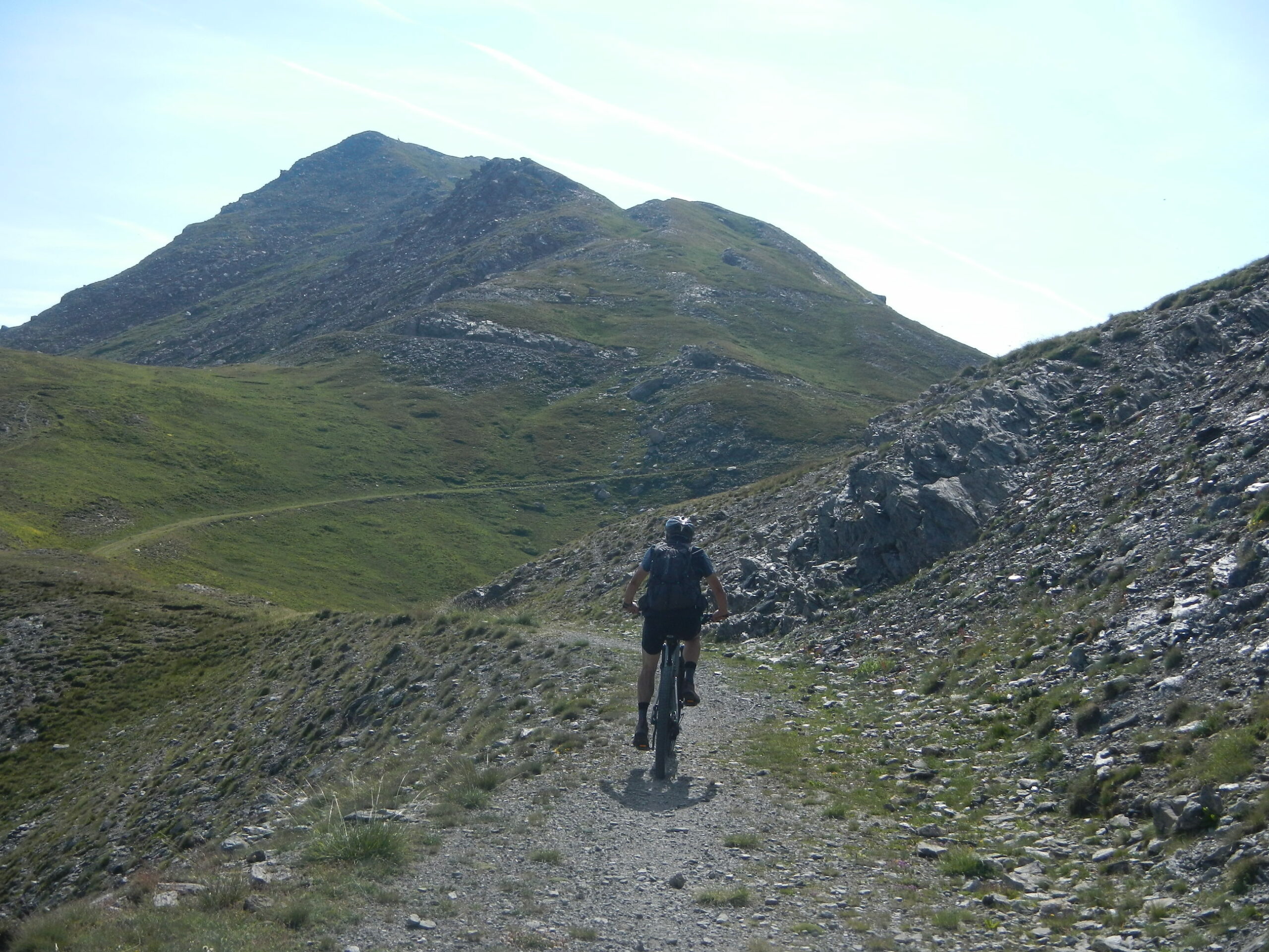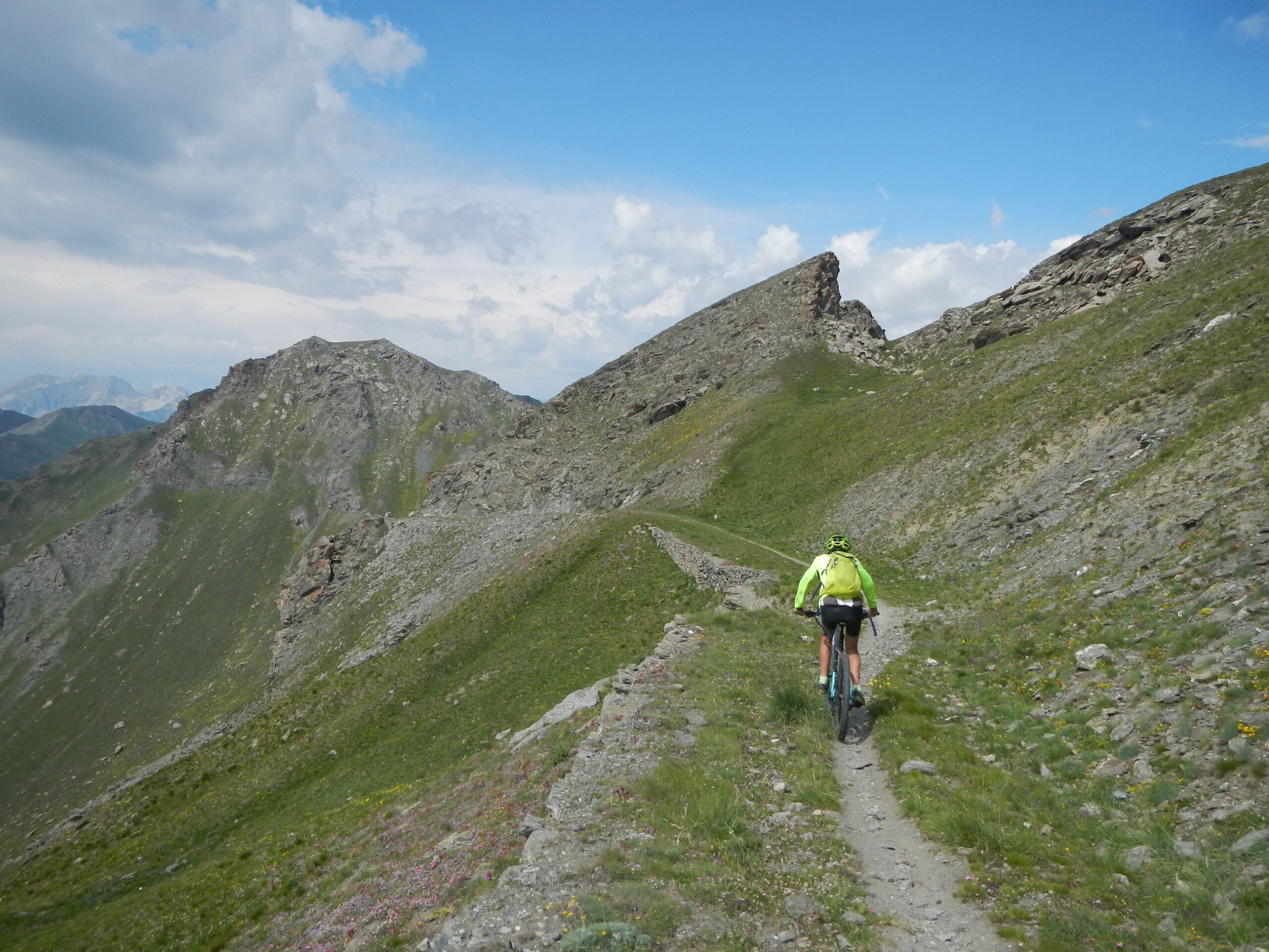 Lo sterrato/sentiero che dal bivio tra la deviazione per la Punta Gran Serin e la Cima Ciantiplagna sale verso quest’ultima è aspro, in alcuni brevi punti ci sono pietroni caduti nel tempo, ma è ciclabile con attenzione e senza particolari problemi.