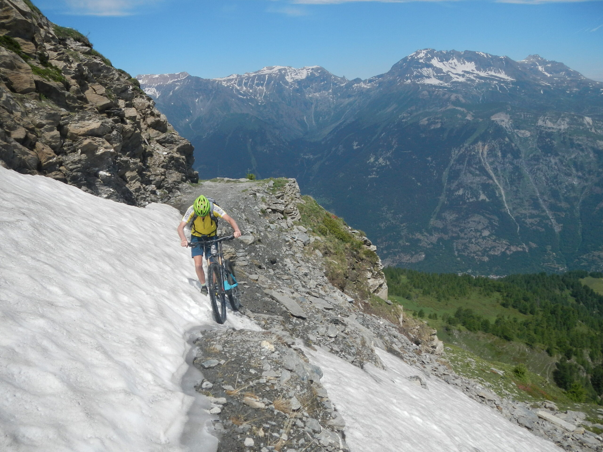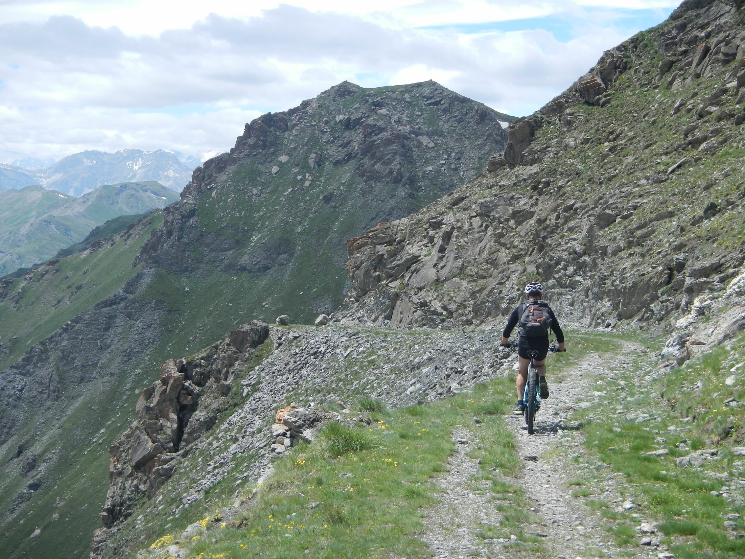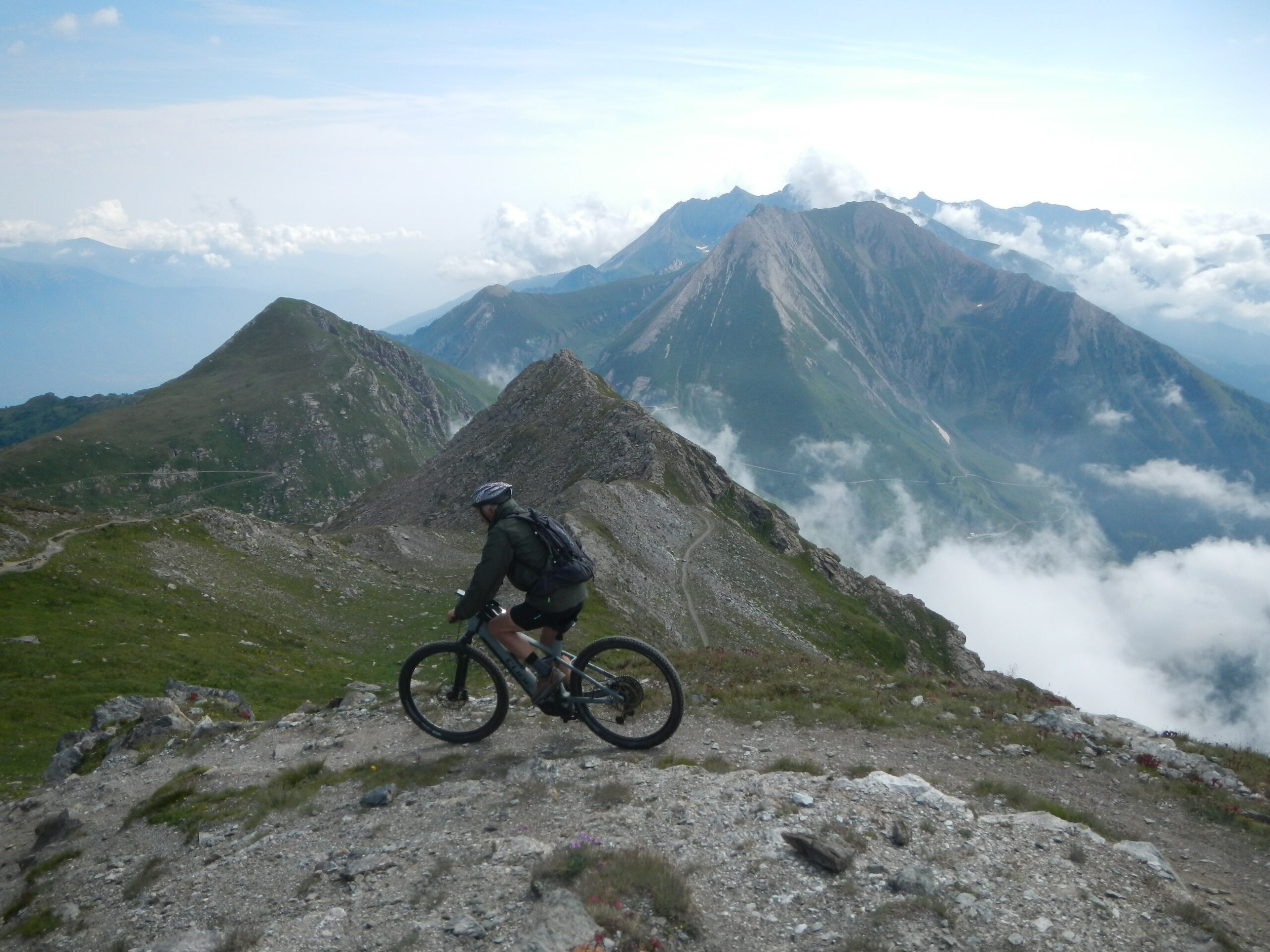 Lo sterrato/sentiero che dal bivio tra la deviazione per la Punta Gran Serin e la Cima Ciantiplagna sale verso quest’ultima è aspro, in alcuni brevi punti ci sono pietroni caduti nel tempo, ma è ciclabile con attenzione e senza particolari problemi.