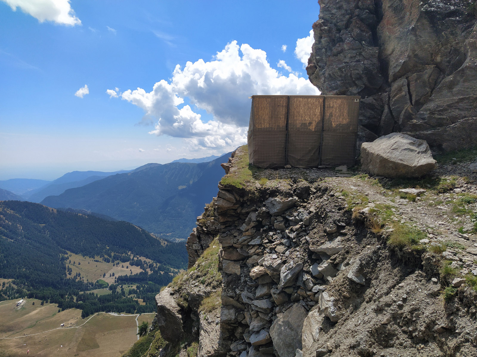 Siamo a poco più della metà del percorso. Il colle dista poche decine di metri e vale la pena raggiungerlo prima di incominciare la parte più dura della salita. Si raggiunge quindi il Dente della Vecchia e successivamente l’Eliografo della Punta del Mezzodì. Il tratto di sterrato è molto bello con dei bellissimi colpi d’occhio in caso di bel tempo. A quota 2750m circa si incontra il sentiero che porta alla cima del Ciantiplagna, percorribile in bici; dopo circa 100 metri si raggiunge la Cima Ciantiplagna, il punto più alto del percorso.